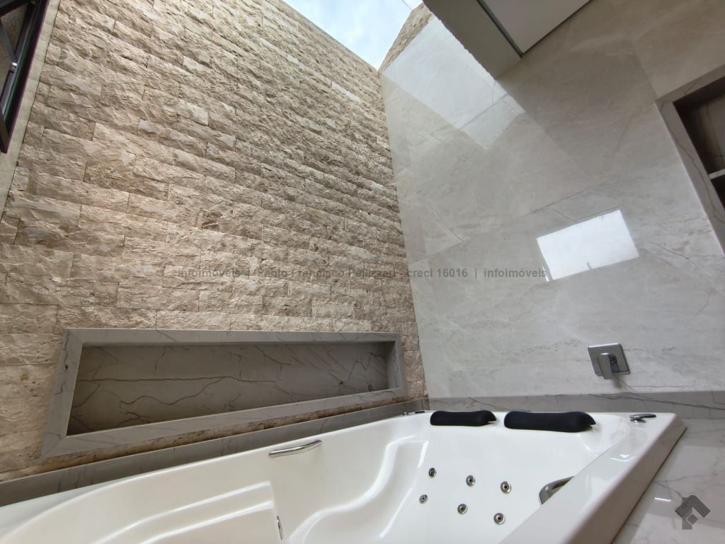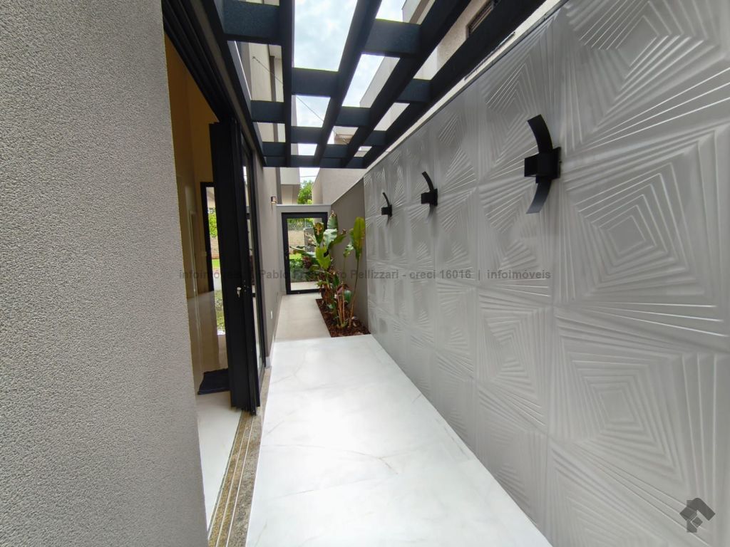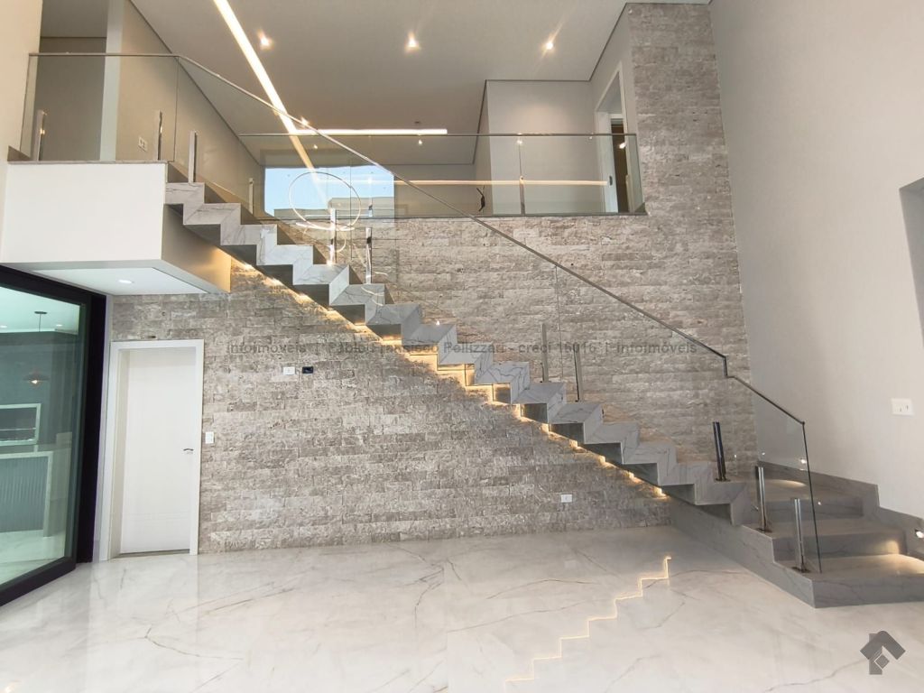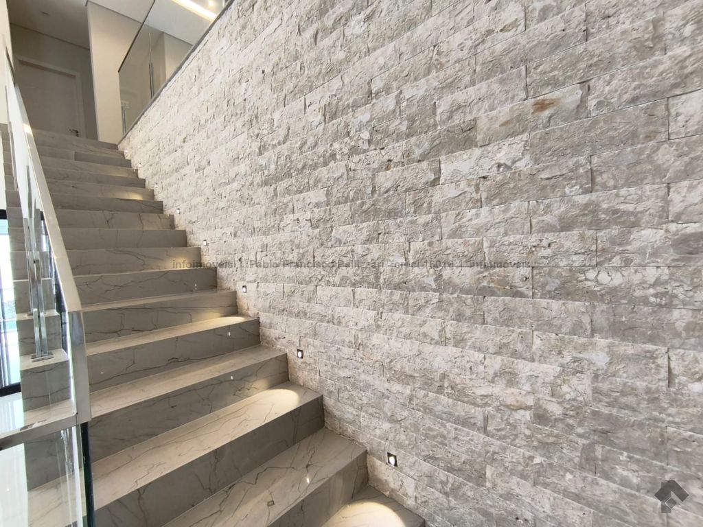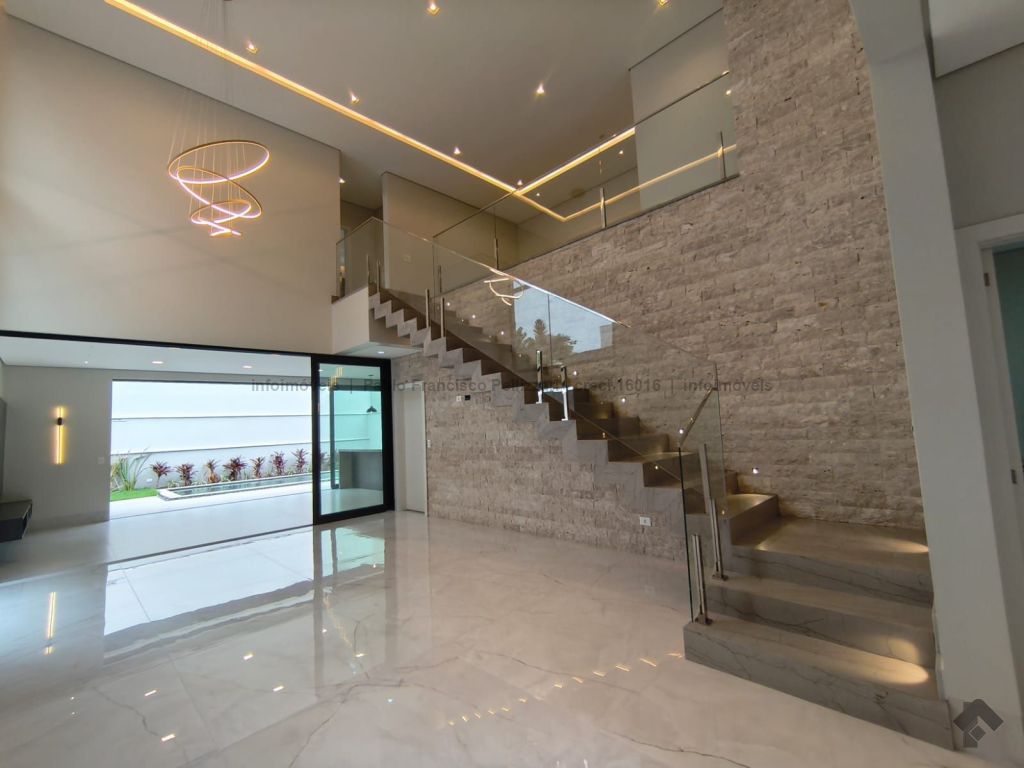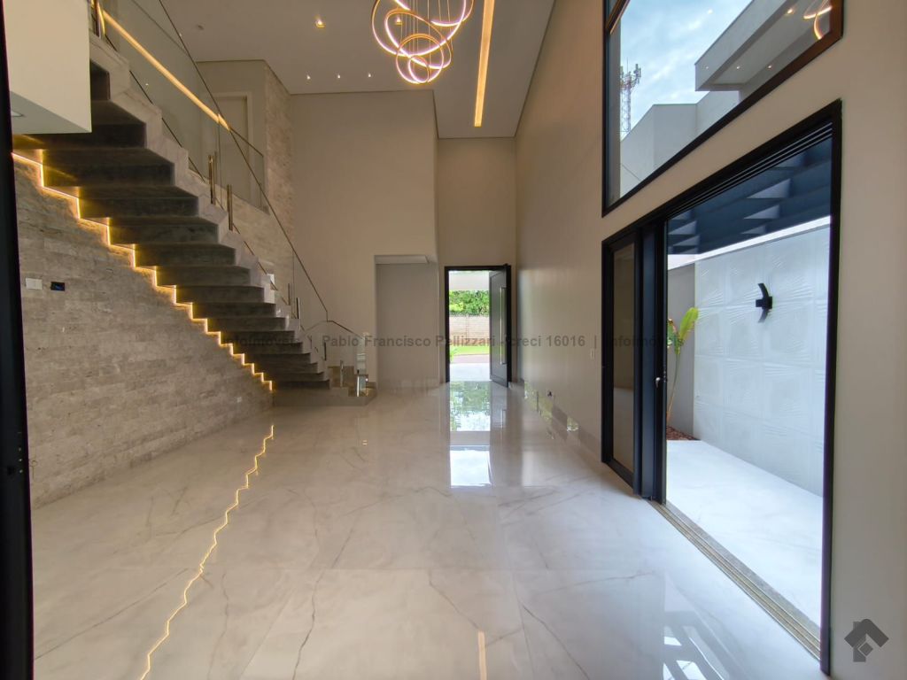 Diferenciais: frente para a mata (sem vizinho de frente), escadaria toda em mármore e retroiluminada, energia fotovoltaica de 1.200 kW/h, aquecimento solar de água com boiler de 600 litros, pé direito duplo com sanca e lustre, somente materiais de alto padrão. Aceita financiamento e analisa permuta.