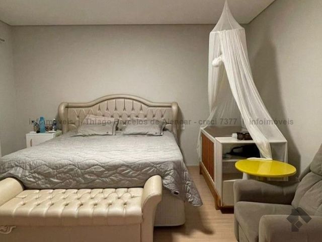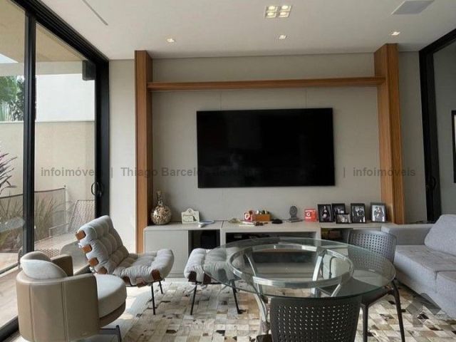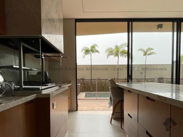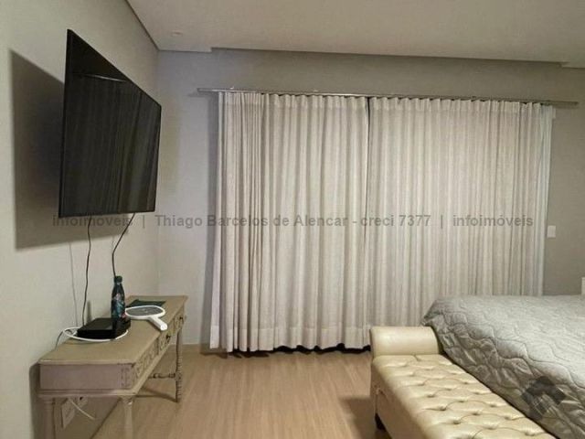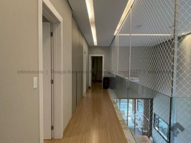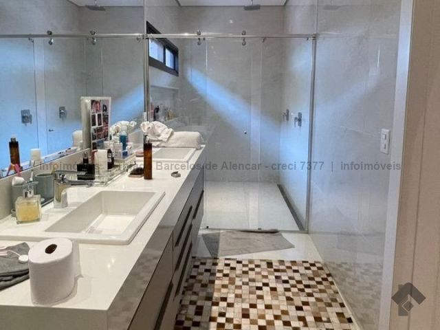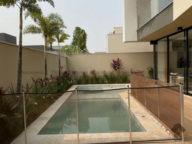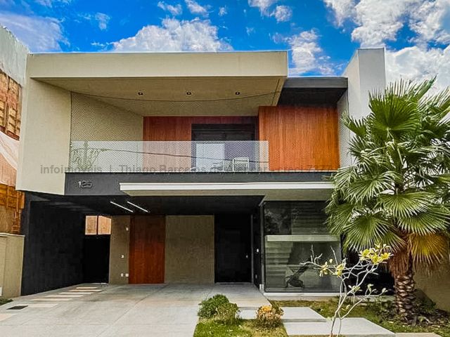 Sobrado de alto padrão que une sofisticação e conforto. No térreo, sala com pé direito duplo, espaço gourmet com churrasqueira, coifa e sala de TV, cozinha planejada, suíte/escritório, lavabo e lavanderia. Área externa com piscina aquecida e hidromassagem. No piso superior, suíte máster com closet, banheiro amplo e sacada privativa, mais 2 suítes com armários e sala de TV com sacada. Persianas automatizadas, som embutido, energia fotovoltaica e motor de alta pressão completam este imóvel pensado para oferecer exclusividade e bem-estar.
