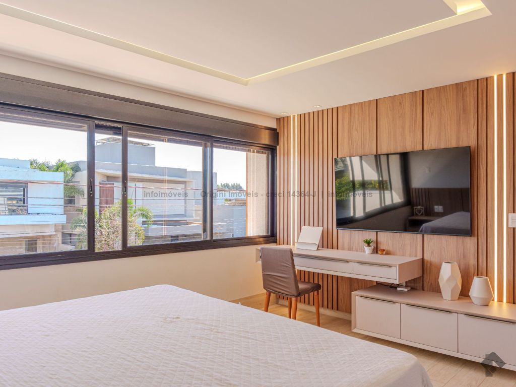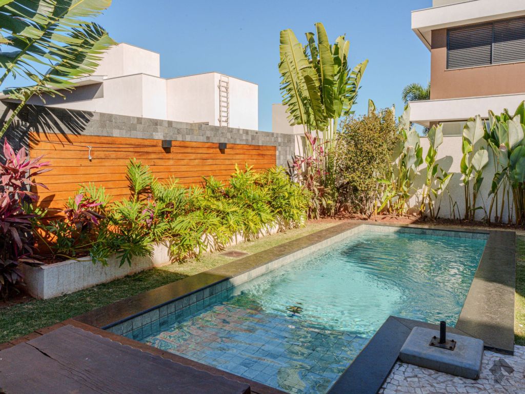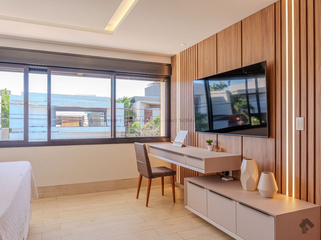 250 m² de construção e 360 m² de terreno, 4 suítes, sendo 1 no piso inferior. Projeto moderno, ambientes integrados, rico em luz natural. Cozinha gourmet aberta, integrada com sala de TV. Amplo jardim, com bastante sobra de terreno. Piscina aquecida, armários planejados em todos os cômodos.