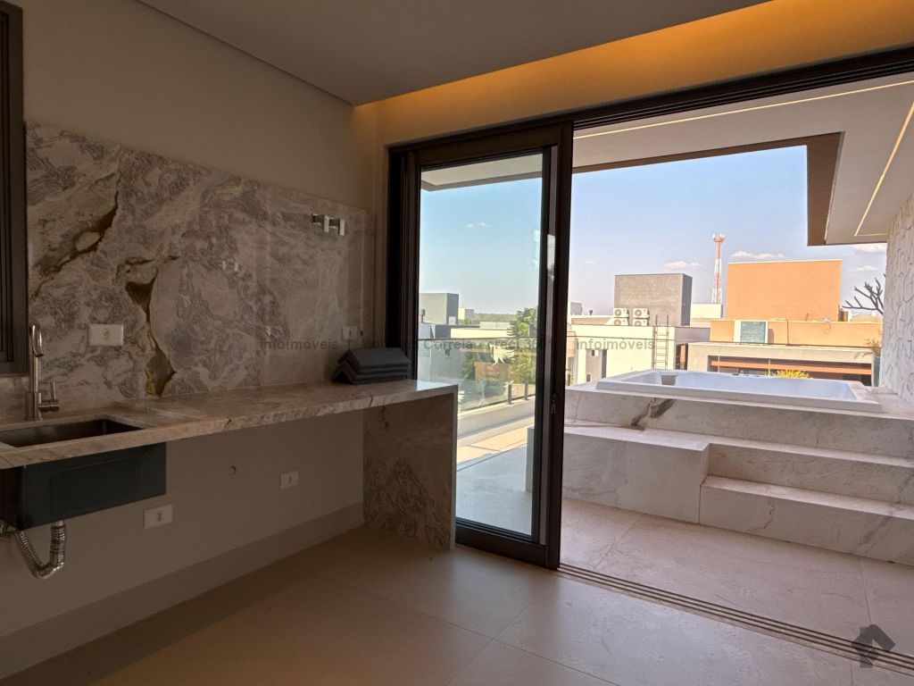 Spa para 10 pessoas no segundo andar, irrigação automatizada, boiler de 600L de aquecimento com placas solares, interruptores automatizados Intelbras, porta de entrada de 6,5m automatizada.