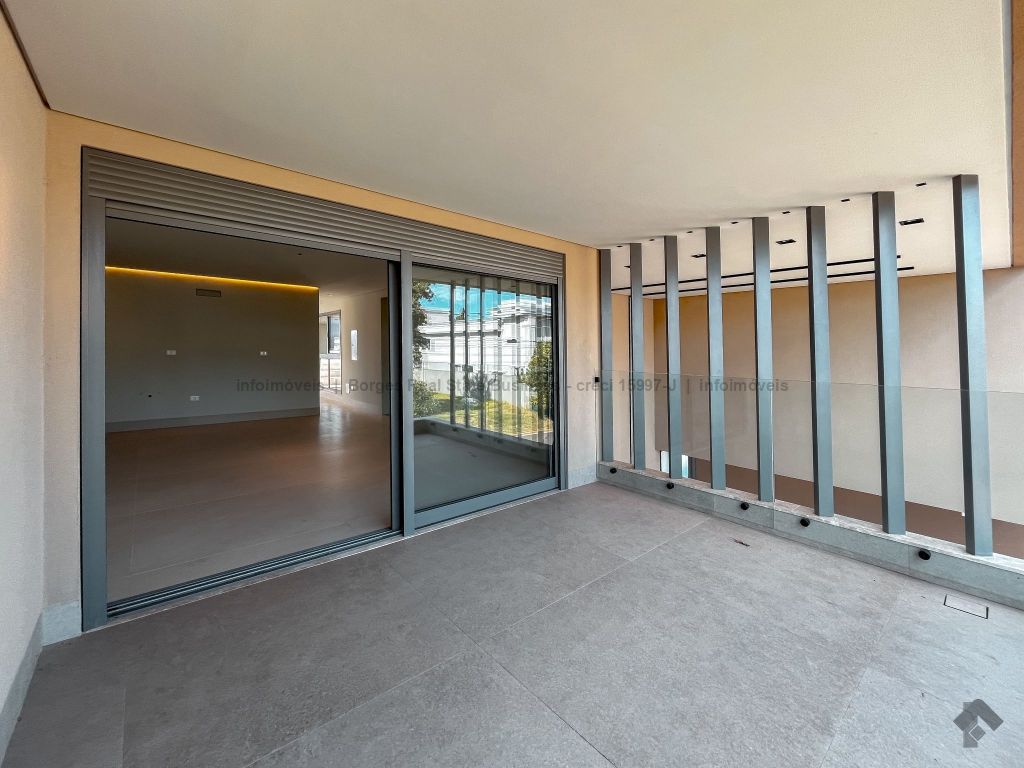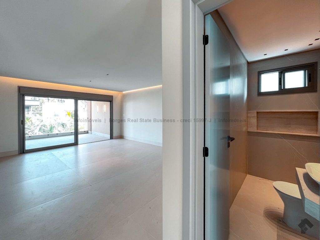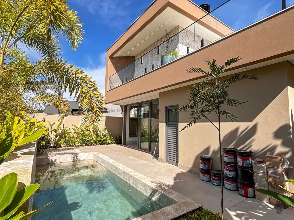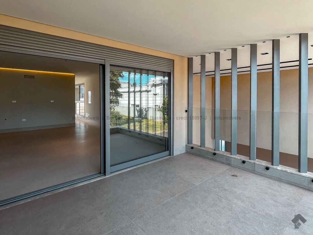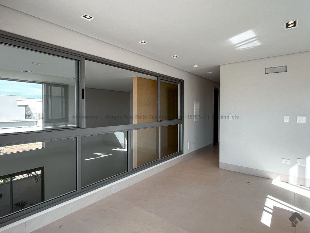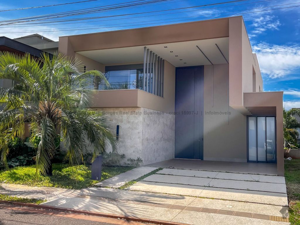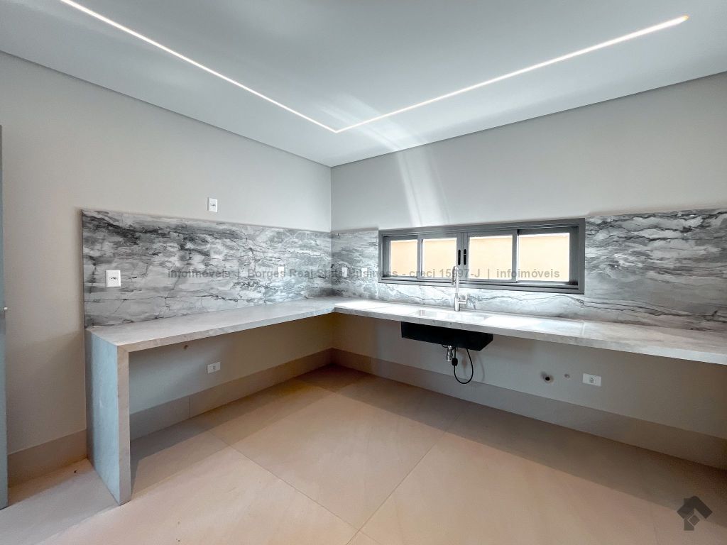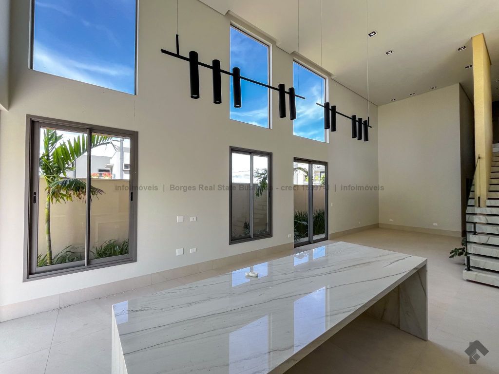 Sobrado de alto padrão com janelas e portas em alumínio premium, sala e gourmet com pé-direito duplo e porta de entrada automatizada de 6,5 m. Escada e churrasqueira em mármore Mont Blanc, churrasqueira equipada com exaustor, paisagismo completo com irrigação automatizada. Spa para 10 pessoas, piscina em travertino com cascata, hidro aquecida e automação. Infraestrutura de ar-condicionado em todos os ambientes, boiler de 600 L com aquecimento solar e interruptores inteligentes Intelbras.