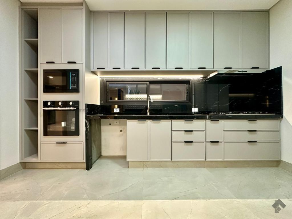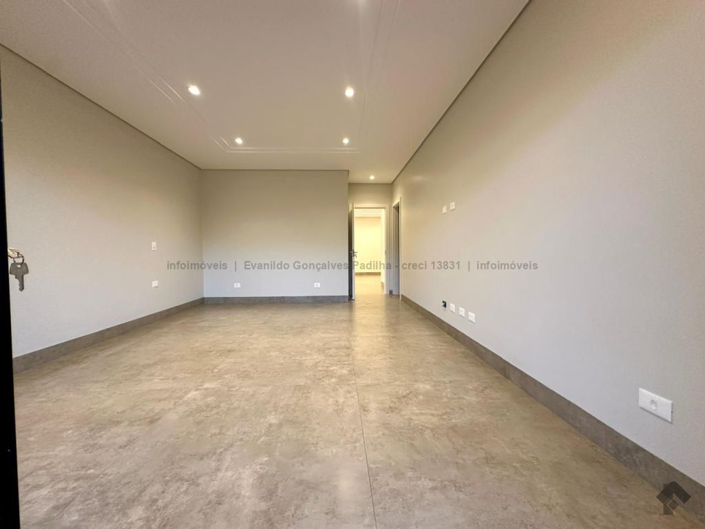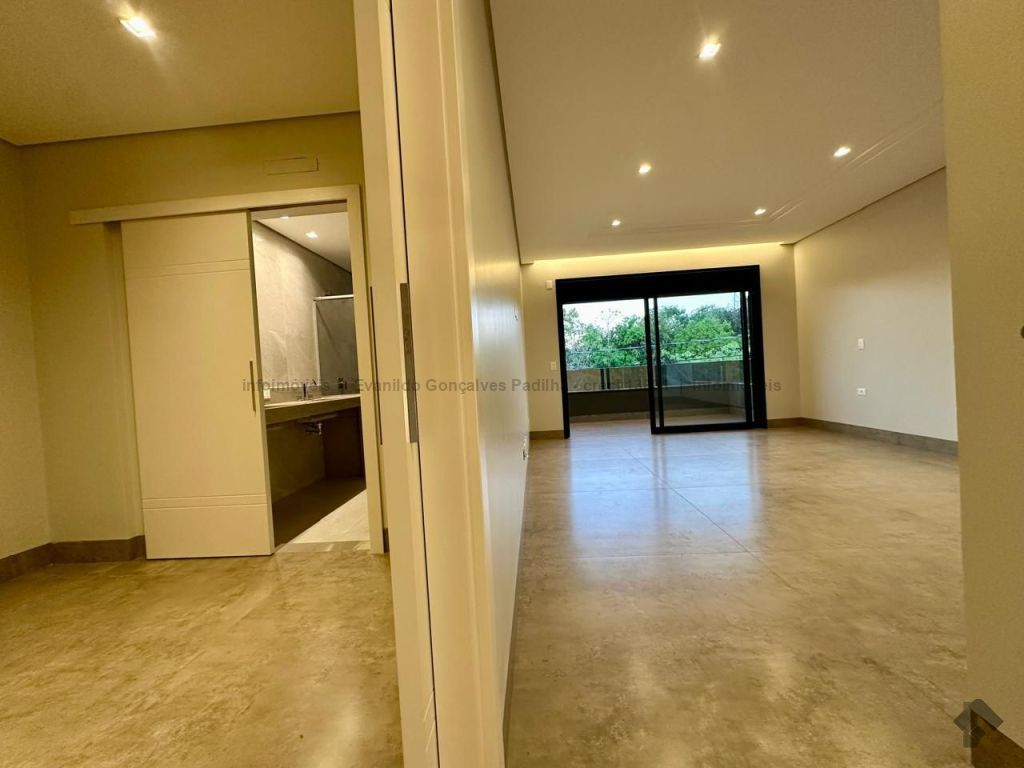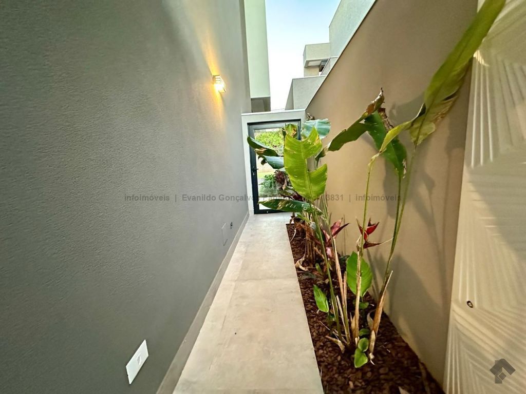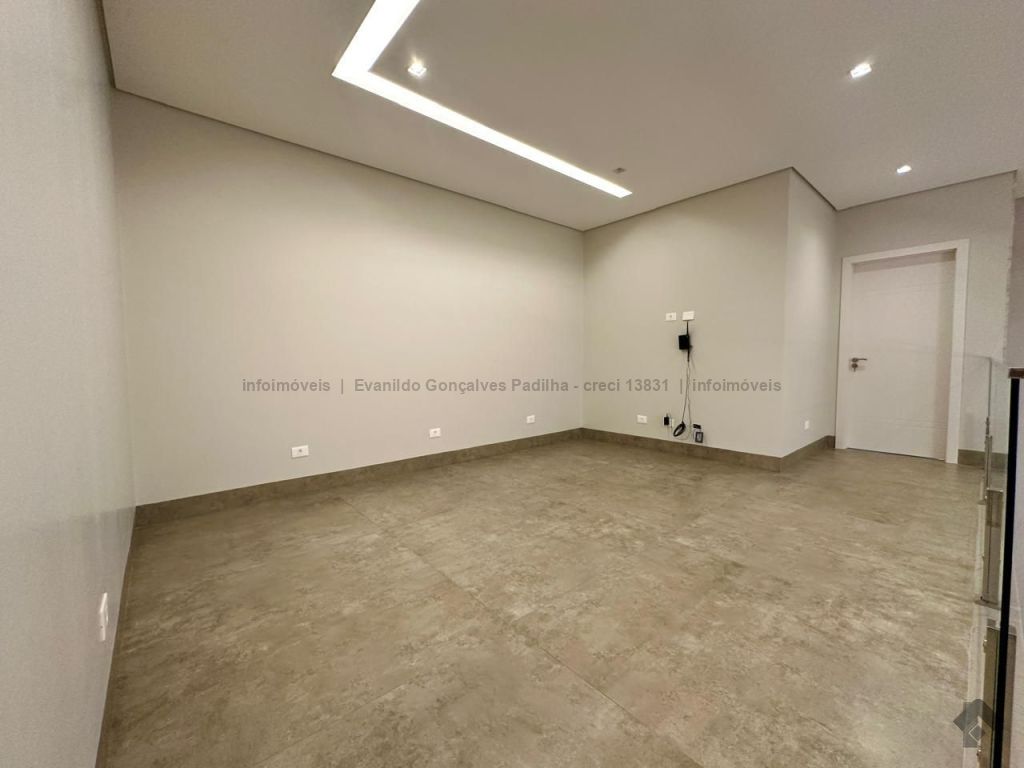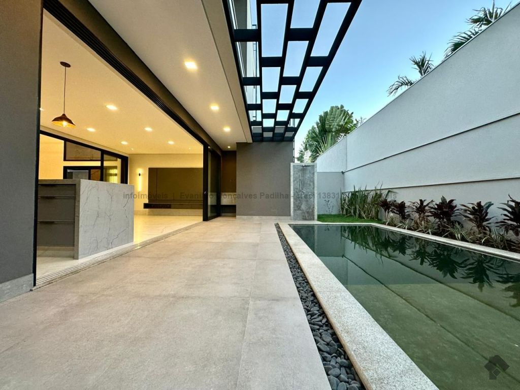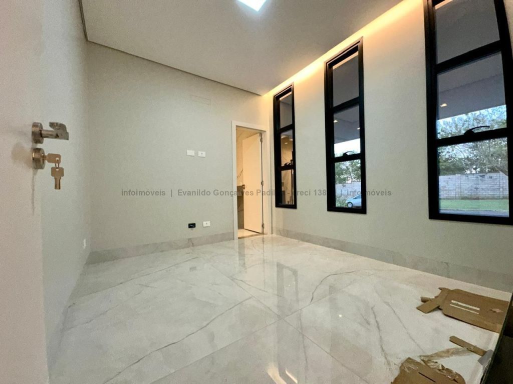Sala ampla para até 3 ambientes, lavabo, pé direito alto, sanca e lustre. Escadaria toda em mármore e retroiluminada. Cozinha toda montada, repleta de armários planejados, micro-ondas, forno, cooktop e coifa. Espaço gourmet bem amplo e todo planejado, ilha em mármore e retroiluminada, com pêndulos e painel de TV. Piscina com hidro e aquecida, medindo 18 m². Lavabo e ducha na área externa. Energia fotovoltaica. 4 suítes amplas, sendo a principal uma suíte master com closet, banheira de hidromassagem e sacada, e uma das suítes na parte inferior, podendo ser escritório. Sala íntima no piso superior.