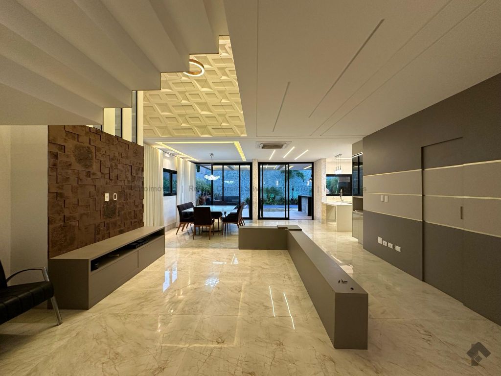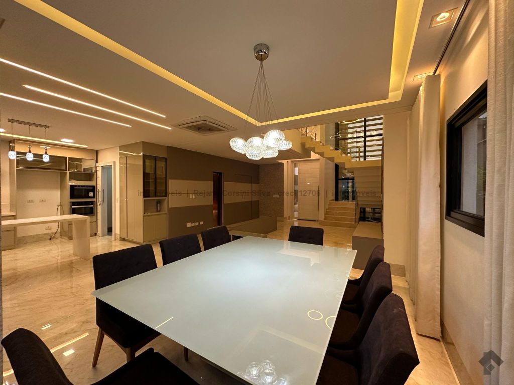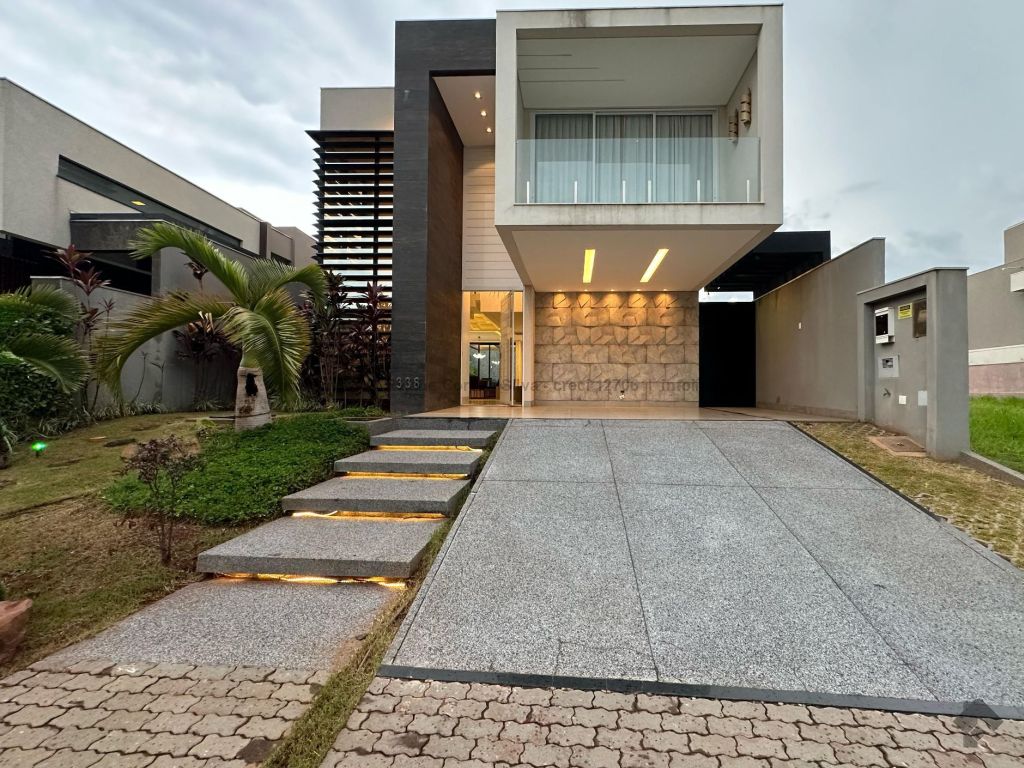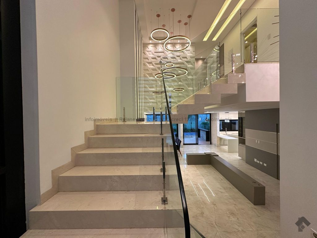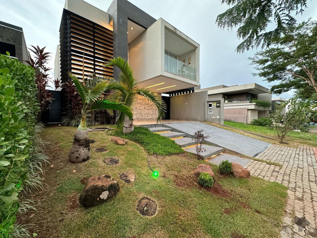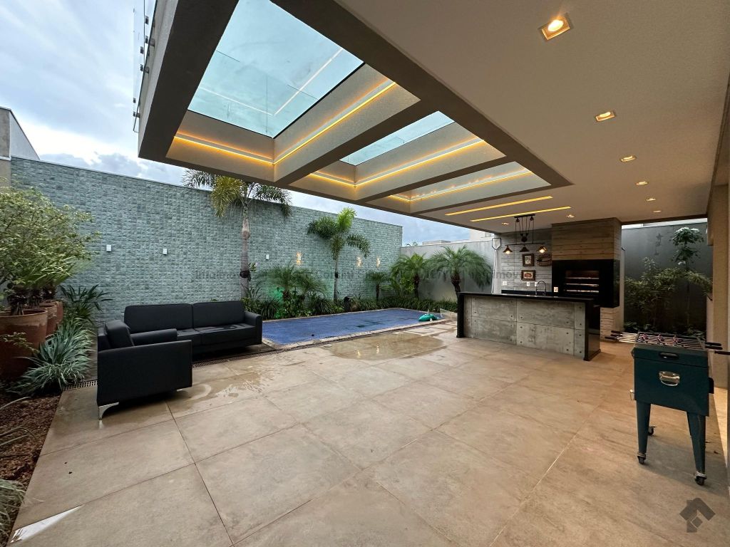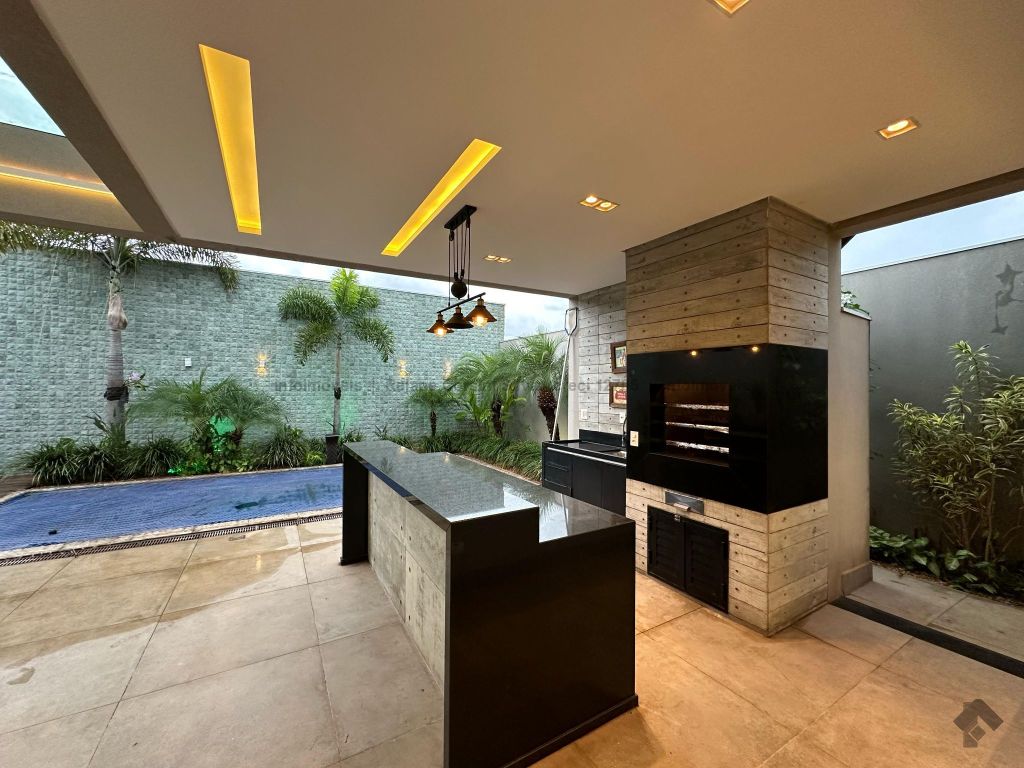 Garagem para 4 carros, sendo 2 cobertos. Casa rica em projeto luminotécnico em LED. Sala de TV com painel e rack. Escritório com nichos e armários. Lavabo com pia esculpida na pedra translúcida iluminada. Lavanderia. Cozinha integrada com torre quente, coifa e fogão por indução. Sala de jantar. Área gourmet. 1 suíte master com banheira esculpida na pedra vulcânica e closet. 2 suítes, todas com sacada e climatizadas. Jardim com paisagismo e irrigação automatizada. Aljibe de captação de água de 5.000 litros. Energia fotovoltaica. Piscina aquecida. Boiler de aquecimento solar.
