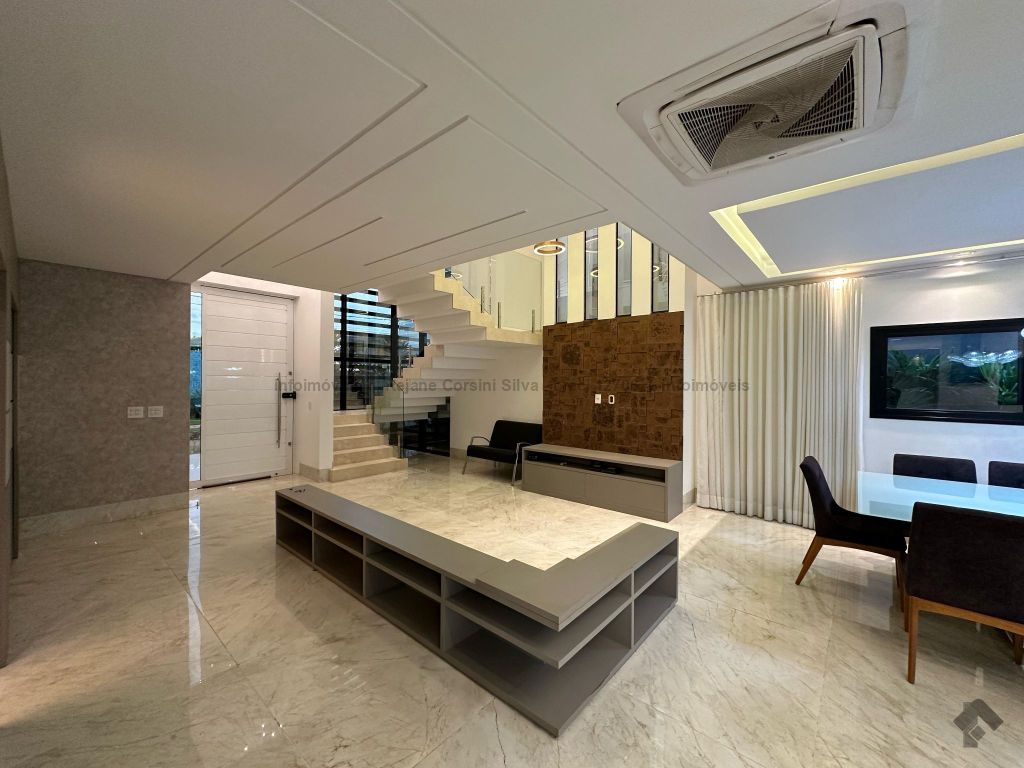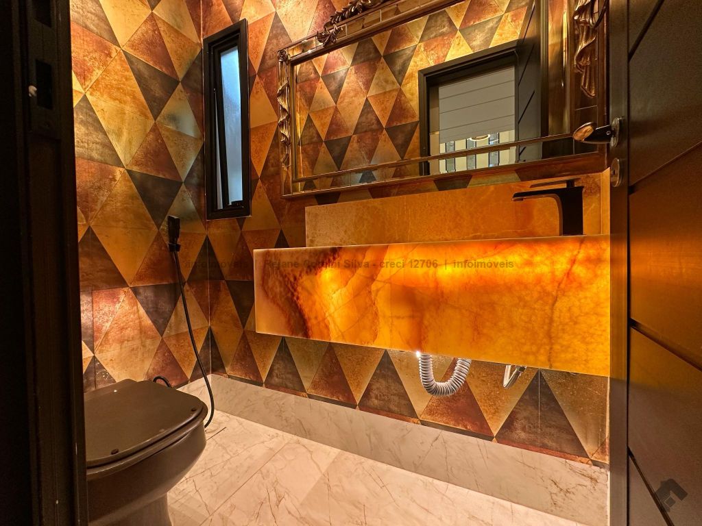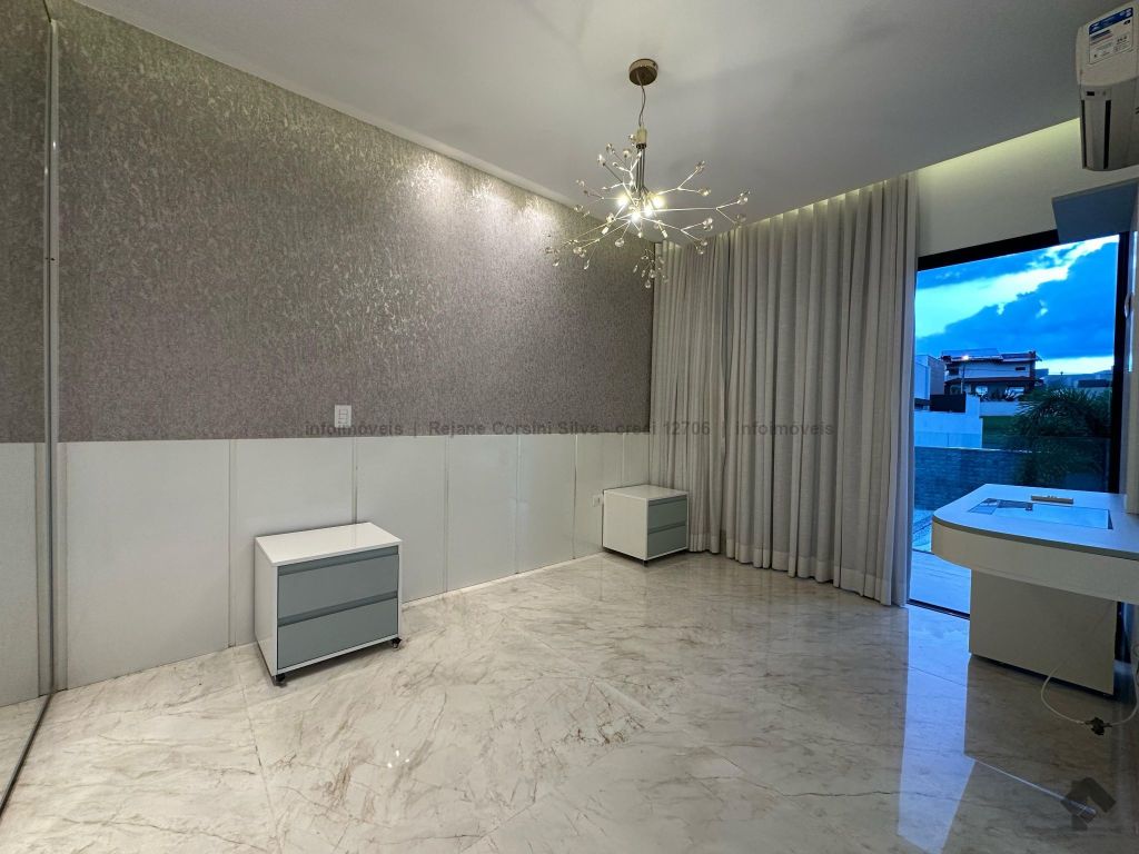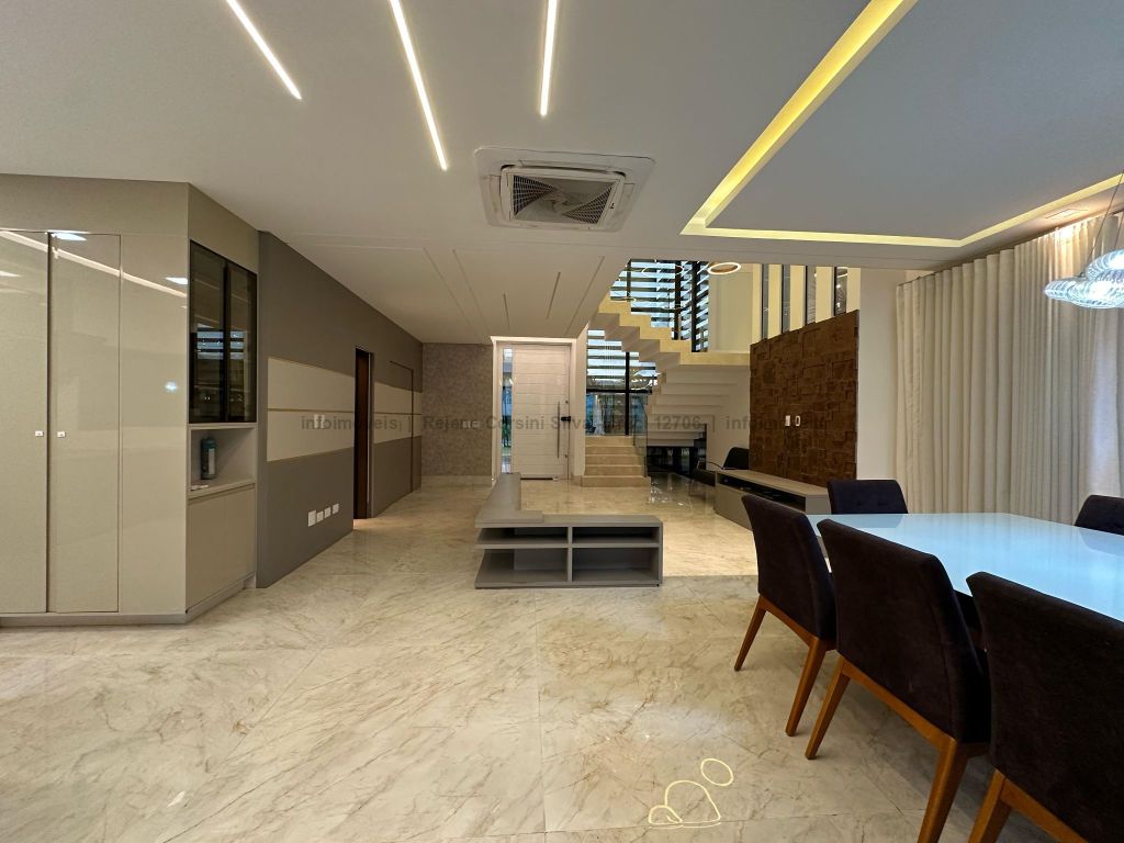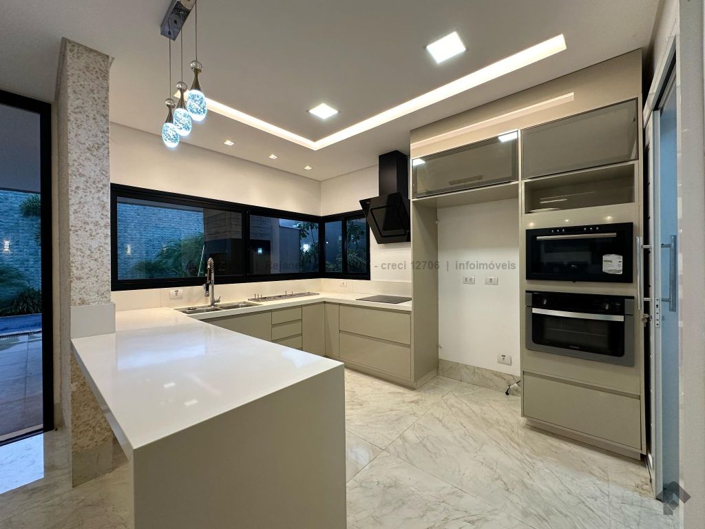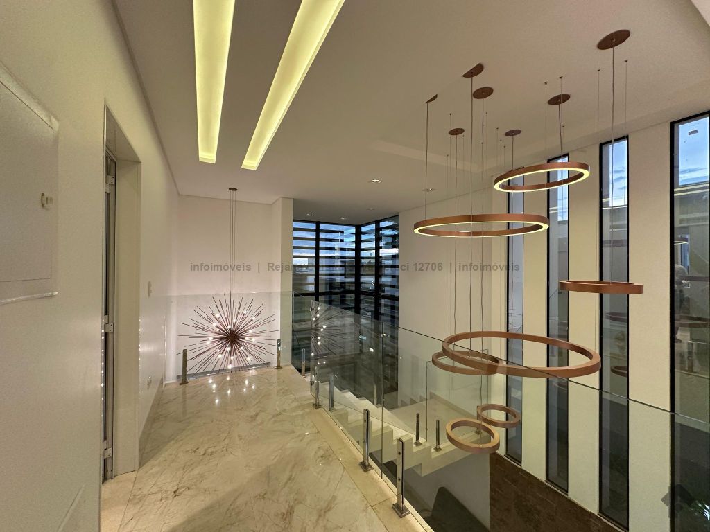 Garagem para 4 carros, sendo 2 cobertos. Casa rica em projeto luminotécnico em LED. Sala de TV com painel e rack. Escritório com nichos e armários. Lavabo com pia esculpida na pedra translúcida iluminada. Lavanderia. Cozinha integrada com torre quente, coifa e fogão por indução. Sala de jantar. Área gourmet. 1 suíte master com banheira esculpida na pedra vulcânica e closet. 2 suítes, todas com sacada e climatizadas. Jardim com paisagismo e irrigação automatizada. Aljibe de captação de água de 5.000 litros. Energia fotovoltaica. Piscina aquecida. Boiler de aquecimento solar.