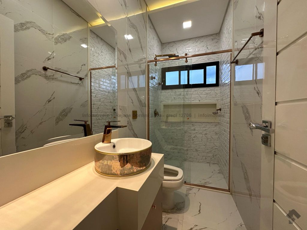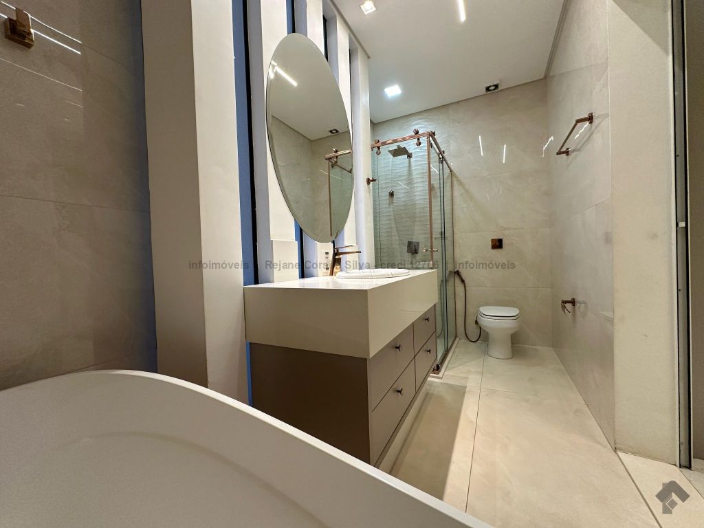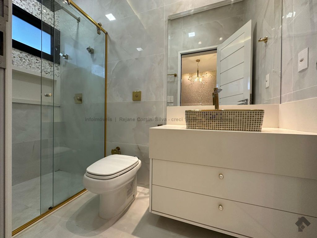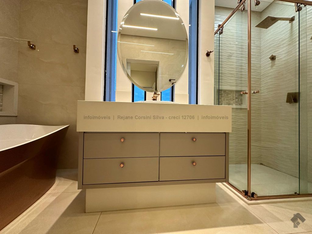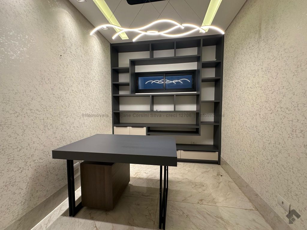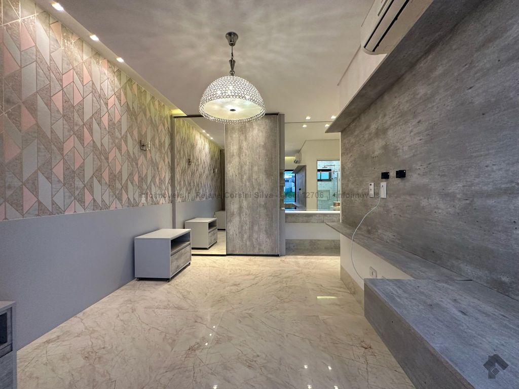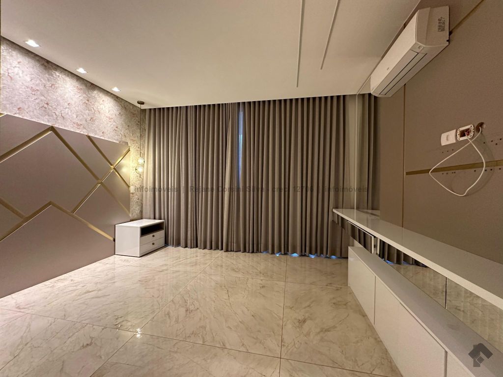 Garagem para 4 carros, sendo 2 cobertos. Casa rica em projeto luminotécnico em LED. Sala de TV com painel e rack. Escritório com nichos e armários. Lavabo com pia esculpida na pedra translúcida iluminada. Lavanderia. Cozinha integrada com torre quente, coifa e fogão por indução. Sala de jantar. Área gourmet. 1 suíte master com banheira esculpida na pedra vulcânica e closet. 2 suítes, todas com sacada e climatizadas. Jardim com paisagismo e irrigação automatizada. Aljibe de captação de água de 5.000 litros. Energia fotovoltaica. Piscina aquecida. Boiler de aquecimento solar.