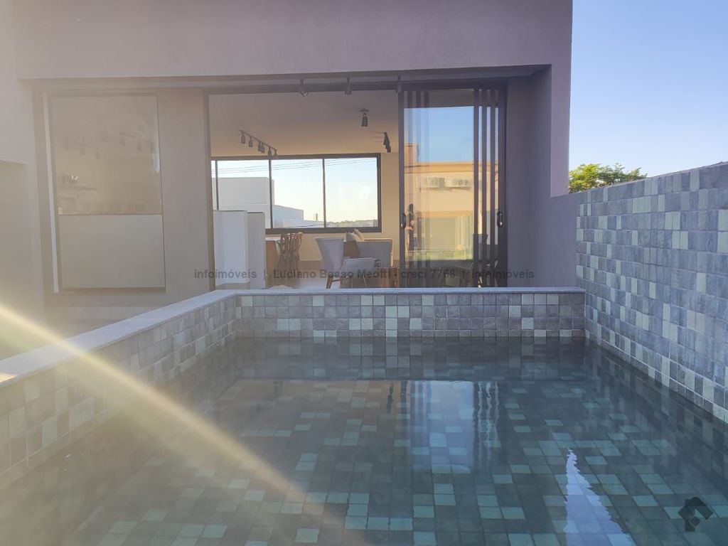 Casa com rooftop contendo piscina e área gourmet, área da piscina com 12 horas de sol, vista maravilhosa do nascer até o pôr do sol, piscina no rooftop, suíte master com 2 banheiros e 2 closets, 2 suítes intermediárias, aquecimento solar, 2 cozinhas gourmet, living ampliado no térreo, preparação para energia fotovoltaica, casa semi mobiliada.