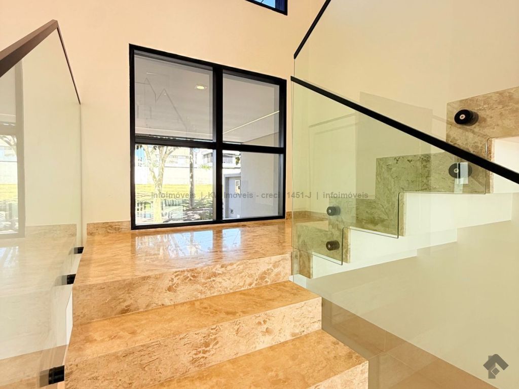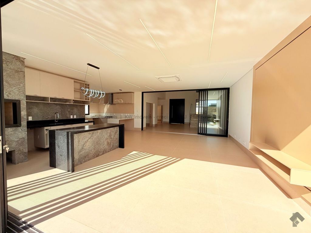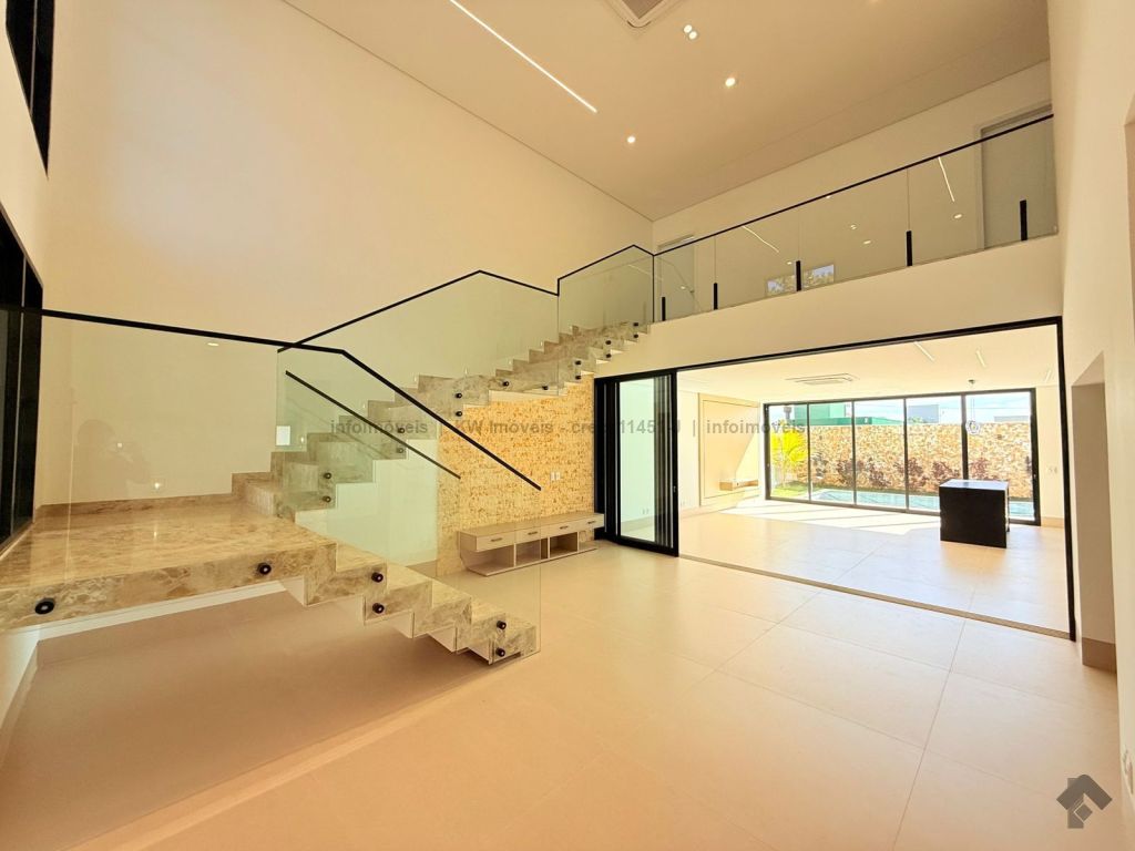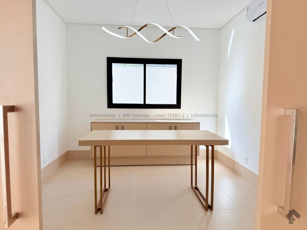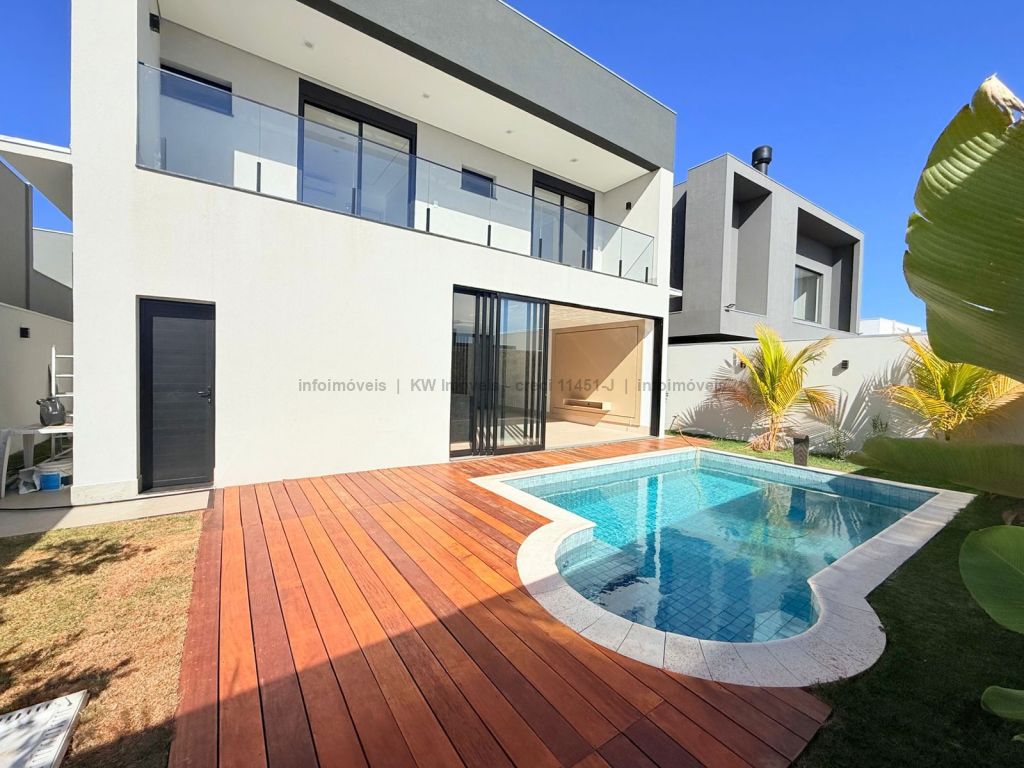 Garagem coberta para 4 veículos, piscina aquecida, sistema de água quente em todos os cômodos, ambientes climatizados, sala ampla com dois ambientes, integrando conforto e sofisticação, área gourmet climatizada, ideal para receber amigos e família, escritório com ar-condicionado, perfeito para home office, 1 suíte térrea, ideal para acessibilidade, 3 suítes no piso superior, todas com móveis planejados e ar-condicionado, destaque para a suíte máster, com closet e varanda privativa. Imóvel novo, com acabamentos de alto padrão e rico em móveis planejados. Área total de 383 m², área construída de 320 m².