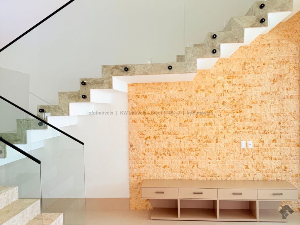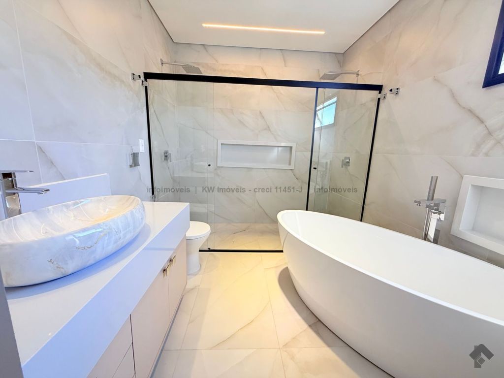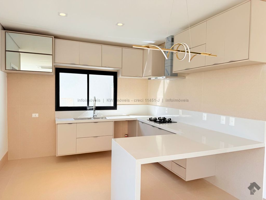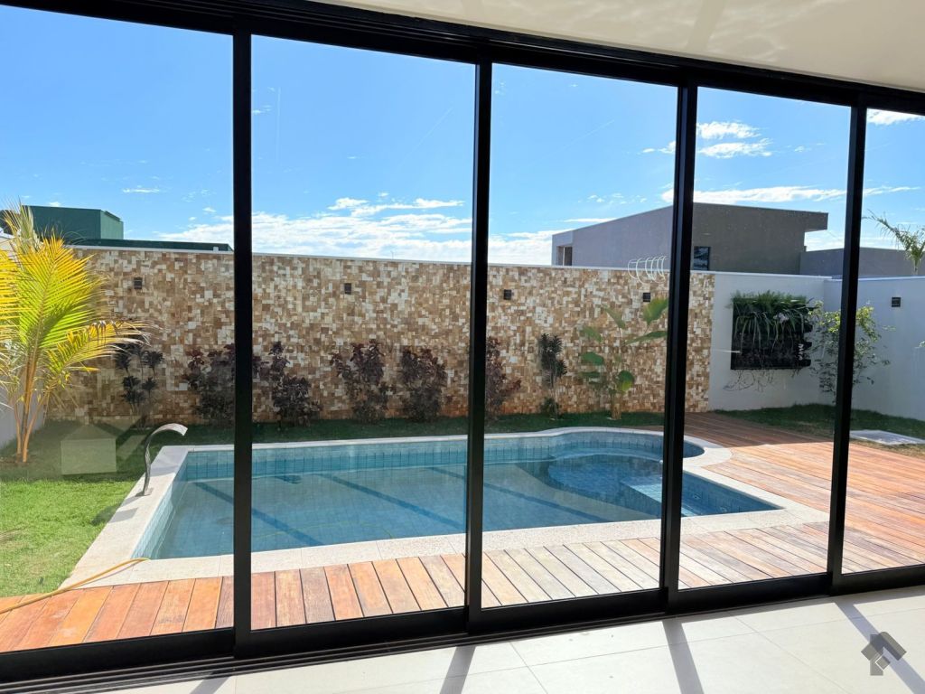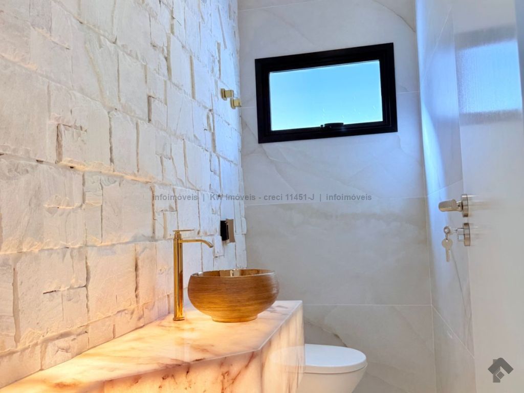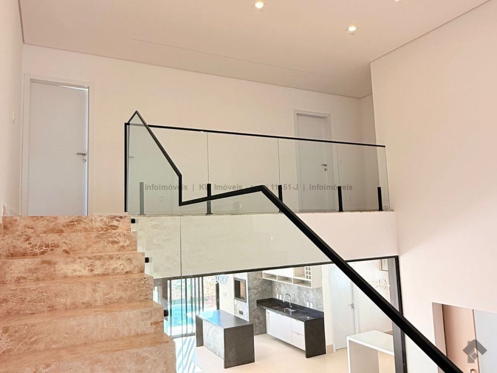 Garagem coberta para 4 veículos, piscina aquecida, sistema de água quente em todos os cômodos, ambientes climatizados, sala ampla com dois ambientes, integrando conforto e sofisticação, área gourmet climatizada, ideal para receber amigos e família, escritório com ar-condicionado, perfeito para home office, 1 suíte térrea, ideal para acessibilidade, 3 suítes no piso superior, todas com móveis planejados e ar-condicionado, destaque para a suíte máster, com closet e varanda privativa. Imóvel novo, com acabamentos de alto padrão e rico em móveis planejados. Área total de 383 m², área construída de 320 m².