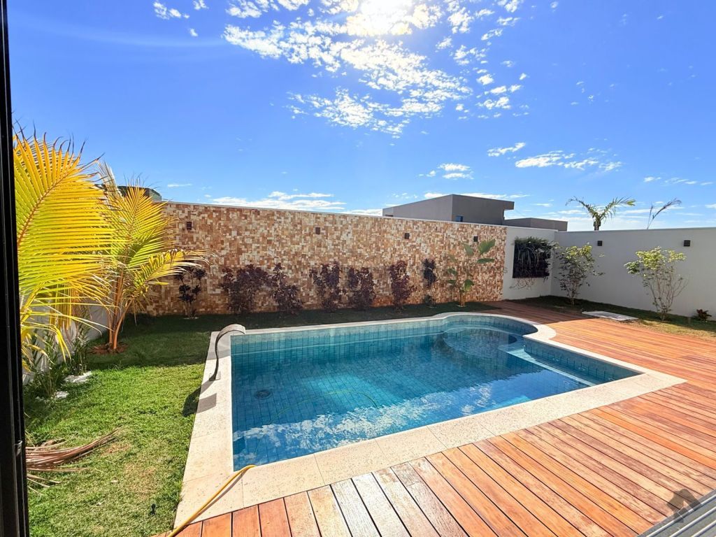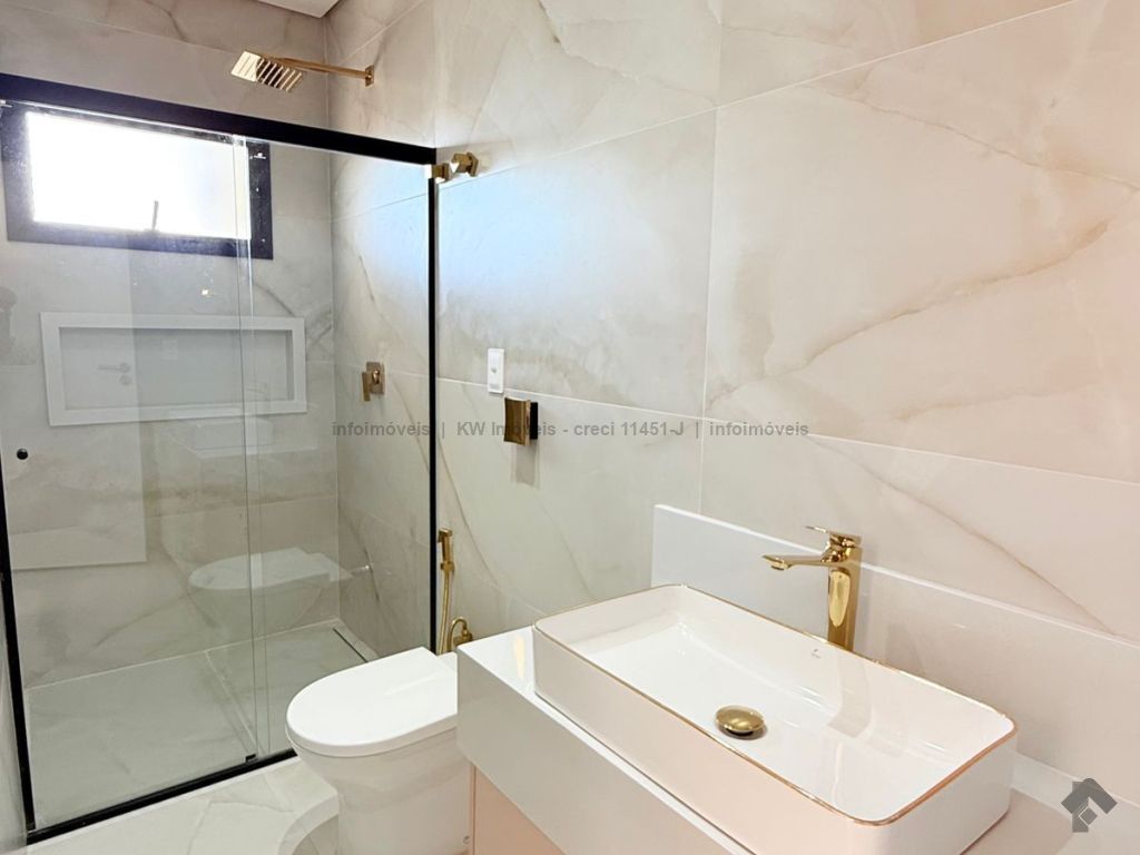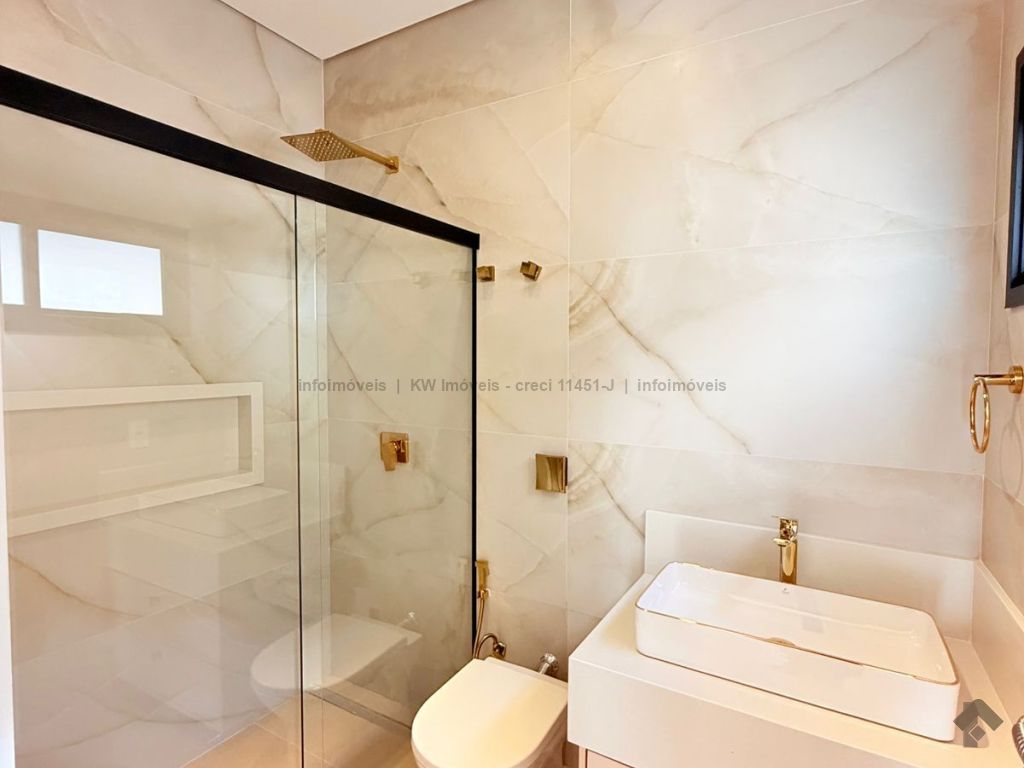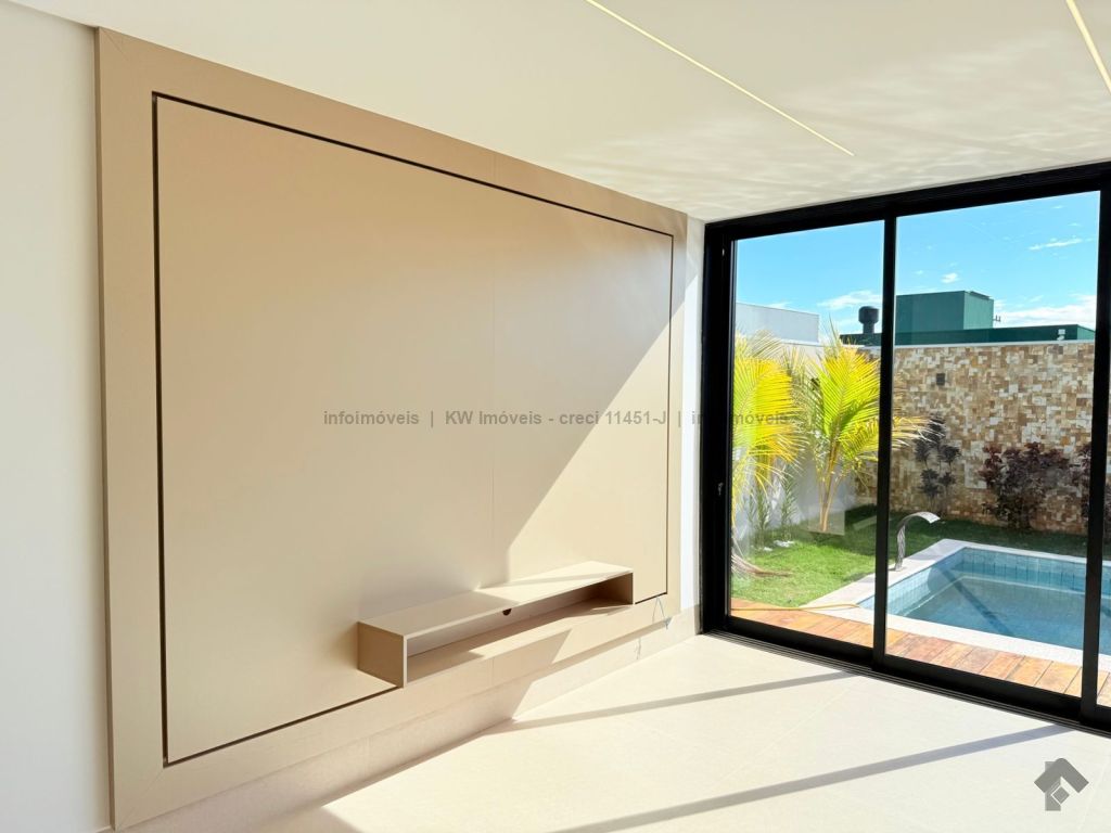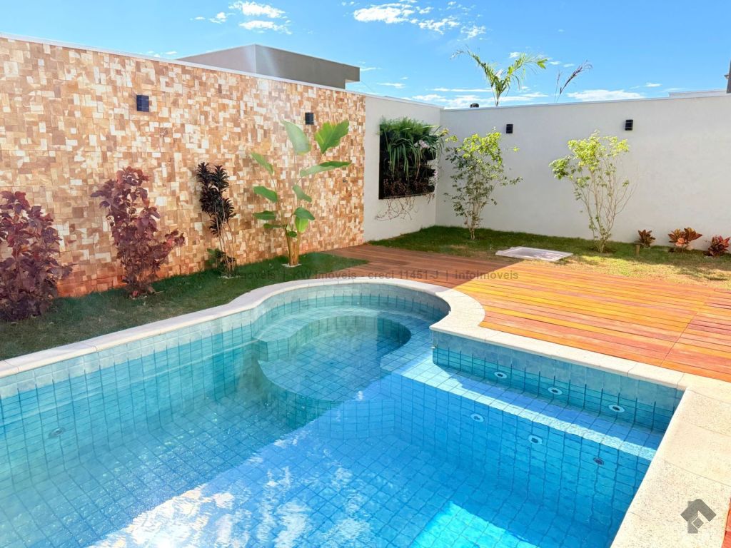 Garagem coberta para 4 veículos, piscina aquecida, sistema de água quente em todos os cômodos, ambientes climatizados, sala ampla com dois ambientes, integrando conforto e sofisticação, área gourmet climatizada, ideal para receber amigos e família, escritório com ar-condicionado, perfeito para home office, 1 suíte térrea, ideal para acessibilidade, 3 suítes no piso superior, todas com móveis planejados e ar-condicionado, destaque para a suíte máster, com closet e varanda privativa. Imóvel novo, com acabamentos de alto padrão e rico em móveis planejados. Área total de 383 m², área construída de 320 m².