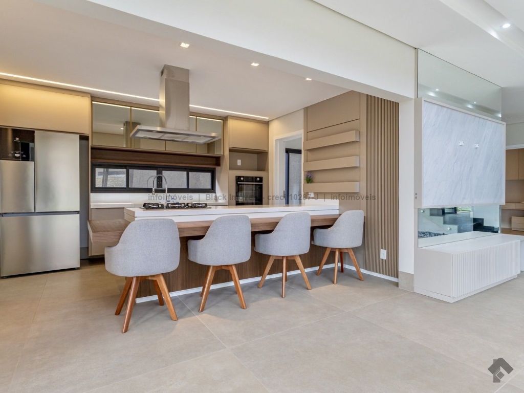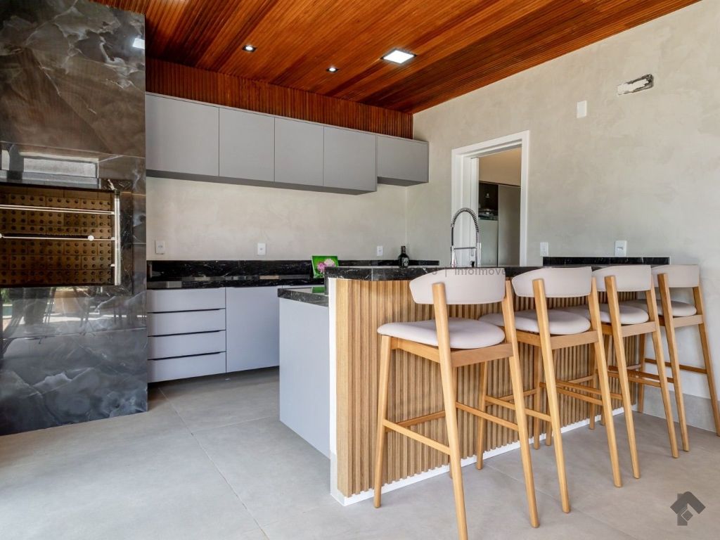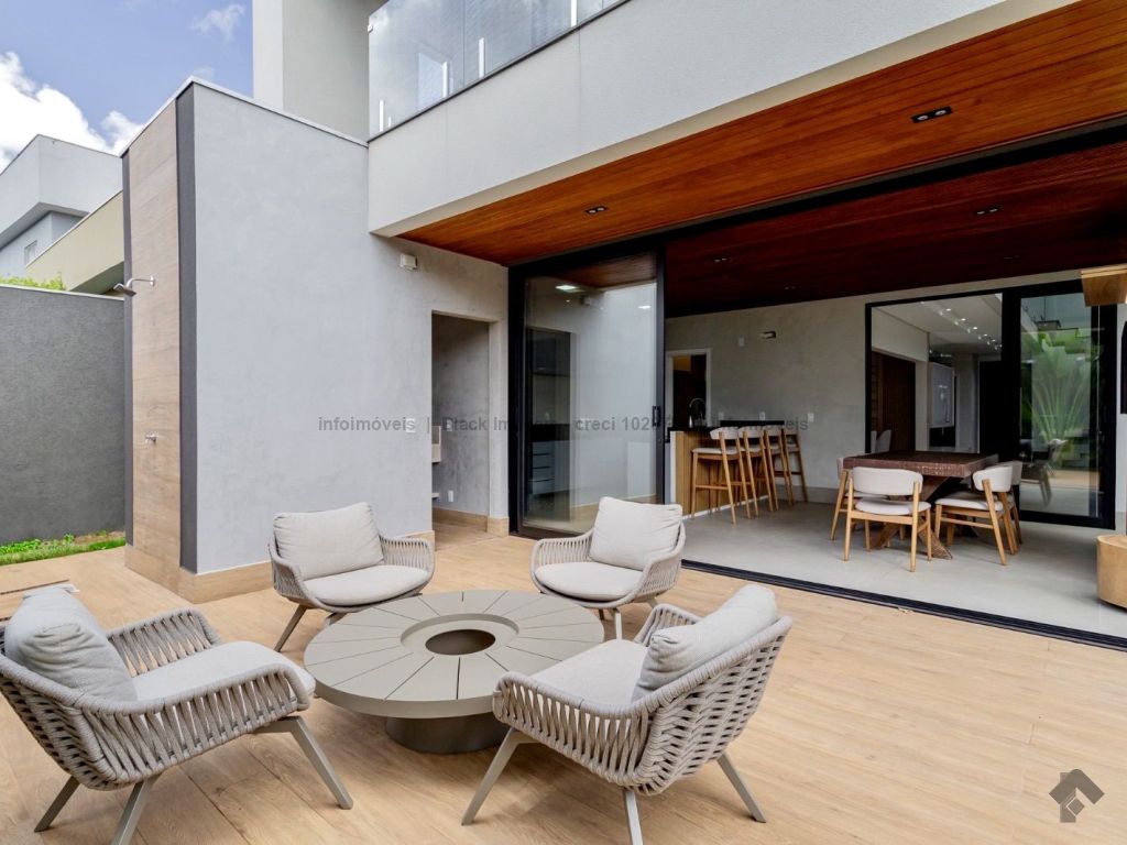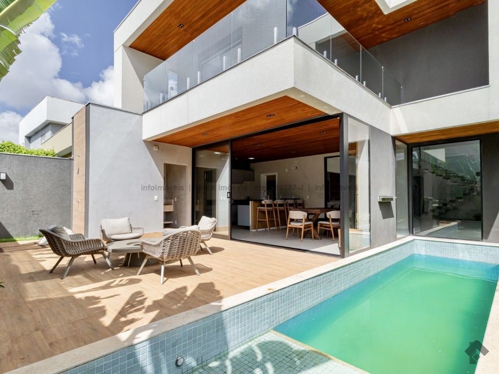 Maravilhoso sobrado em frente à praça, na parte alta do condomínio, rico em planejados, aparelhos de ar condicionado em todo o imóvel, cooktop, ilha quente e coifa. Possui itens de decoração no espaço gourmet e varanda. Possui energia fotovoltaica.