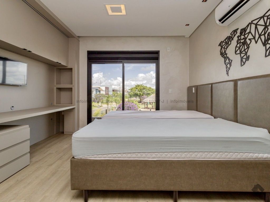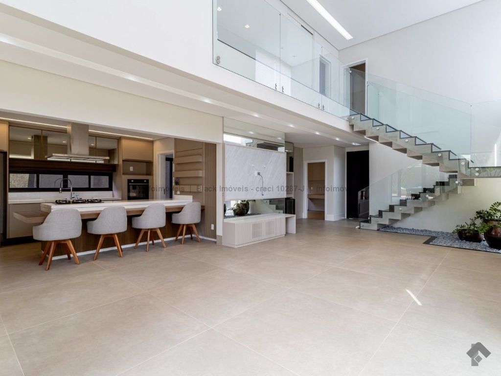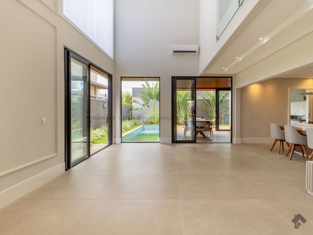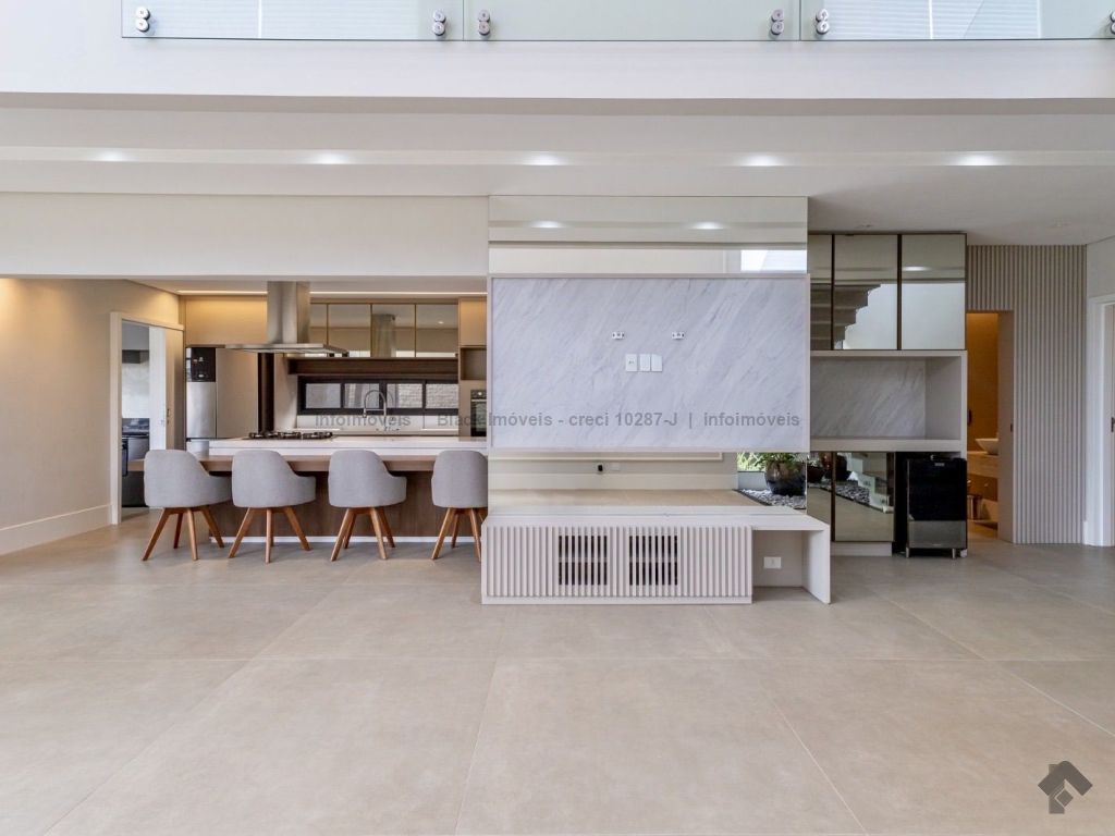 Maravilhoso sobrado em frente à praça, na parte alta do condomínio, rico em planejados, aparelhos de ar condicionado em todo o imóvel, cooktop, ilha quente e coifa. Possui itens de decoração no espaço gourmet e varanda. Possui energia fotovoltaica.
