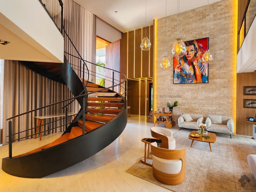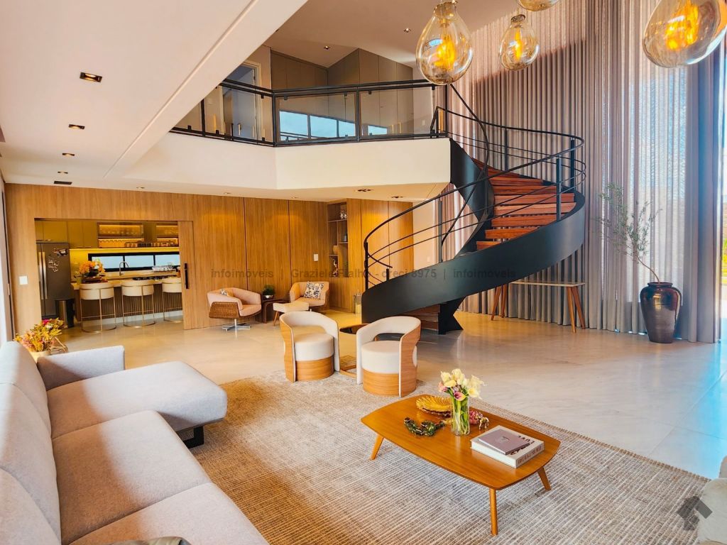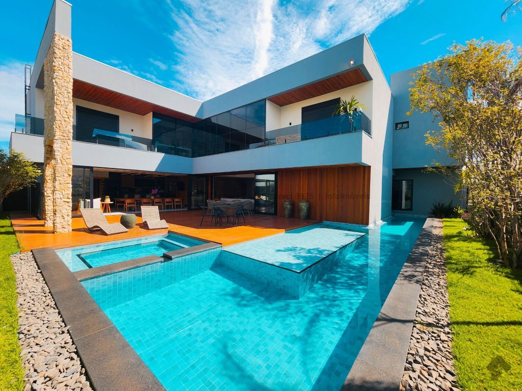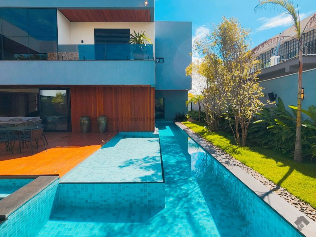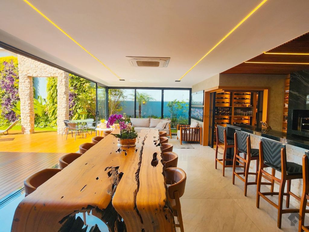 Esta impressionante residência é totalmente automatizada, com sistema de som de última geração, aspiração central e energia solar. Ao entrar, você é recebido por um pé direito duplo e ambientes integrados. A casa inclui lavabo, sala de cinema, escritório, cozinha planejada e um espaço gourmet com adega climatizada. No andar superior, há uma suíte máster com closet dos sonhos e sacada, além de três suítes detalhadas e uma sala íntima com vista panorâmica. A área de lazer conta com piscina aquecida, hidromassagem e um paisagismo deslumbrante com iluminação e irrigação automatizada.