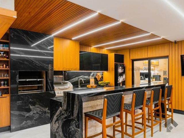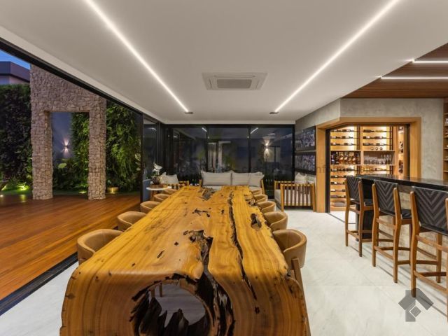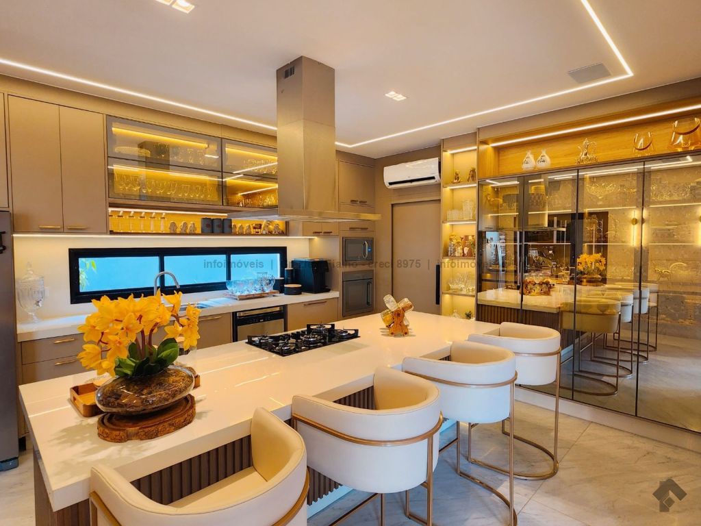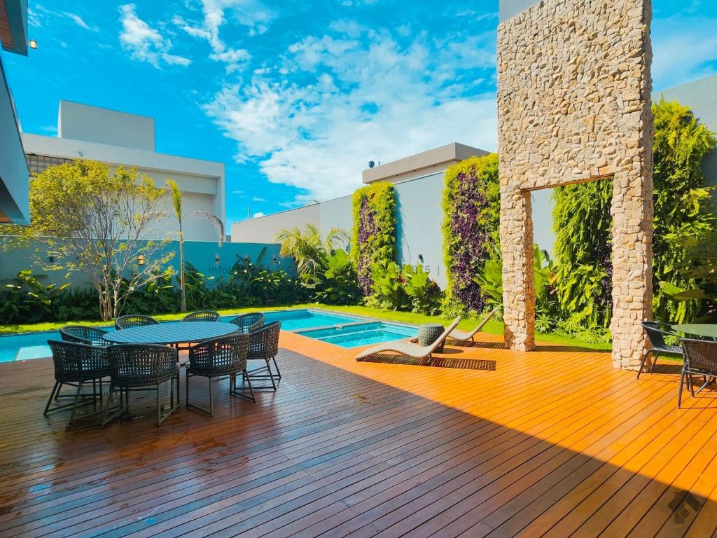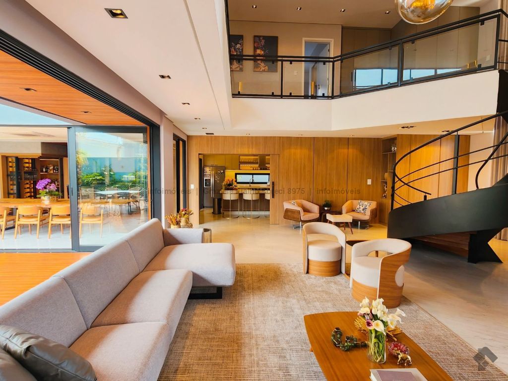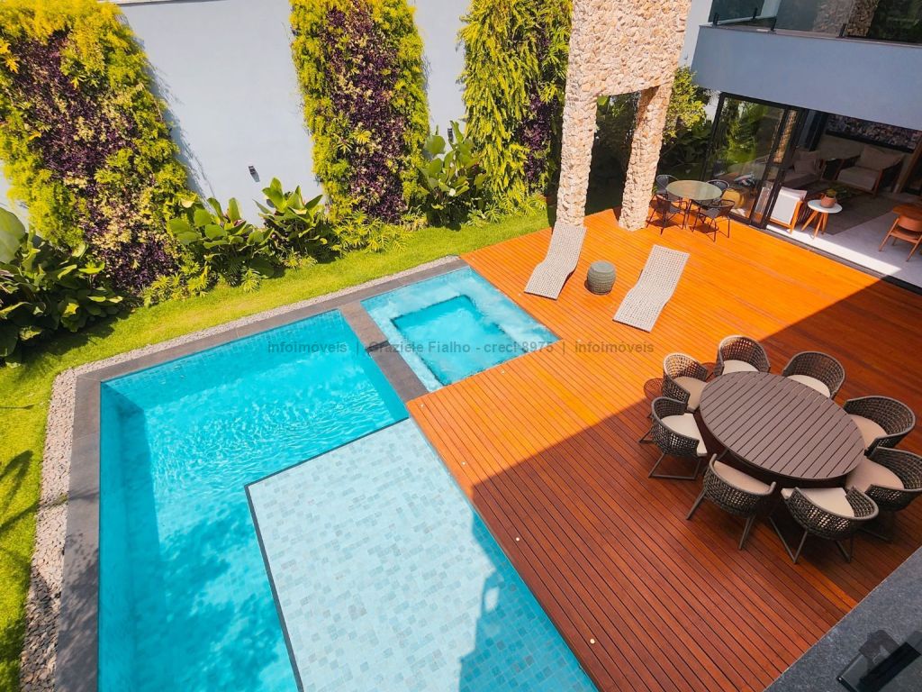 Esta impressionante residência é totalmente automatizada, com sistema de som de última geração, aspiração central e energia solar. Ao entrar, você é recebido por um pé direito duplo e ambientes integrados. A casa inclui lavabo, sala de cinema, escritório, cozinha planejada e um espaço gourmet com adega climatizada. No andar superior, há uma suíte máster com closet dos sonhos e sacada, além de três suítes detalhadas e uma sala íntima com vista panorâmica. A área de lazer conta com piscina aquecida, hidromassagem e um paisagismo deslumbrante com iluminação e irrigação automatizada.