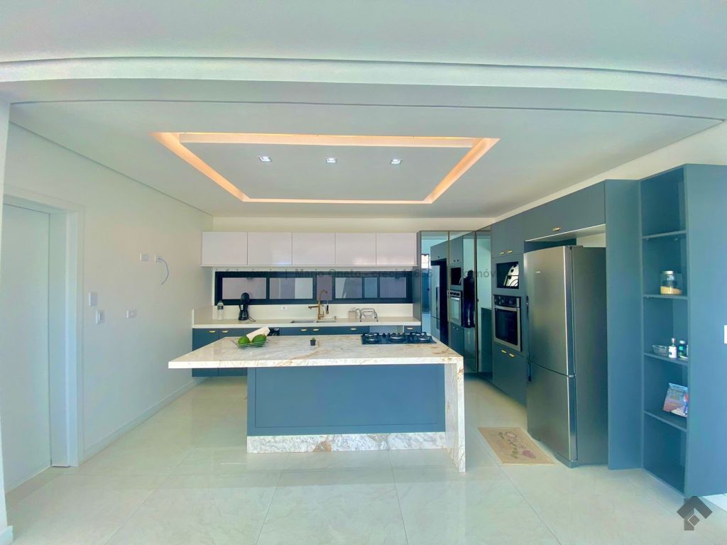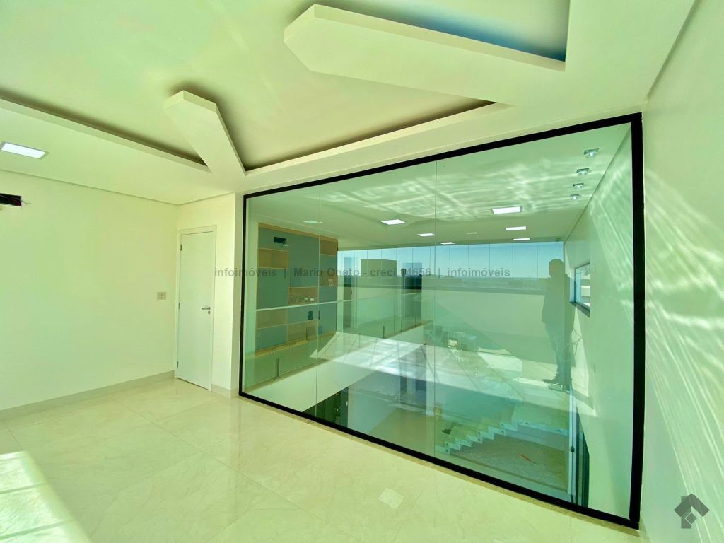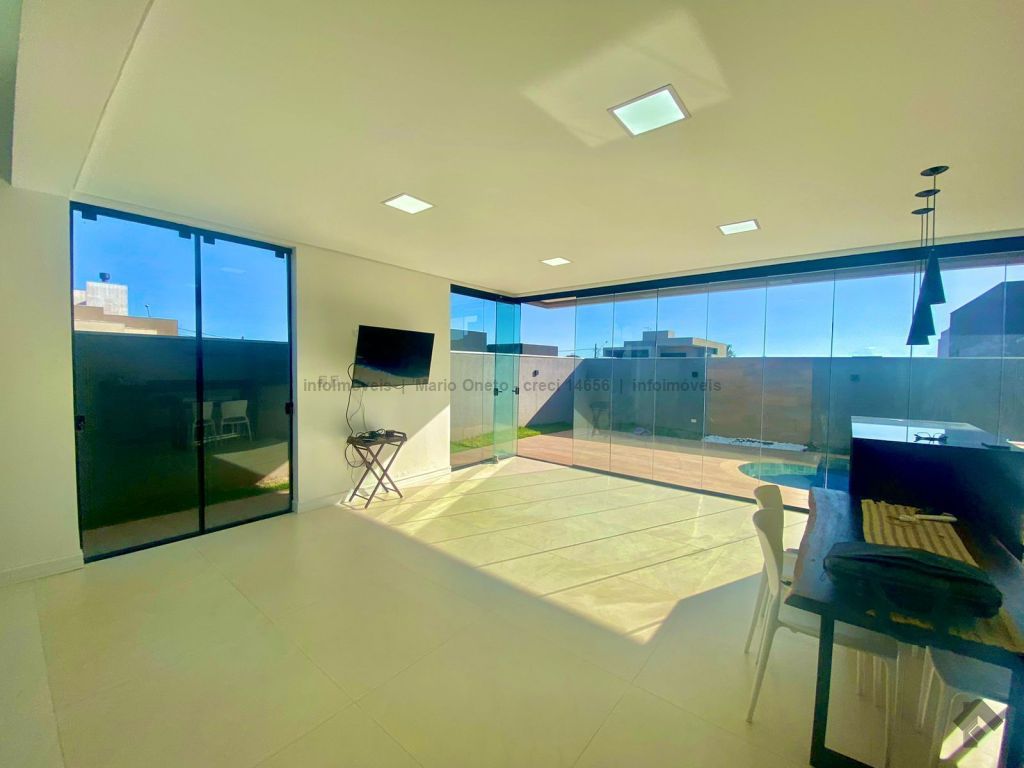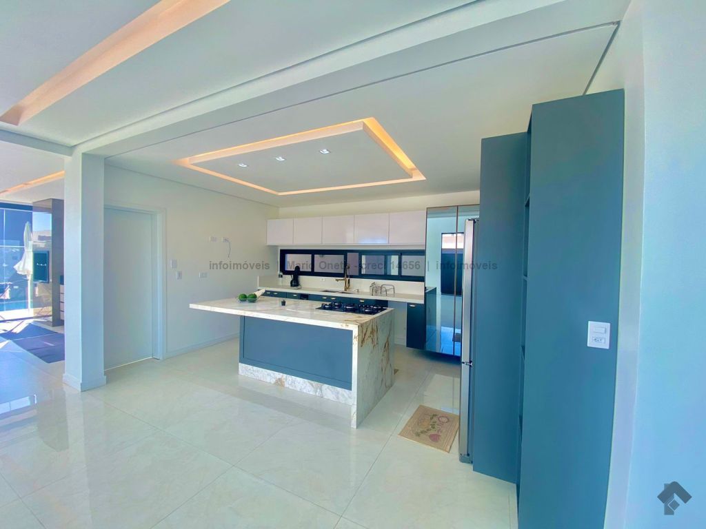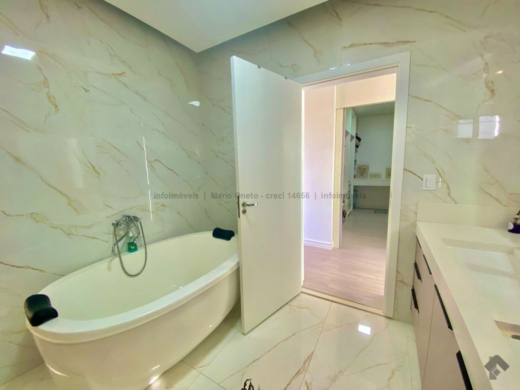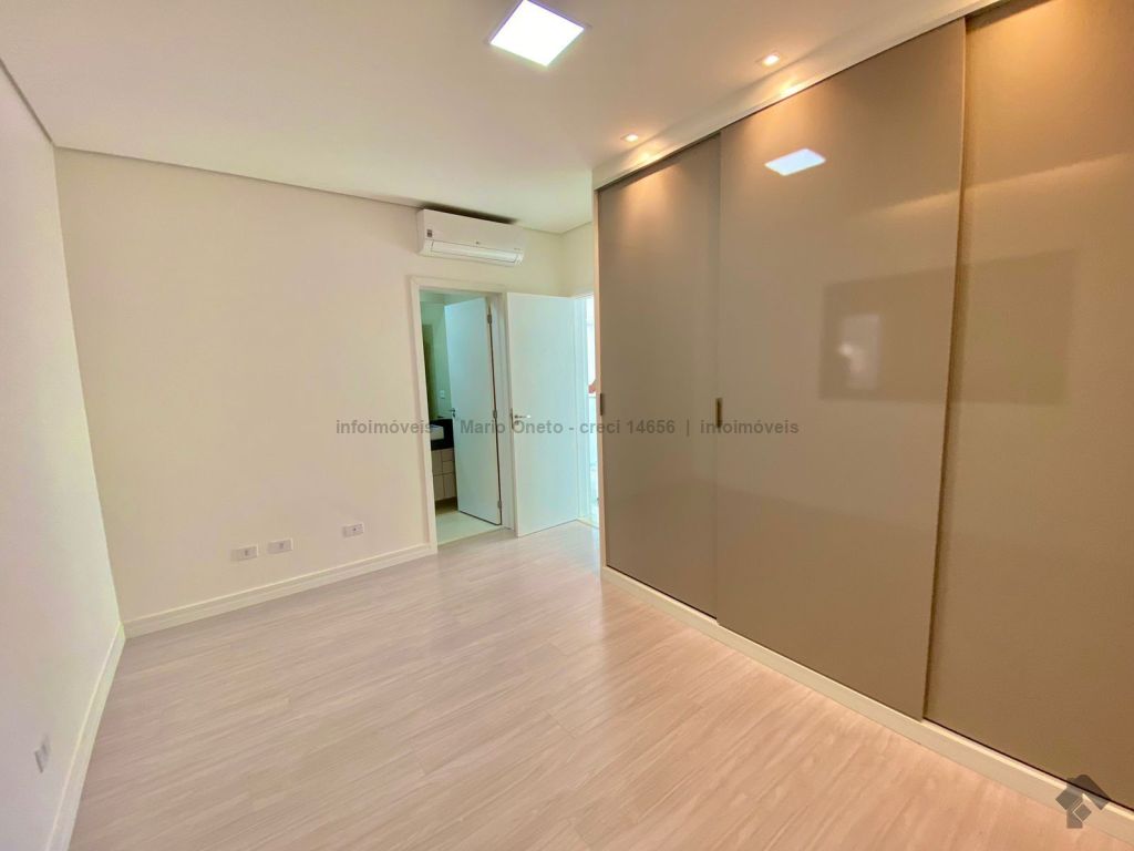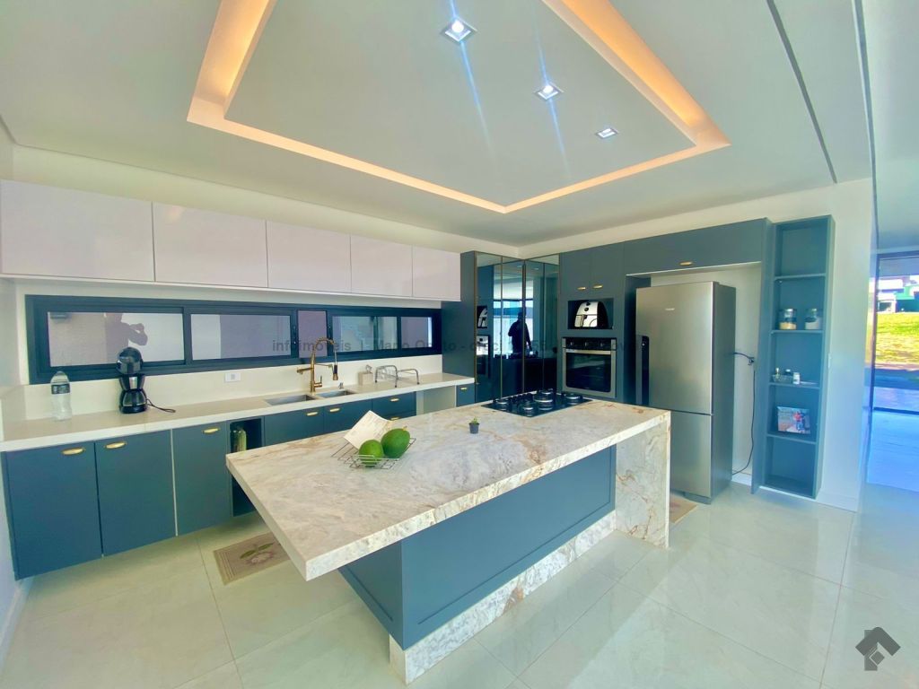 Piso térreo: sala 2 ambientes com pé direito duplo, cozinha americana com armários planejados, interligada ao espaço gourmet com churrasqueira e armários planejados, quarto, banheiro social, escritório, piscina aquecida com hidromassagem, lavanderia com armários planejados, depósito, banheiro da piscina e garagem para 4 carros. Piso superior: suíte master com closet, banheiro com 2 cubas, 2 chuveiros e banheira, e sacada, 2 suítes com armários planejados e sala de TV ampla. Boiler para aquecimento de água.