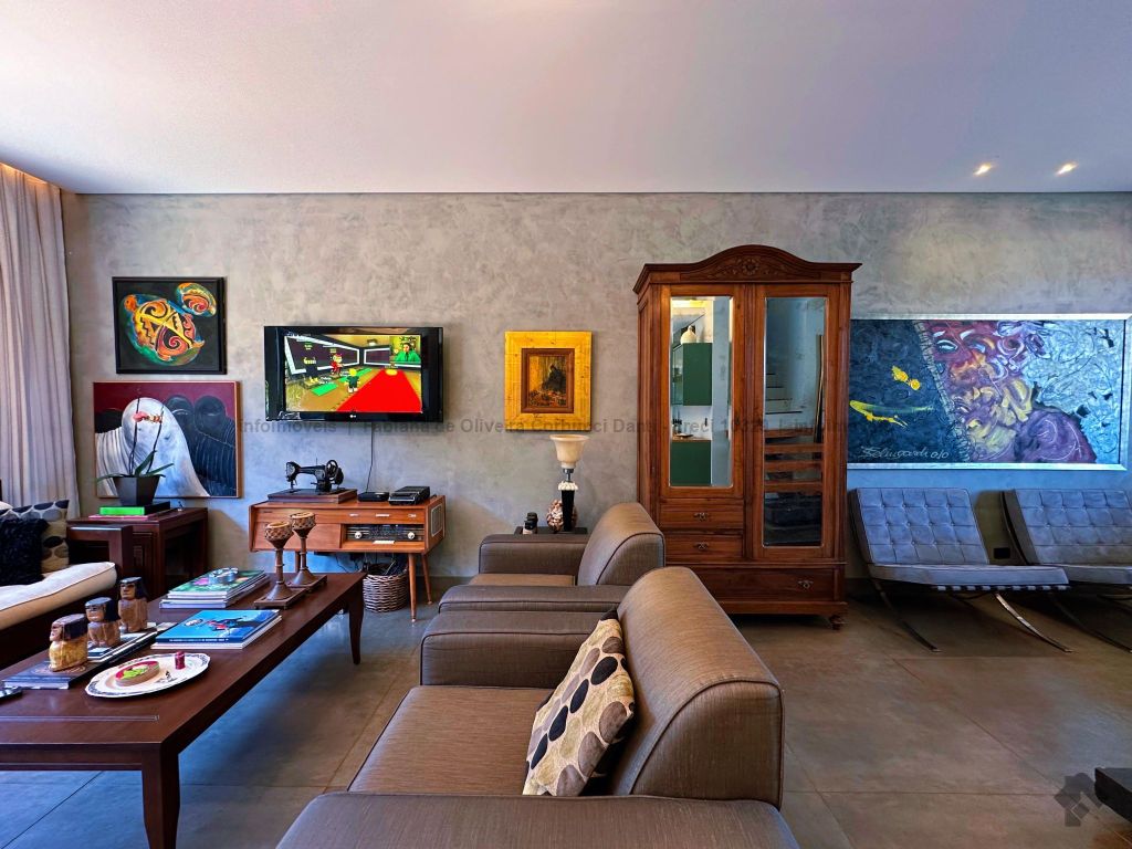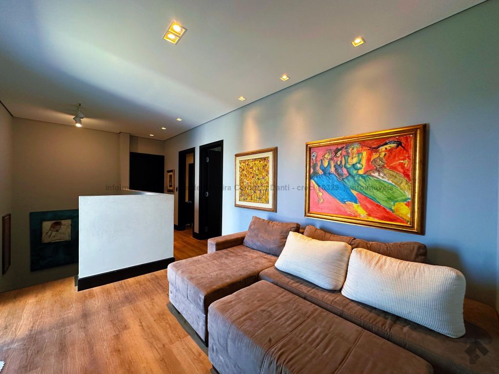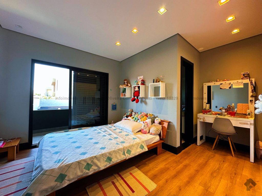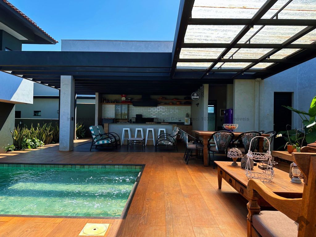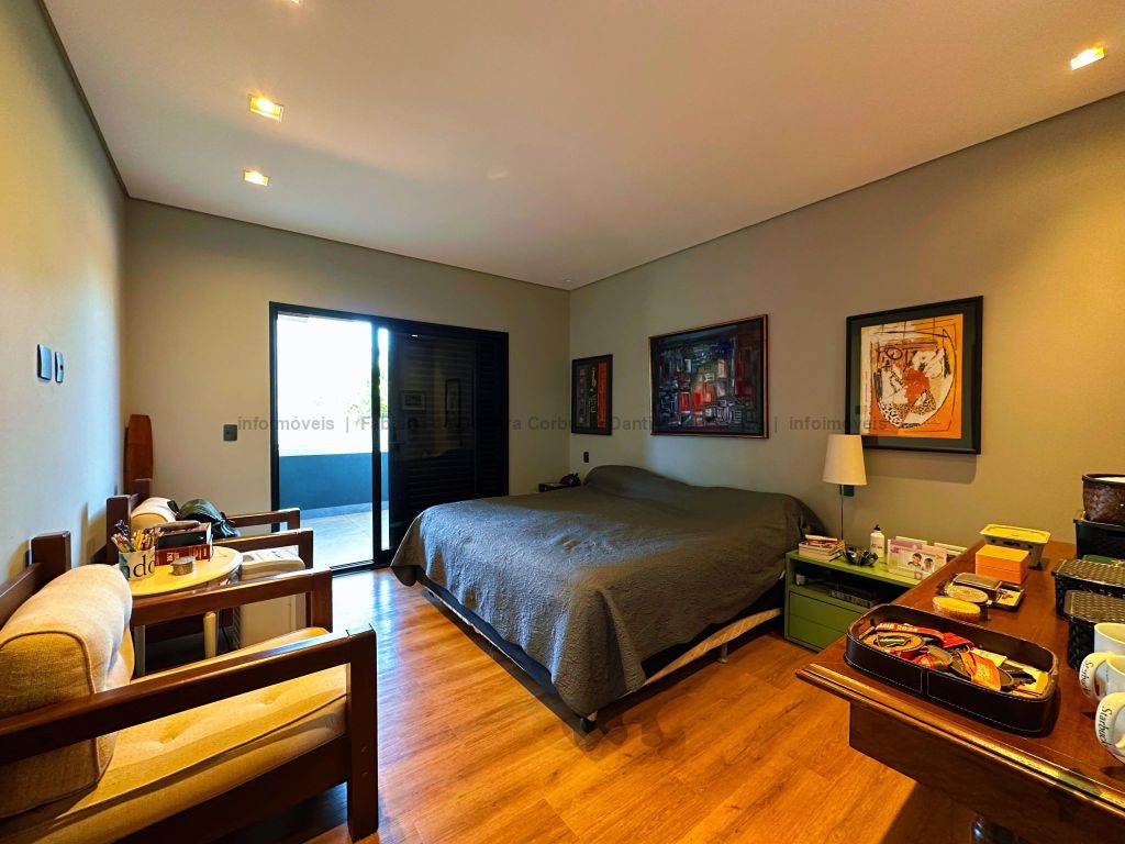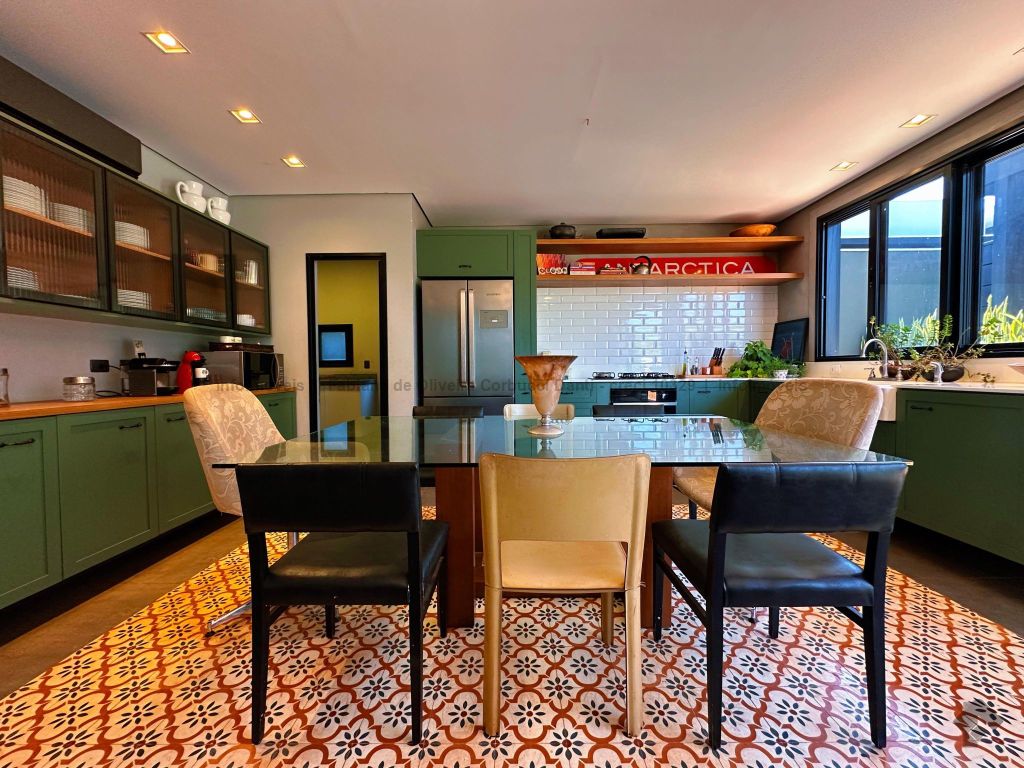 No térreo conta com 1 quarto ou escritório, 1 banheiro completo, sala integrada à cozinha em conceito aberto, cozinha planejada, despensa, lavanderia, hall de entrada de serviço e 1 banheiro de serviço. No piso superior são 2 apartamentos, 1 suíte com closet, varandas em todos os quartos, além de escritório/rouparia e sala íntima. A área de lazer oferece churrasqueira gourmet, piscina com borda infinita e aquecida, lareira externa, casa de piscina com depósito, banheiro completo e espaço para academia externa. Diferenciais: aquecimento solar em chuveiros e torneiras, aquecimento solar para piscina, energia solar fotovoltaica e garagem coberta para 3 carros.