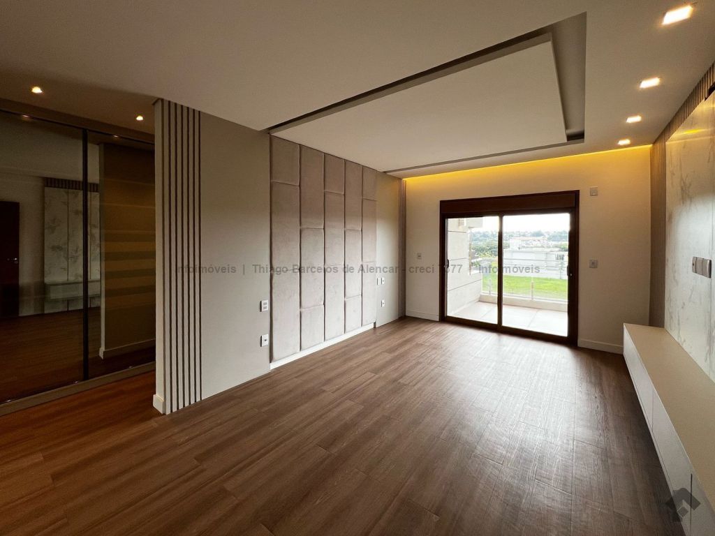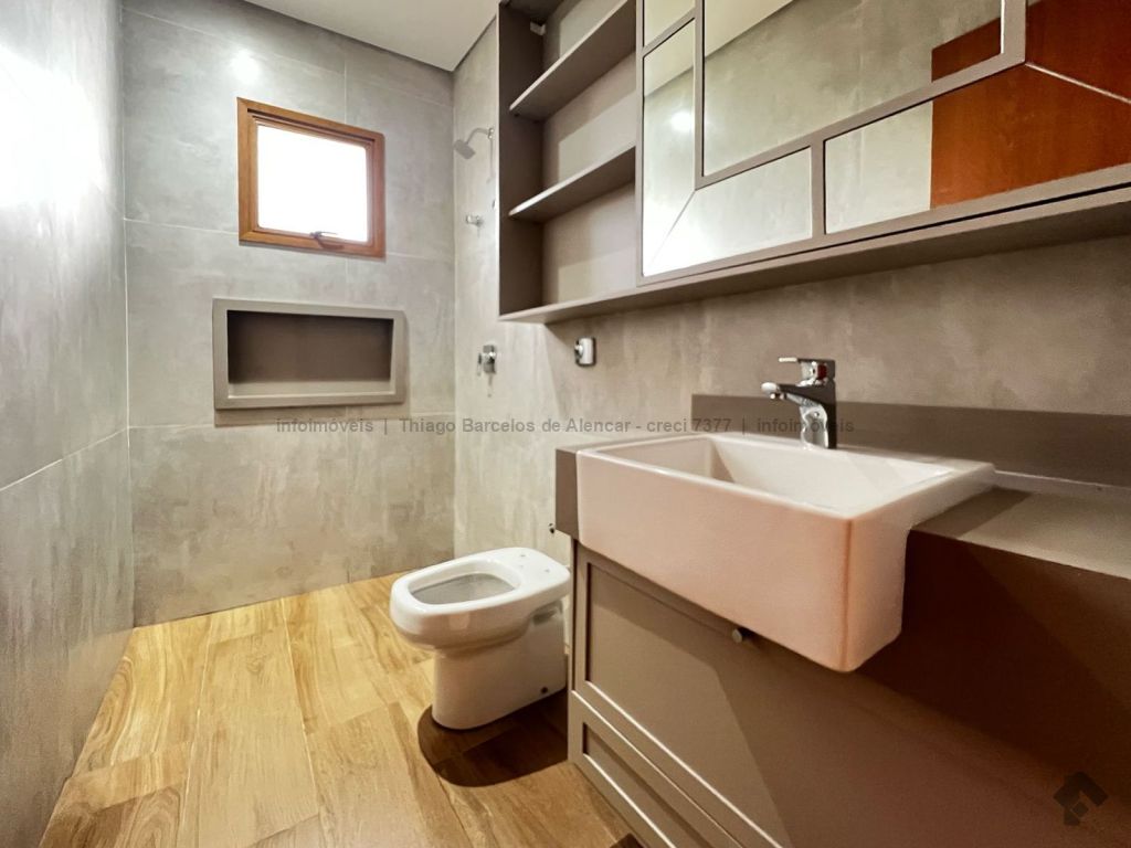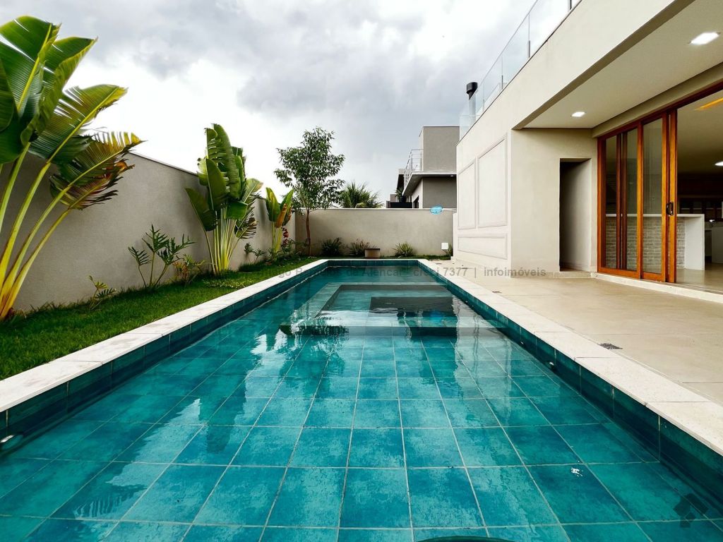 Linda casa. Conta com quatro suítes. No piso térreo temos sala de estar com pé-direito duplo, sala de jantar integrada, sala de TV/home office, lavabo, cozinha, lavanderia, uma suíte, área gourmet e banheiro externo. No piso superior temos três suítes, sendo uma delas master com closet e armário e uma sala de cinema. A casa é rica em detalhes, oferecendo aquecimento solar, suíte master com closet e armário com portas de vidro Reflecta, banho da suíte master com banheira de hidromassagem aquecida e linda vista. Esquadrias de alumínio em todo o imóvel e persianas automatizadas com acionamento via controle remoto nas quatro suítes. Paisagismo, pisos e revestimentos em porcelanato de fino acabamento.
