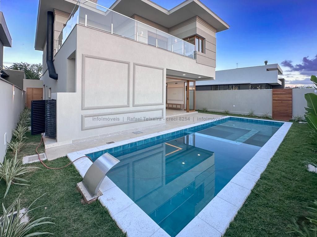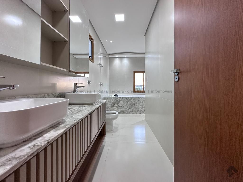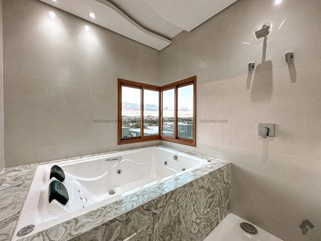 Suíte master com closet, armário com portas de vidro, painéis em mdf, rack e cabeceira estofada. Móveis planejados na cozinha, área gourmet, lavanderia e em todos os banhos das suítes. Suíte master com banheira hidromassagem com aquecedor e linda vista. Esquadrias de alumínio em todo o imóvel e persiana automatizada com acionamento via controle remoto em todas as suítes. Pré-instalação de ar-condicionado nas 4 suítes, sala cinema, sala de tv, área gourmet e sala de estar. Piscina, com hidro, cascata, led e acionamento via controle remoto da piscina, cascata e da iluminação. Aquecedor solar de água com sistema de alta pressão com capacidade de 600L.
