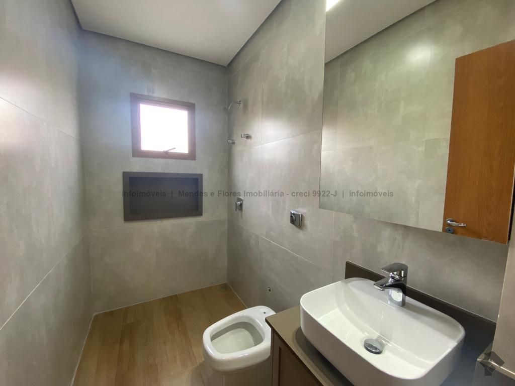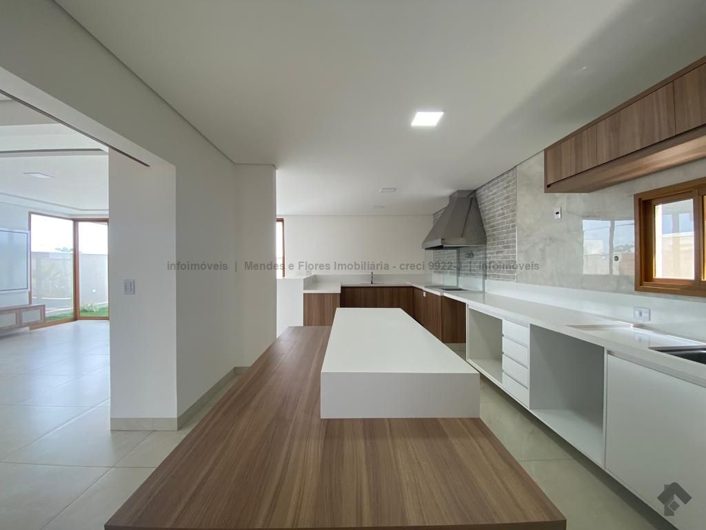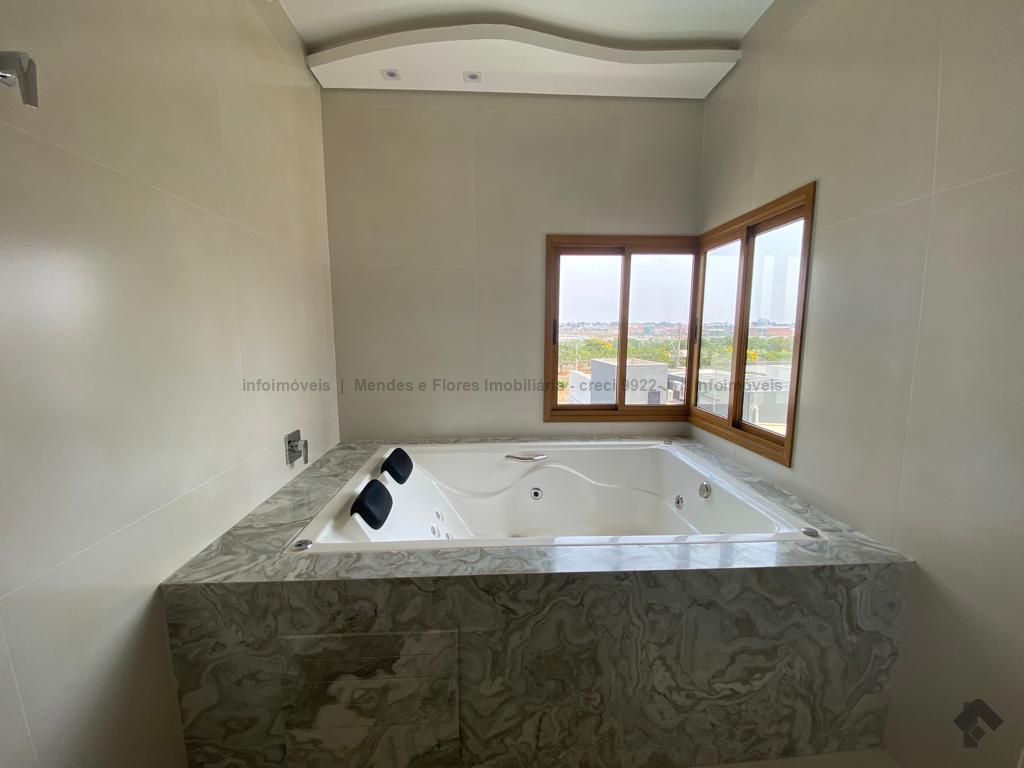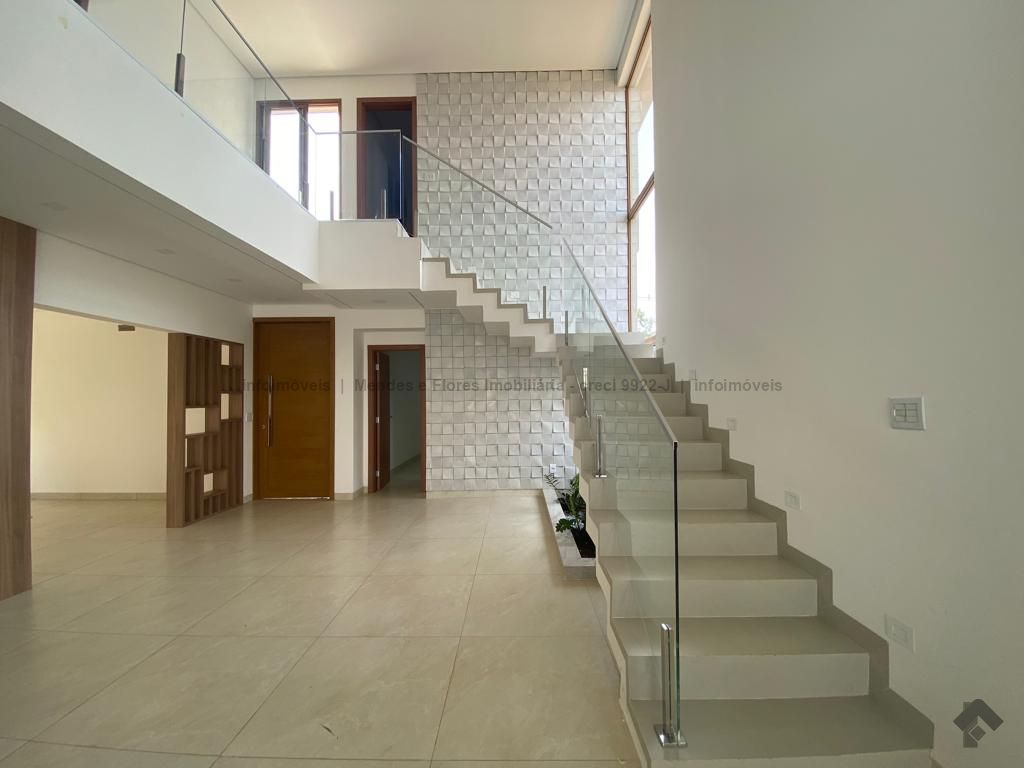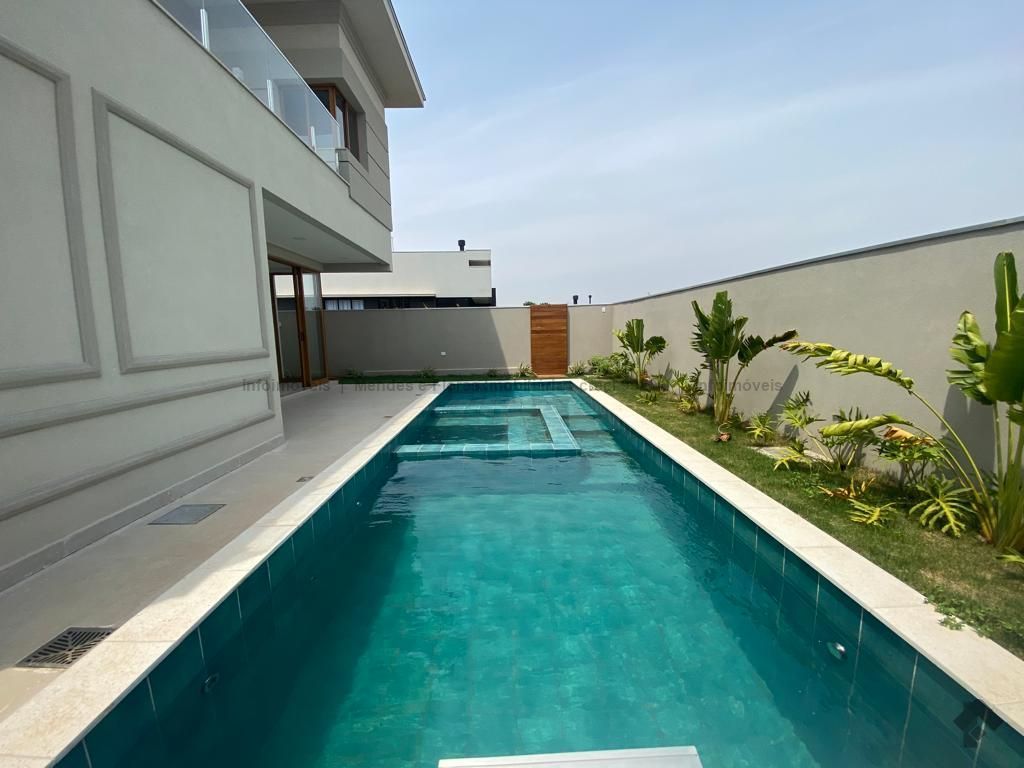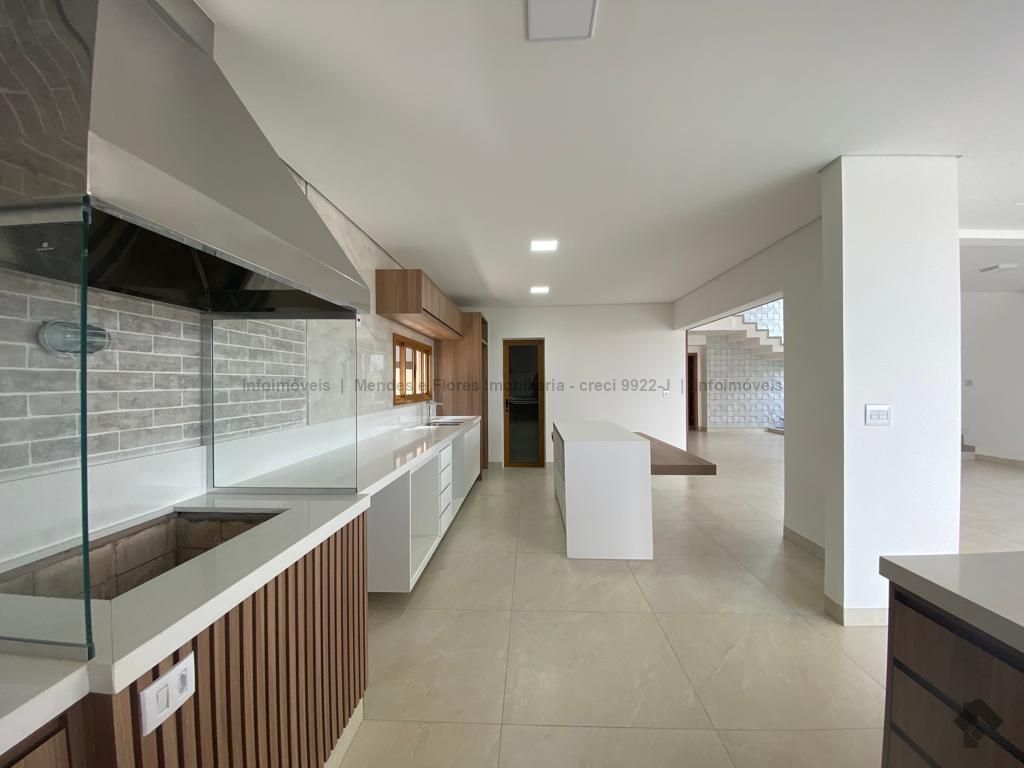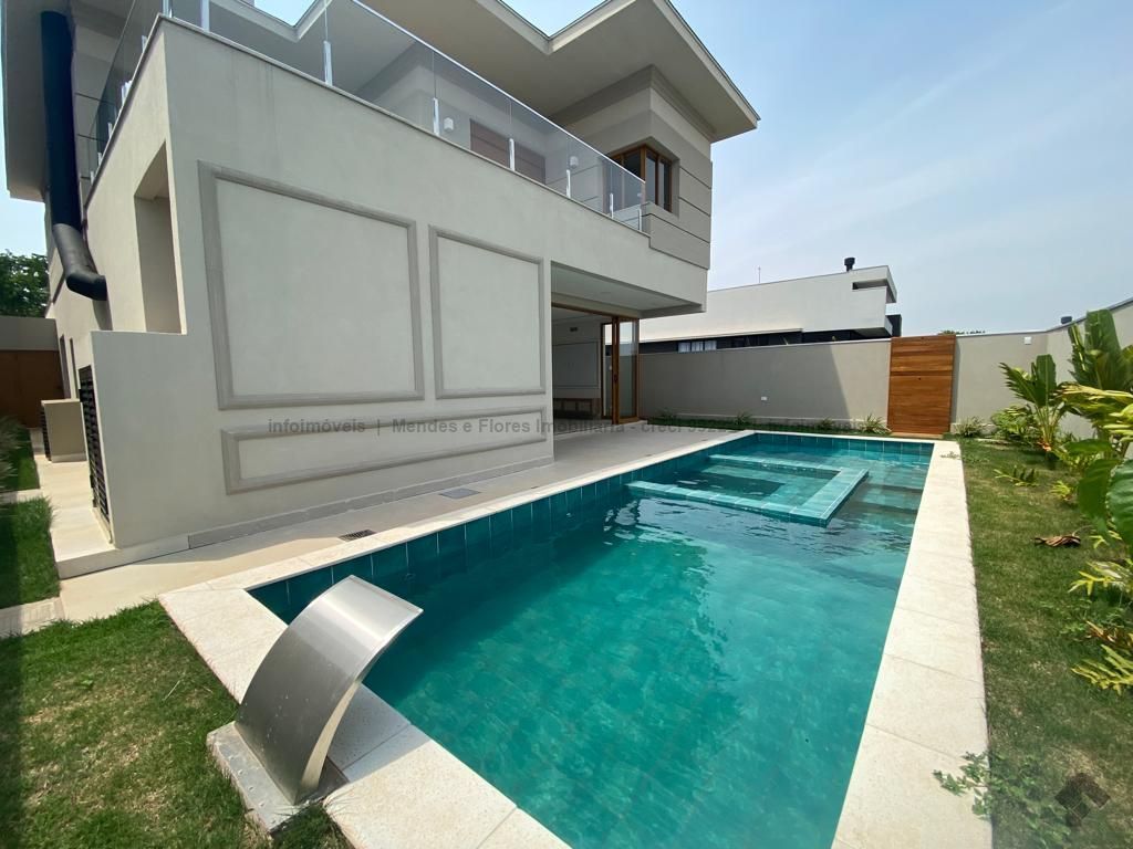 Piso térreo: sala de estar com pé-direito duplo, sala de jantar integrada, sala de TV/home office, 01 suíte, lavabo, cozinha, lavanderia, área gourmet, piscina, wc externo. Piso superior: 3 suítes, 1 sala cinema, suíte master com closet, amplo armário com portas em vidro reflecta bronze, painéis em MDF, rack e cabeceira estofada. Banheira hidromassagem com aquecedor e linda vista. Móveis planejados na cozinha, área gourmet, lavanderia e em todos os banhos das suítes. Espaço de apoio no andar superior com ponto de água e energia. Esquadrias de alumínio padrão amadeirado em todo o imóvel e persiana automatizada com acionamento via controle remoto em todas as suítes.