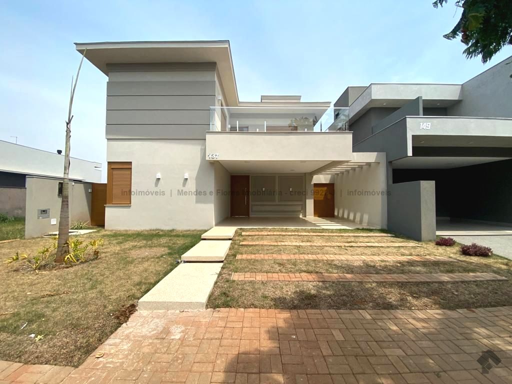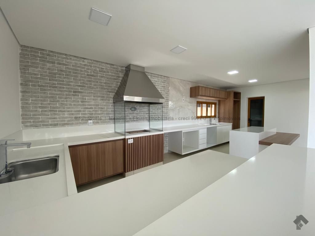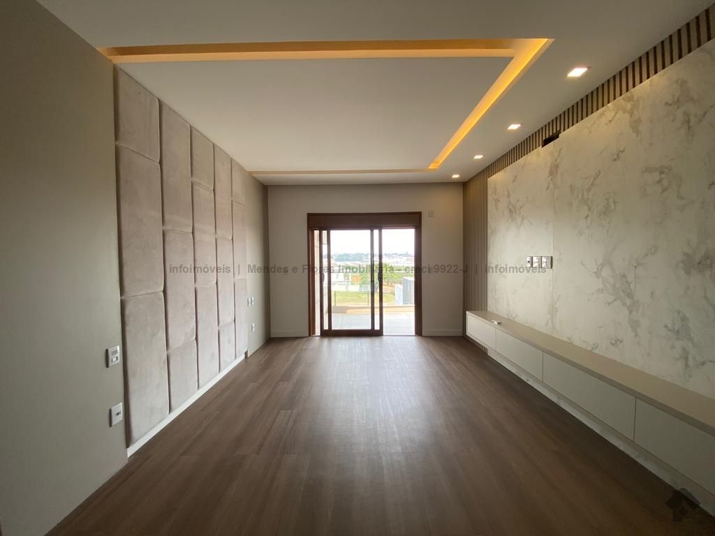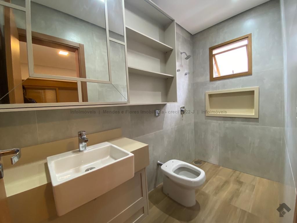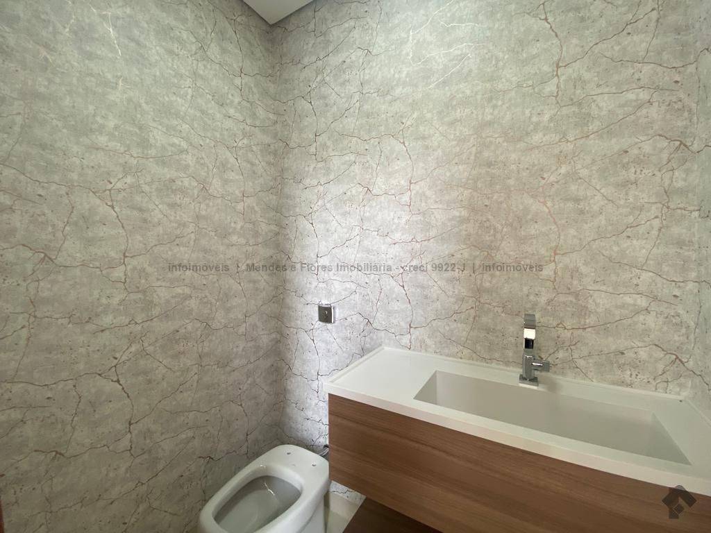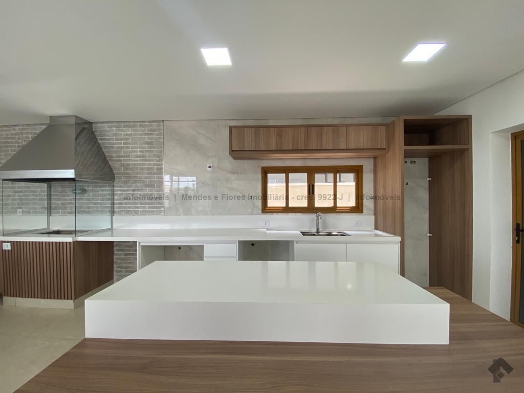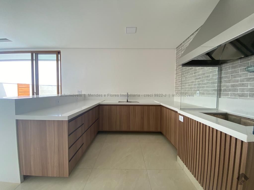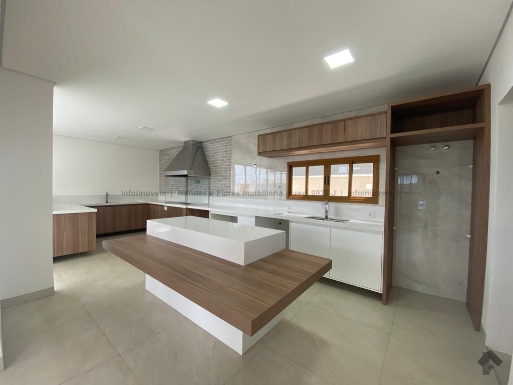 Piso térreo: sala de estar com pé-direito duplo, sala de jantar integrada, sala de TV/home office, 01 suíte, lavabo, cozinha, lavanderia, área gourmet, piscina, wc externo. Piso superior: 3 suítes, 1 sala cinema, suíte master com closet, amplo armário com portas em vidro reflecta bronze, painéis em MDF, rack e cabeceira estofada. Banheira hidromassagem com aquecedor e linda vista. Móveis planejados na cozinha, área gourmet, lavanderia e em todos os banhos das suítes. Espaço de apoio no andar superior com ponto de água e energia. Esquadrias de alumínio padrão amadeirado em todo o imóvel e persiana automatizada com acionamento via controle remoto em todas as suítes.