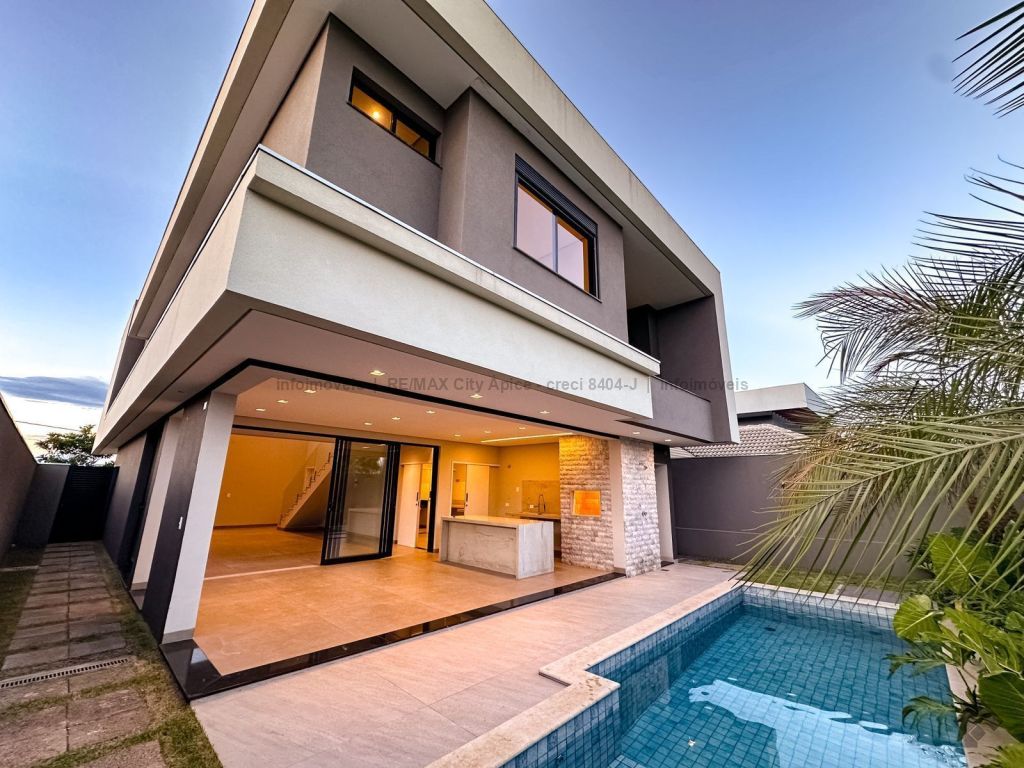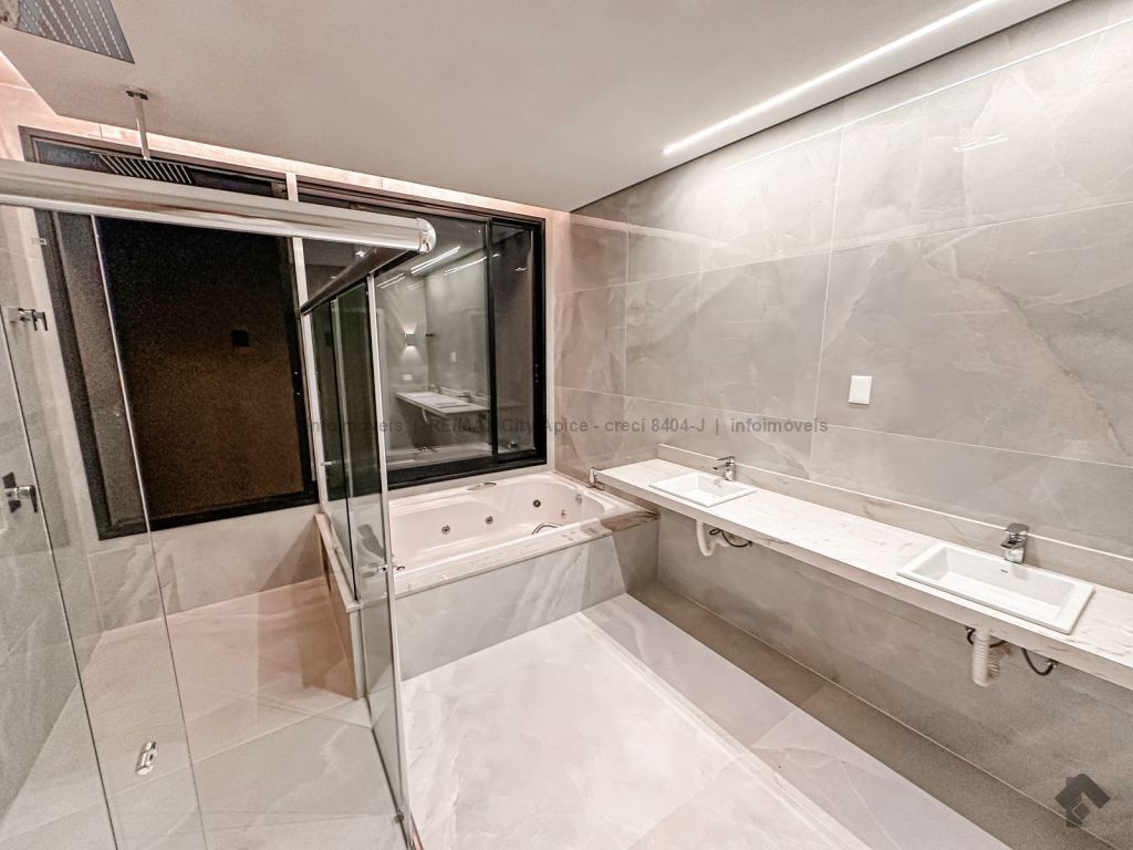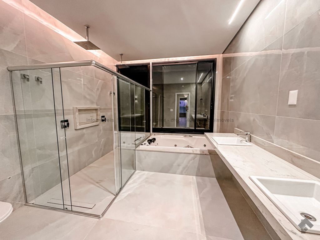 Sobrado no Alphaville III, com 4 suítes, sendo 1 suíte master com hidromassagem, closet e sacada. 1 suíte no piso térreo, podendo converter para escritório, copa no piso superior, sala ampla, cozinha com acesso ao gourmet, piscina aquecida. Projeto do Dalber.