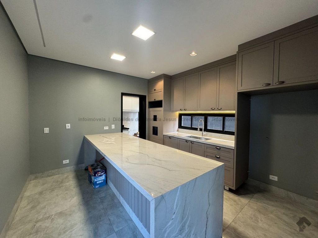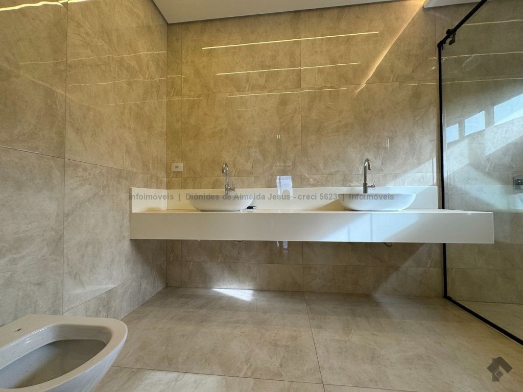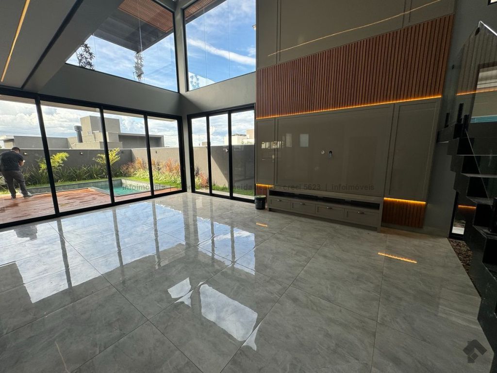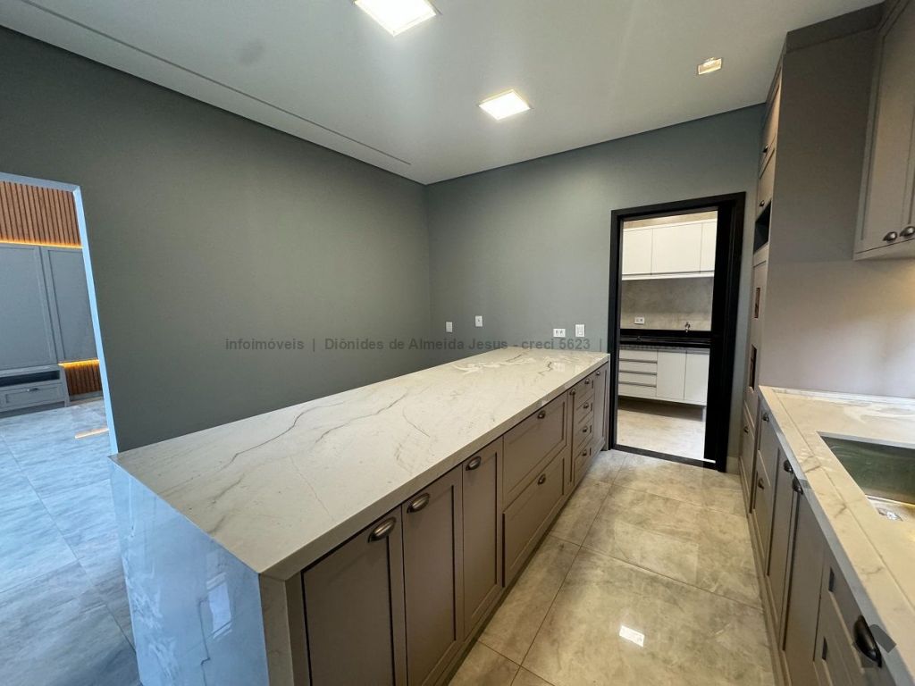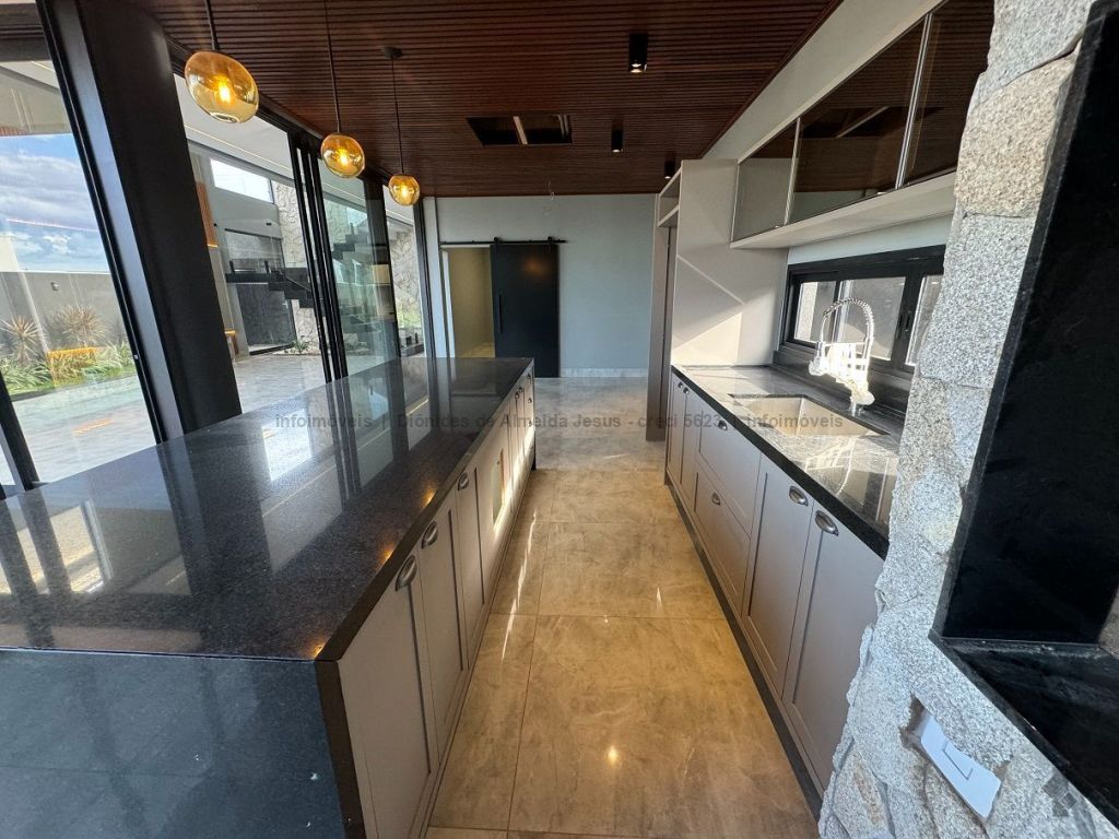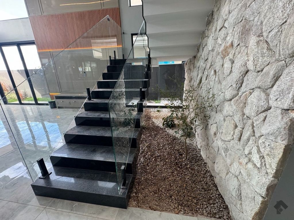 Rica em armários, em pedras, em vidro temperado, jardinagem, piso térreo contendo escritório (podendo se tornar um quarto), banheiro social, sala ampla, cozinha planejada com ilha, lavanderia e área gourmet, piso superior contendo hall, 3 suítes, sendo uma com closet.