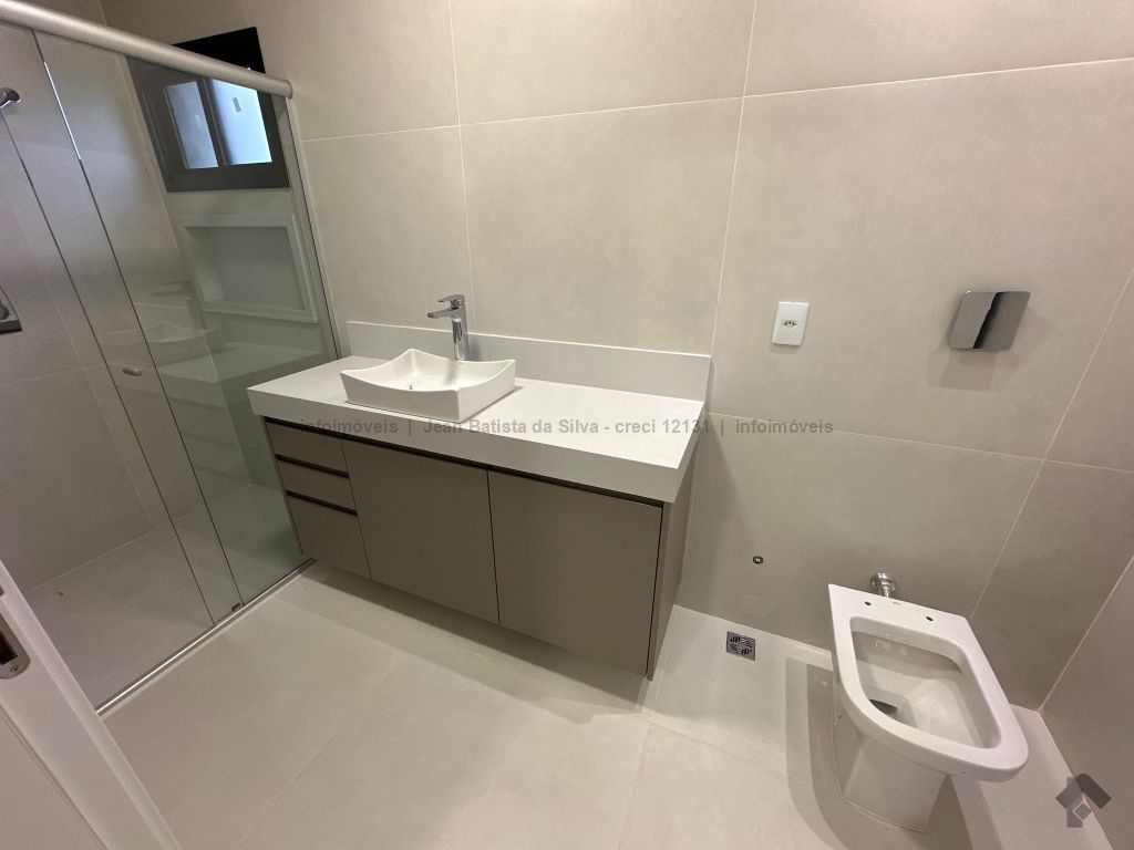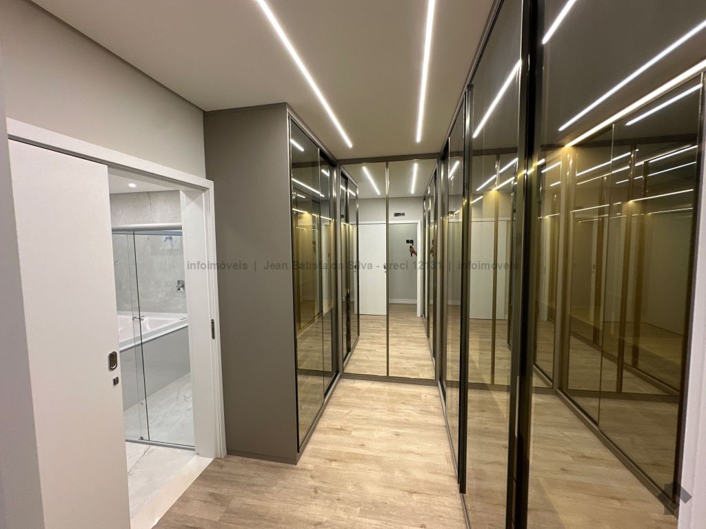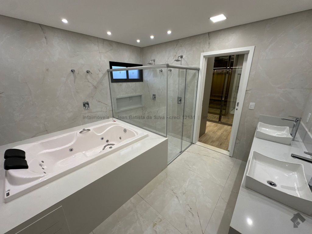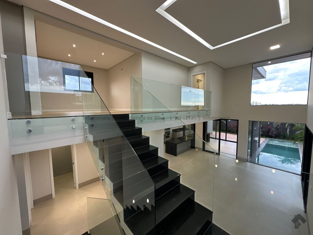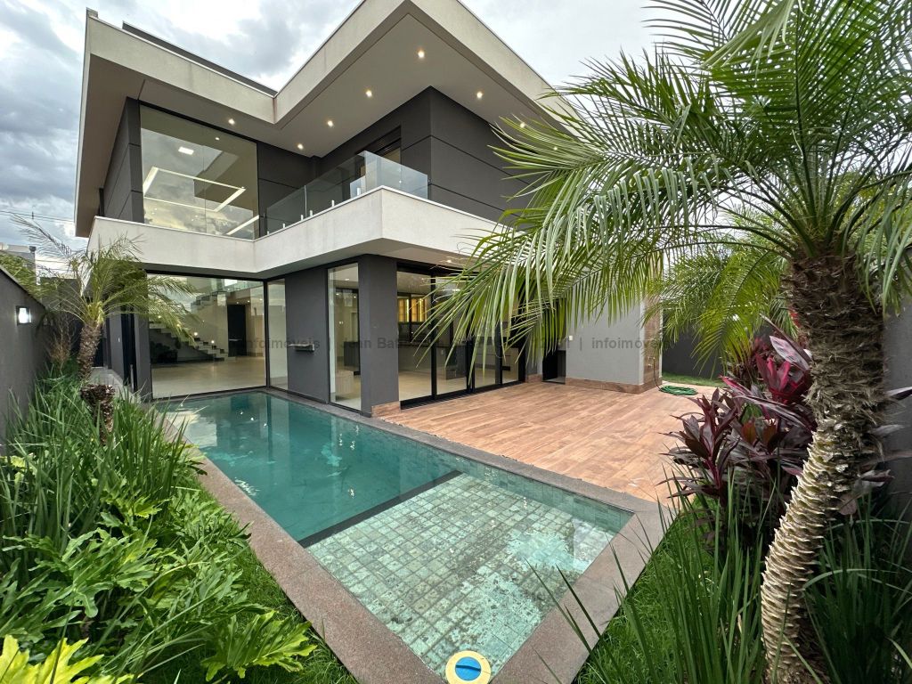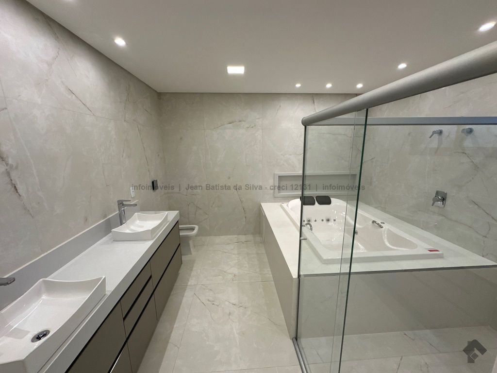 Apresento este maravilhoso sobrado com tudo que há de modernidade em construção, localizado dentro do Alphaville 3, com o mais sofisticado acabamento, imóvel rico em detalhes, composto por garagem para quatro carros ou mais, fechadura digital, sala ampla para três ambientes, uma suíte na parte inferior, cozinha linda rica em planejados e pedras de mármore, uma área gourmet que proporciona integração com a casa, criando a harmonia que você e sua família merecem, possui um lavabo na parte inferior e um banheiro completo para atender à piscina. Na parte superior, são mais três suítes, incluindo uma com closet e hidromassagem, além de um banheiro social completo, todas as janelas com persianas.
