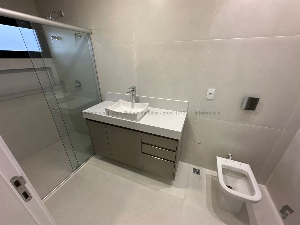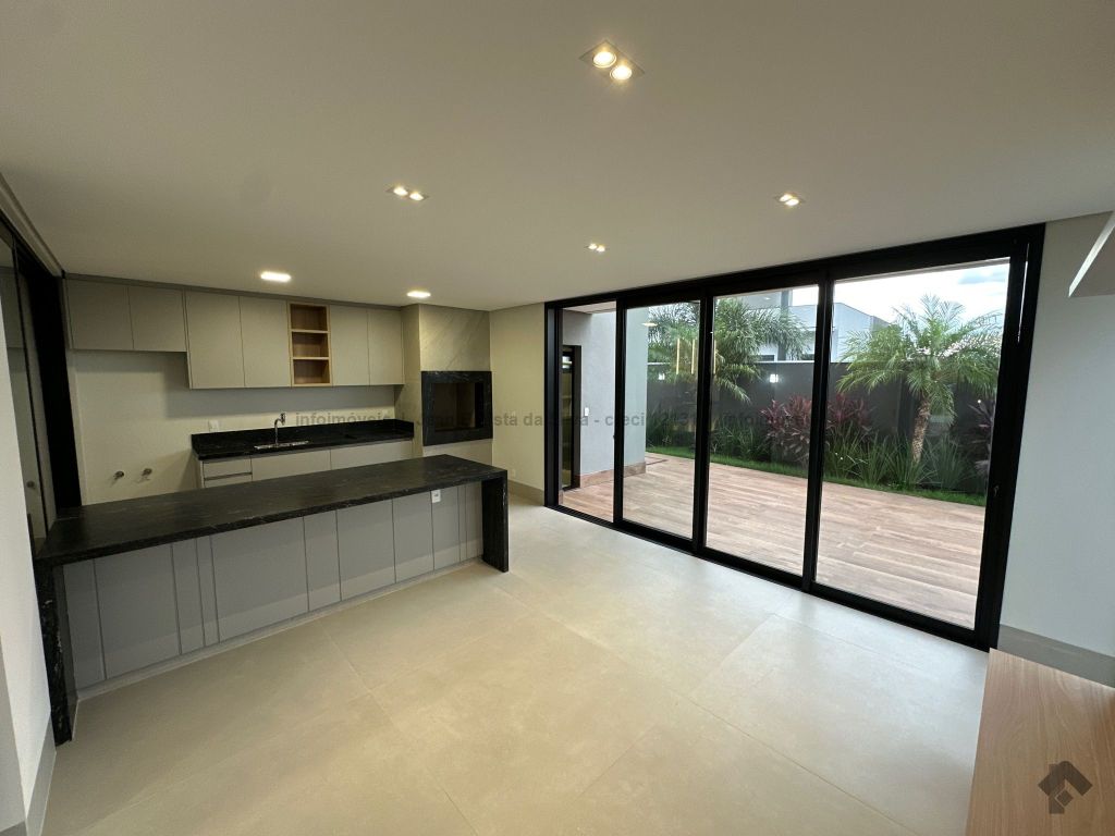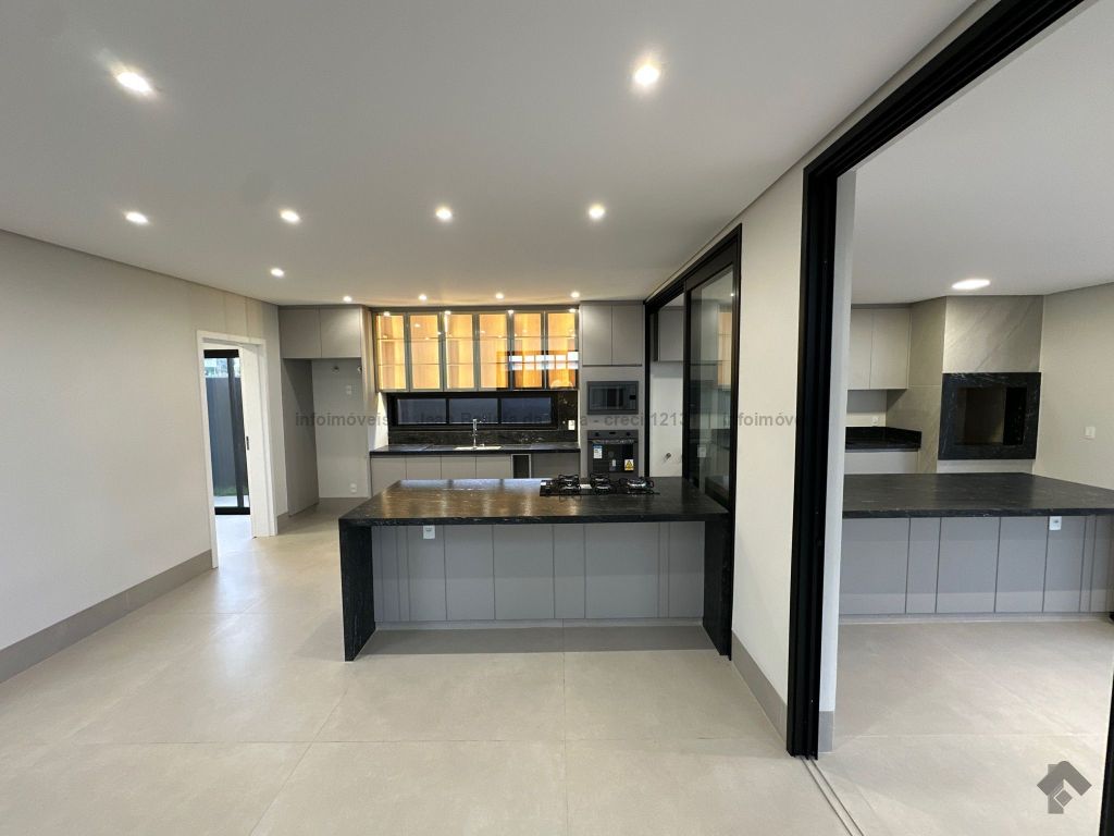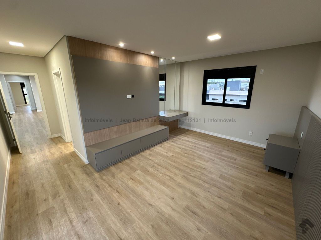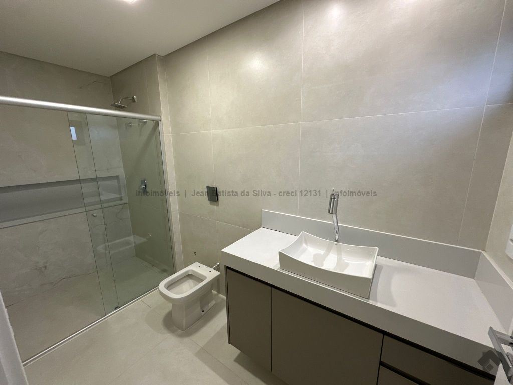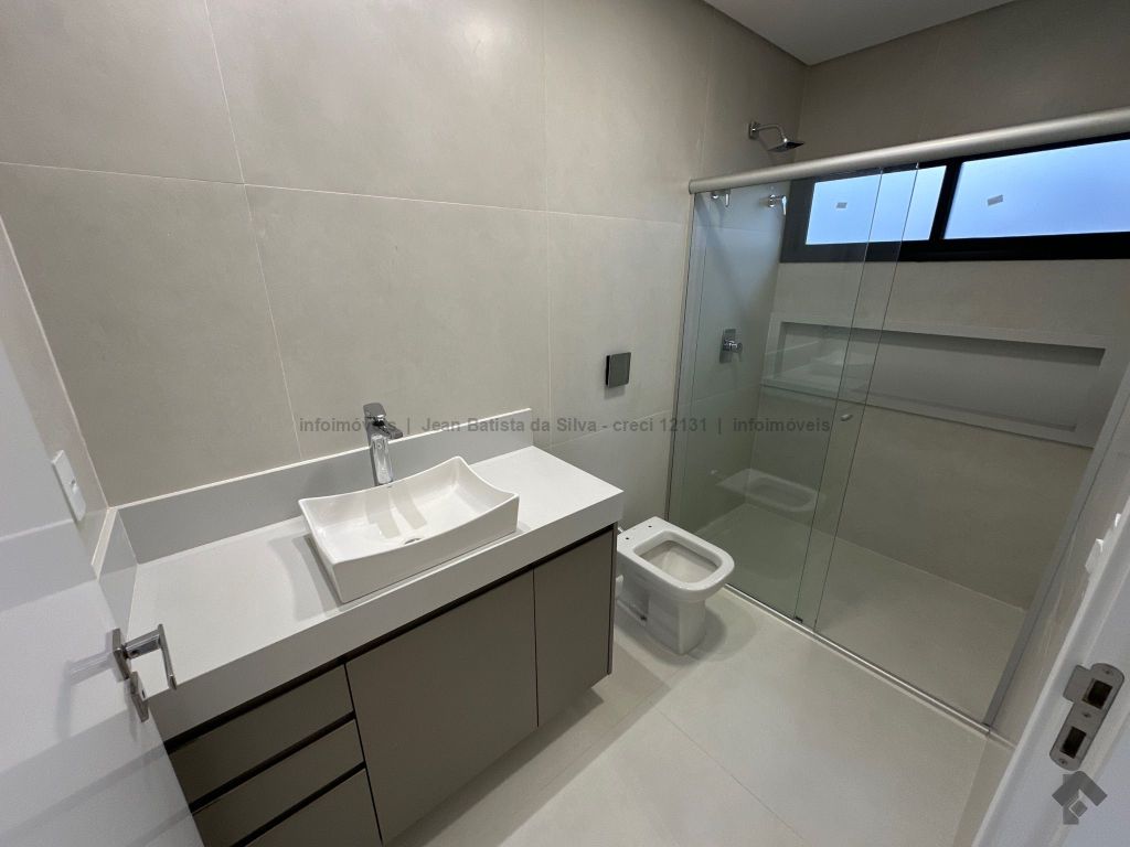 Apresento este maravilhoso sobrado com tudo que há de modernidade em construção, localizado dentro do Alphaville 3, com o mais sofisticado acabamento, imóvel rico em detalhes, composto por garagem para quatro carros ou mais, fechadura digital, sala ampla para três ambientes, uma suíte na parte inferior, cozinha linda rica em planejados e pedras de mármore, uma área gourmet que proporciona integração com a casa, criando a harmonia que você e sua família merecem, possui um lavabo na parte inferior e um banheiro completo para atender à piscina. Na parte superior, são mais três suítes, incluindo uma com closet e hidromassagem, além de um banheiro social completo, todas as janelas com persianas.