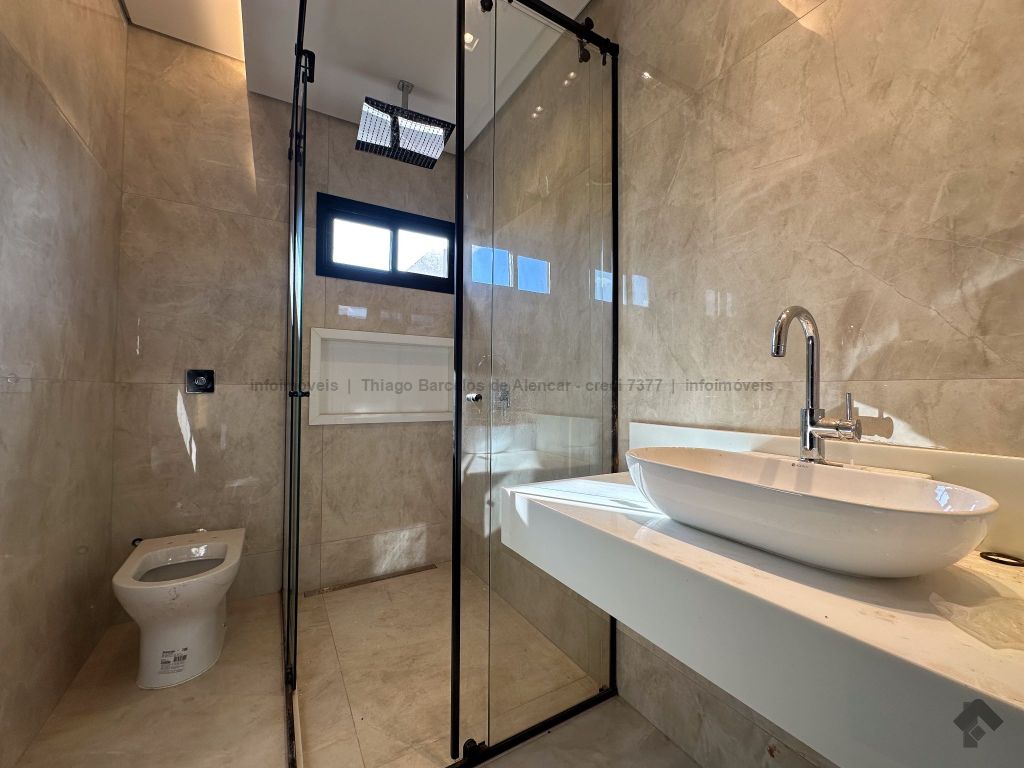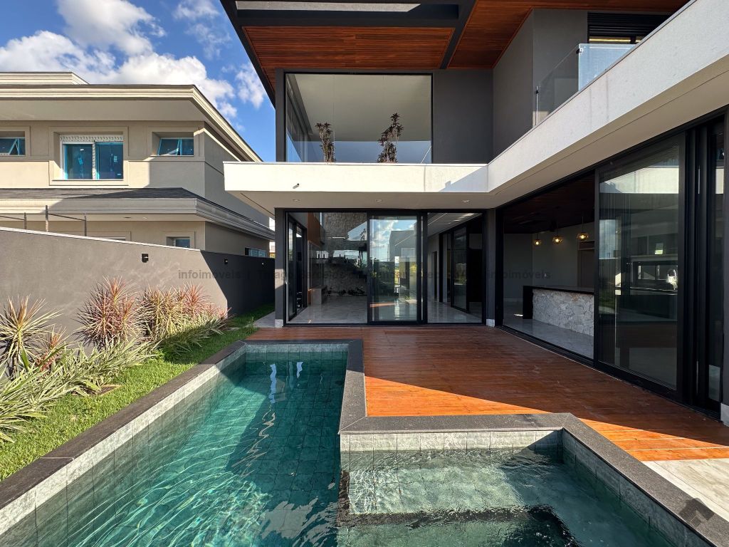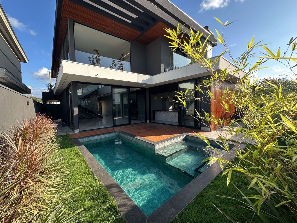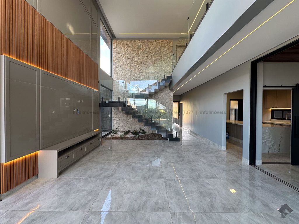 Esta residência deslumbrante é elegante e funcional em cada detalhe. A piscina completa com hidromassagem, iluminação e prainha oferece o refúgio perfeito para momentos inesquecíveis. O imóvel conta com armários planejados, pedras, vidro temperado e paisagismo impecável. No pavimento térreo, escritório (reversível para quarto), banheiro social, sala ampla, cozinha planejada com ilha, lavanderia e área gourmet para receber com estilo. No piso superior, hall elegante leva a três suítes, uma com closet exclusivo. Destaque para o pé-direito duplo, água aquecida e fechadura digital, garantindo conforto e segurança.