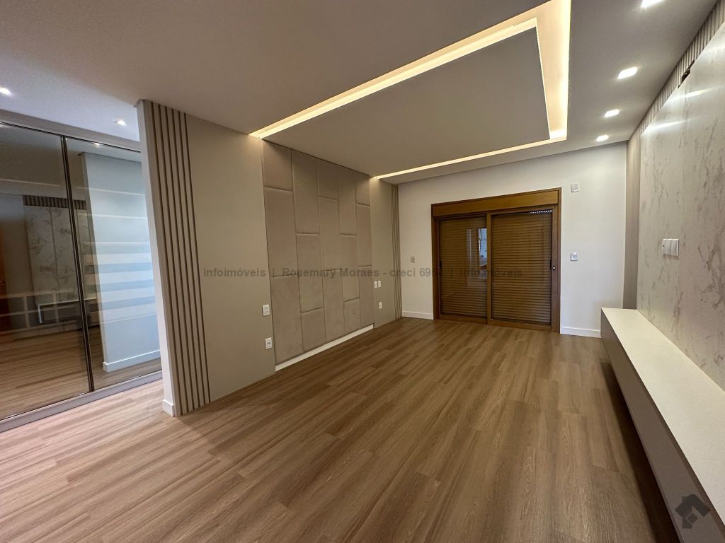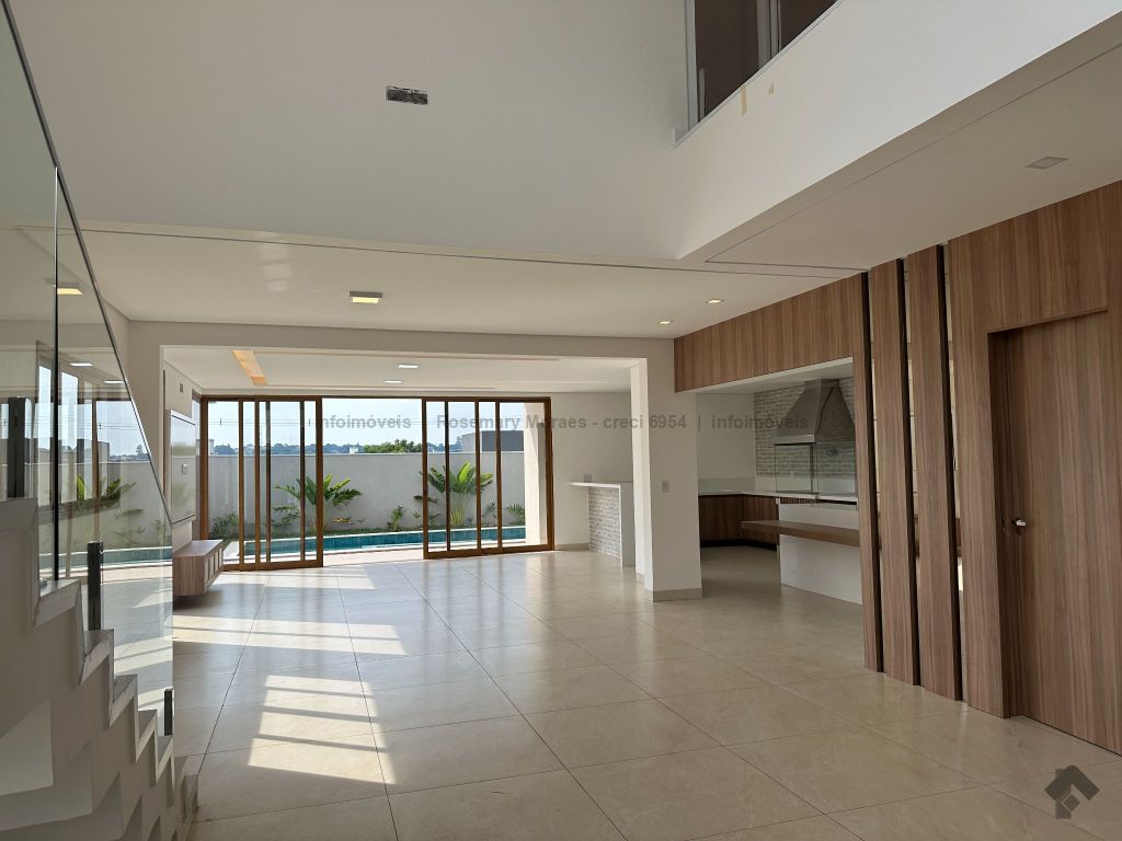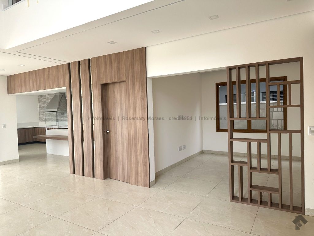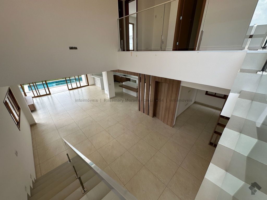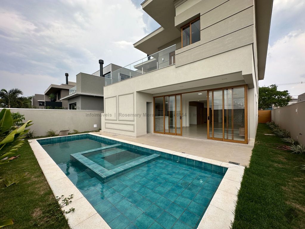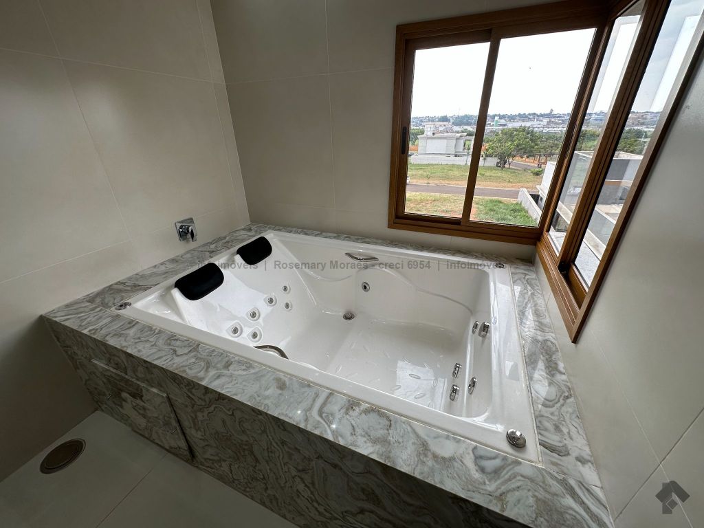 Piso térreo: sala de estar com pé-direito duplo, sala de jantar, sala de TV/home office, 01 suíte, lavabo, cozinha, lavanderia, área gourmet, piscina e banheiro externo. Superior: suíte máster com closet, amplo armário com portas em vidro reflecta bronze, painéis em MDF, rack e cabeceira estofada. Banheira de hidromassagem com aquecedor e linda vista. Móveis planejados na cozinha, área gourmet, lavanderia e em todos os banhos das suítes. Espaço de apoio no andar superior com ponto de água e energia. Persianas automatizadas em todas as suítes. Piscina com hidro, cascata e iluminação em LED. Belíssimo sobrado com design moderno em acabamentos de esquadrias de alumínio, padrão amadeirado.