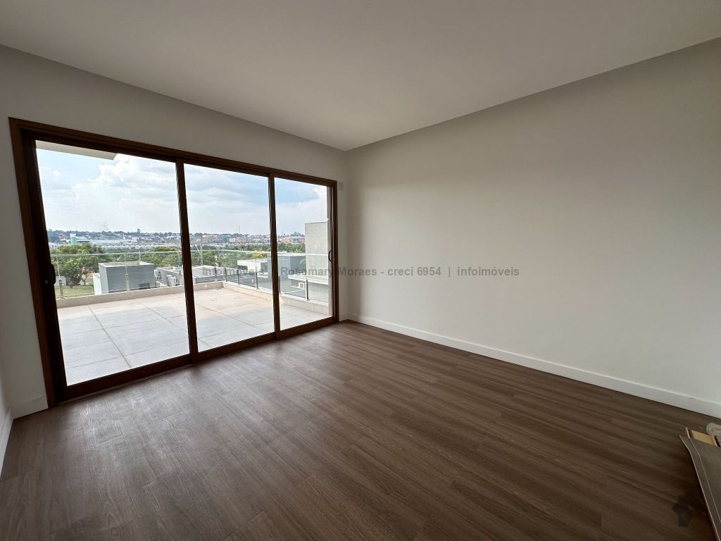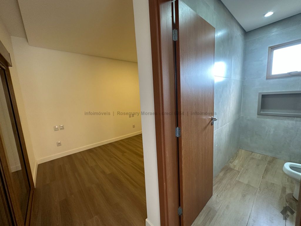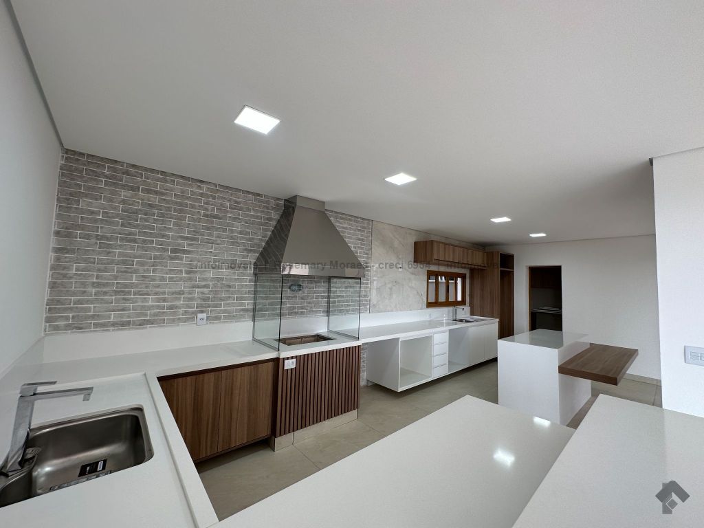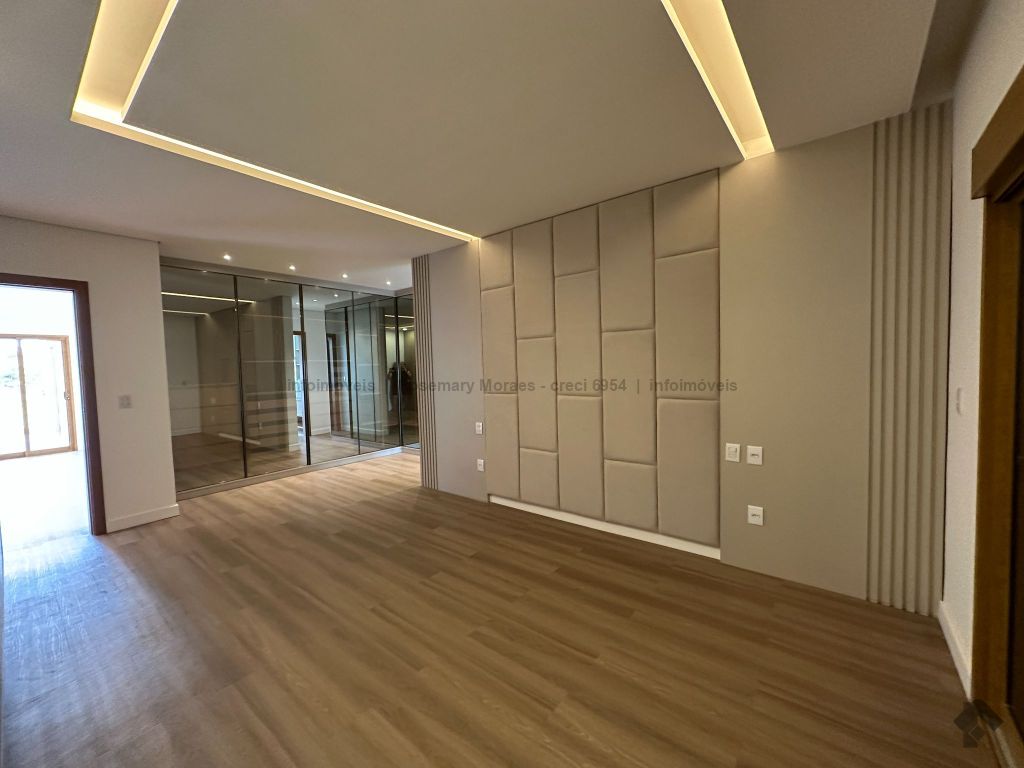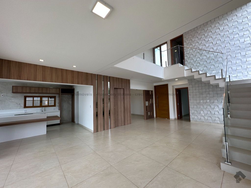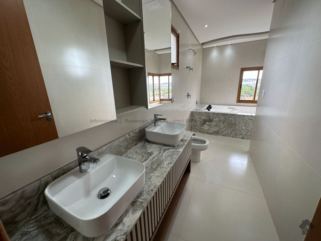Piso térreo: sala de estar com pé-direito duplo, sala de jantar, sala de TV/home office, 01 suíte, lavabo, cozinha, lavanderia, área gourmet, piscina e banheiro externo. Superior: suíte máster com closet, amplo armário com portas em vidro reflecta bronze, painéis em MDF, rack e cabeceira estofada. Banheira de hidromassagem com aquecedor e linda vista. Móveis planejados na cozinha, área gourmet, lavanderia e em todos os banhos das suítes. Espaço de apoio no andar superior com ponto de água e energia. Persianas automatizadas em todas as suítes. Piscina com hidro, cascata e iluminação em LED. Belíssimo sobrado com design moderno em acabamentos de esquadrias de alumínio, padrão amadeirado.