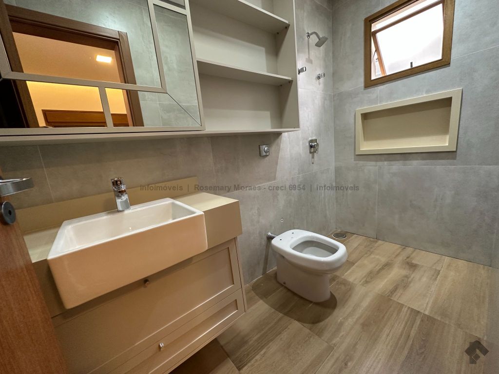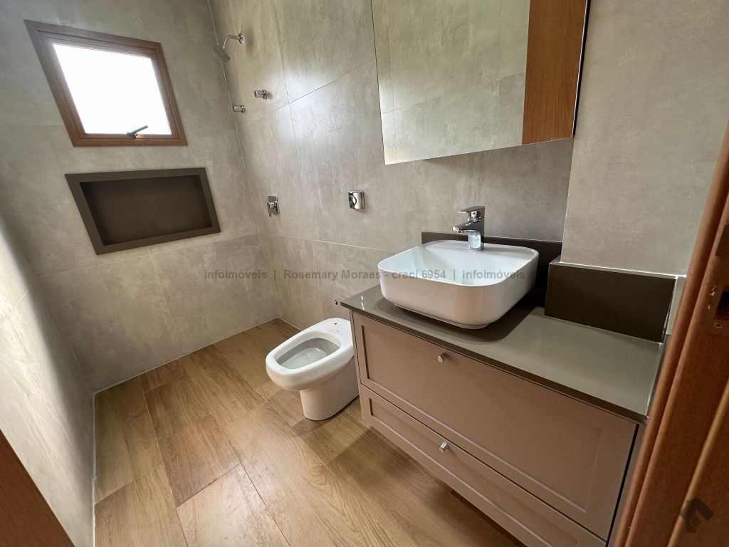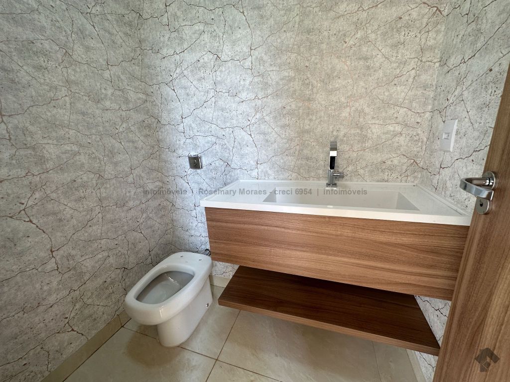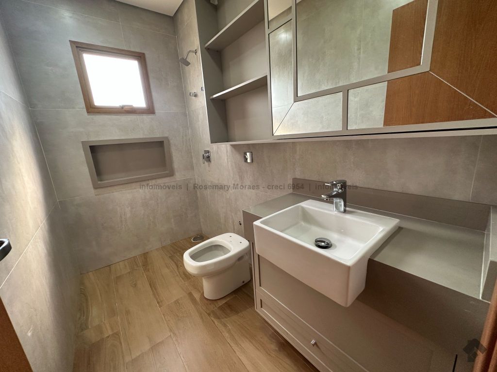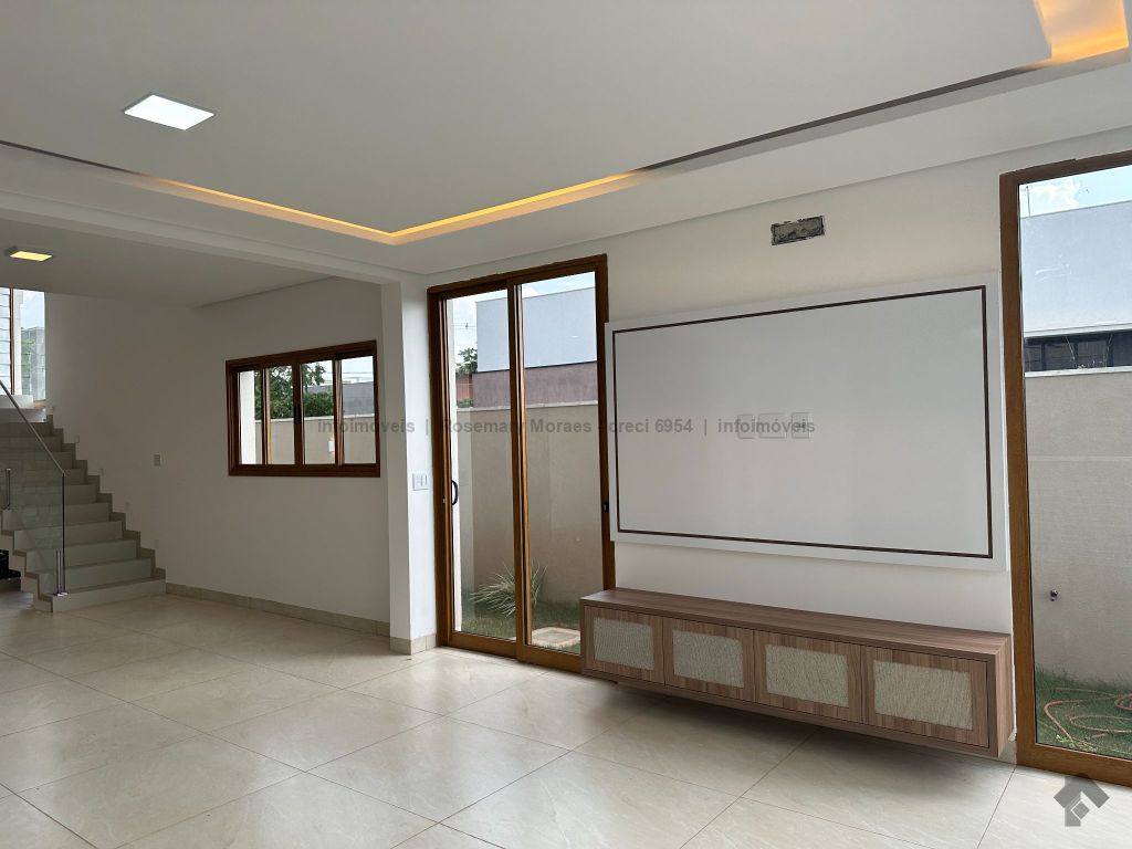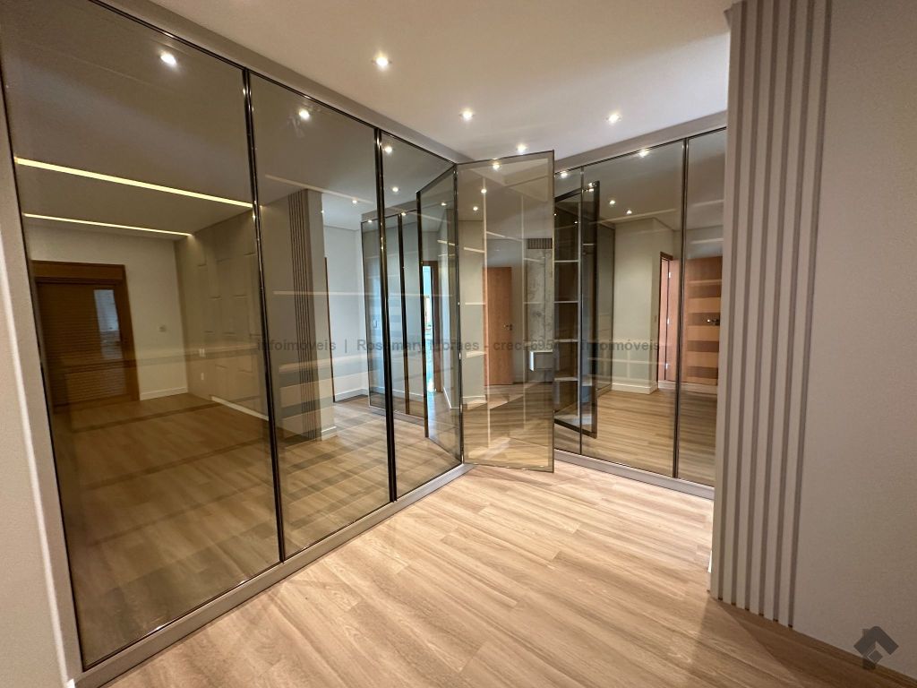 Piso térreo: sala de estar com pé-direito duplo, sala de jantar, sala de TV/home office, 01 suíte, lavabo, cozinha, lavanderia, área gourmet, piscina e banheiro externo. Superior: suíte máster com closet, amplo armário com portas em vidro reflecta bronze, painéis em MDF, rack e cabeceira estofada. Banheira de hidromassagem com aquecedor e linda vista. Móveis planejados na cozinha, área gourmet, lavanderia e em todos os banhos das suítes. Espaço de apoio no andar superior com ponto de água e energia. Persianas automatizadas em todas as suítes. Piscina com hidro, cascata e iluminação em LED. Belíssimo sobrado com design moderno em acabamentos de esquadrias de alumínio, padrão amadeirado.