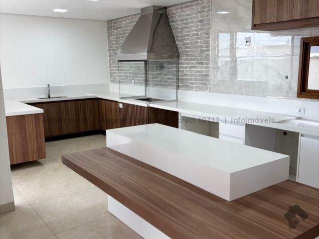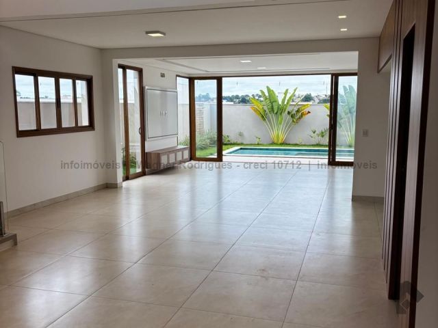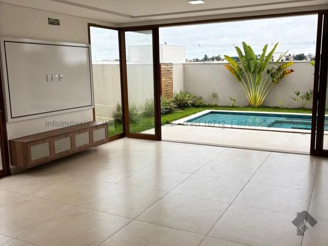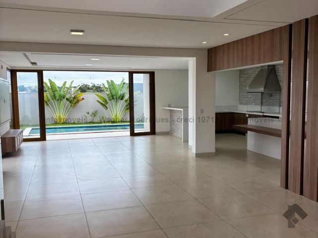 Sala de estar com pé-direito duplo, sala de jantar integrada, sala de TV/home office, 01 suíte, lavabo, cozinha, lavanderia, área gourmet, piscina, banheiro externo, 3 suítes e 1 sala de cinema.