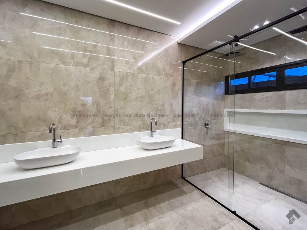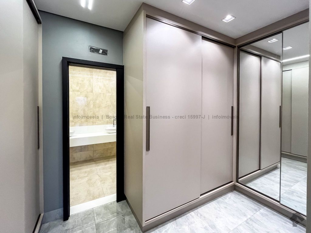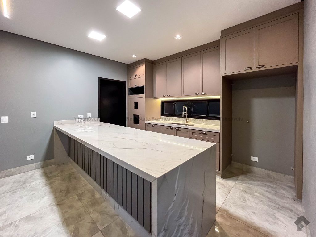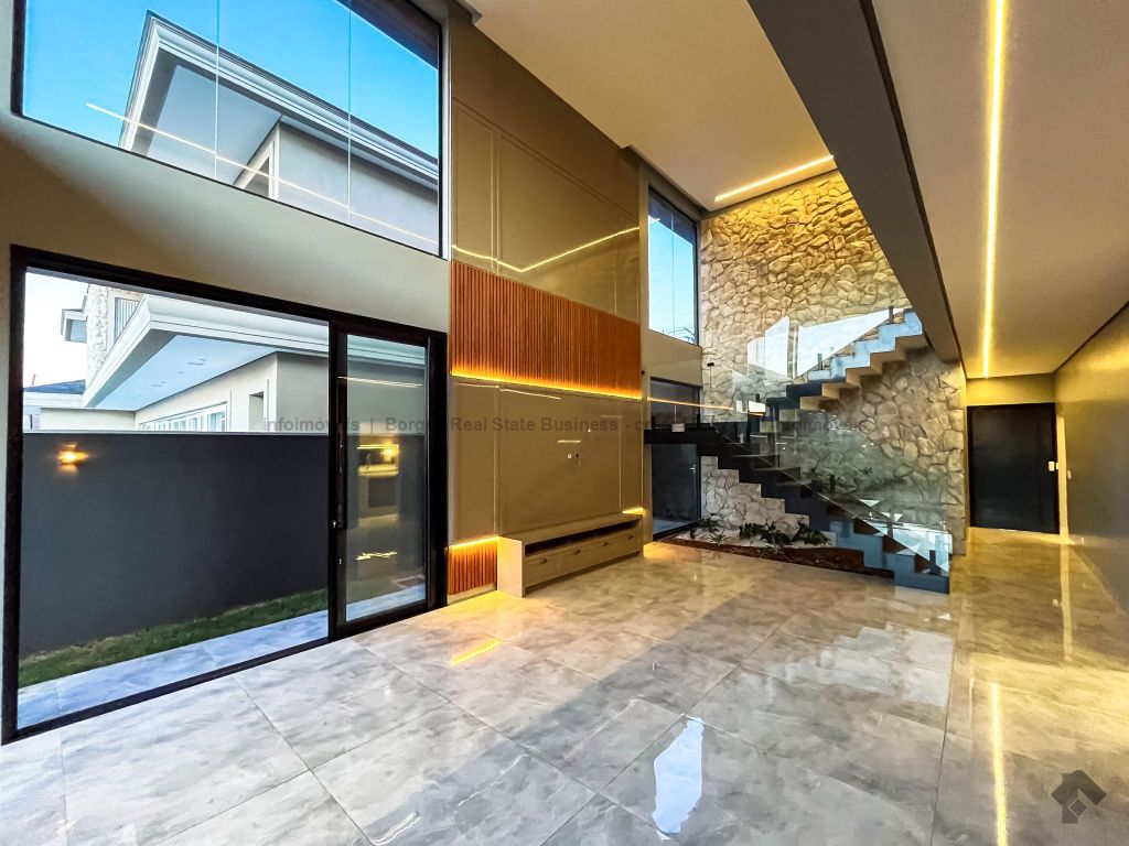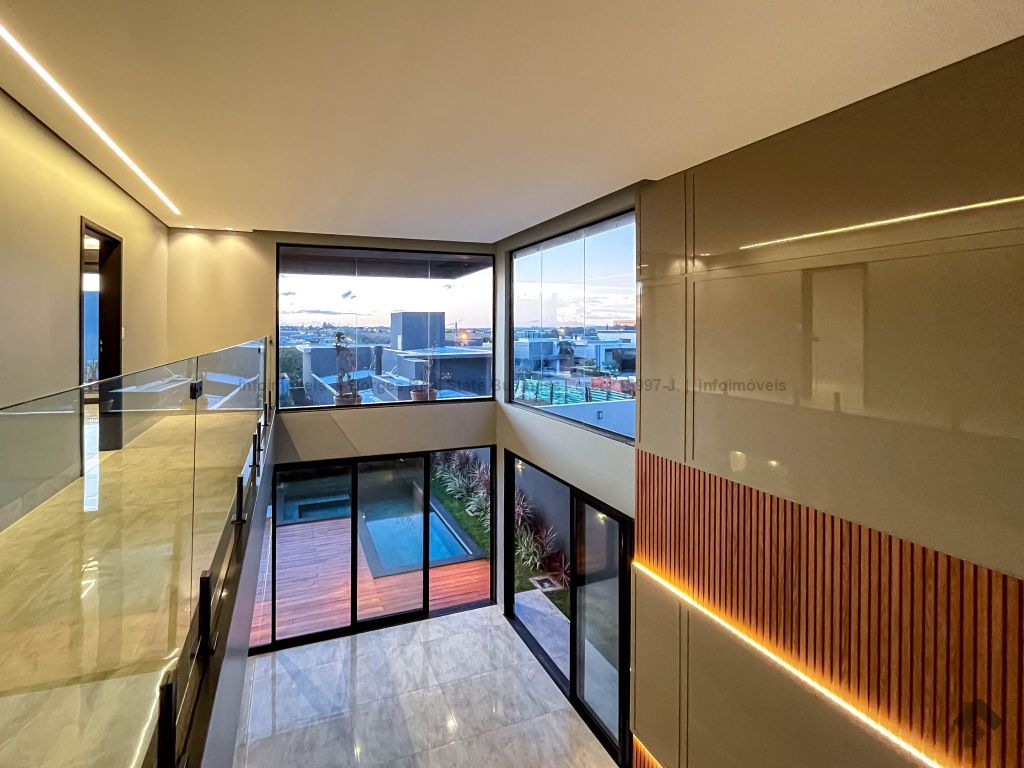 Piso superior: 01 suíte com closet, 02 suítes com armários. Piso inferior: um escritório com banheiro que pode ser utilizado como quarto, sala ampla, cozinha individualizada com armários, espaço gourmet, banheiro, piscina aquecida e iluminada. Sobrado rico em armários, paisagismo, pedras na parede, recebe muita luz natural.