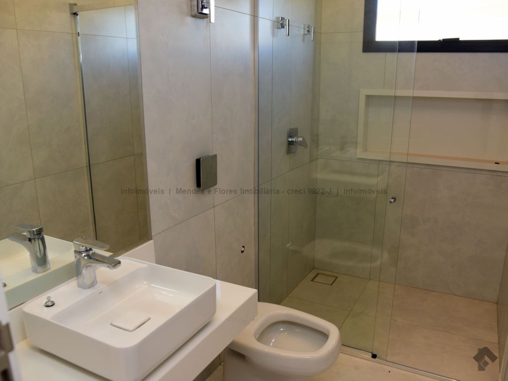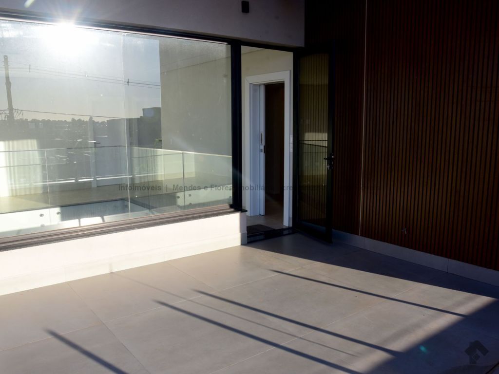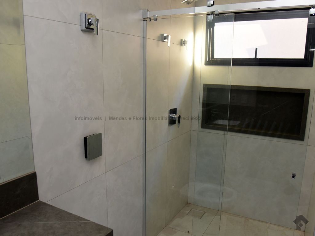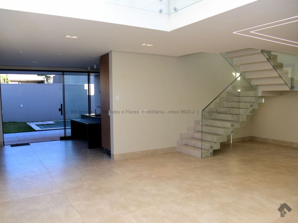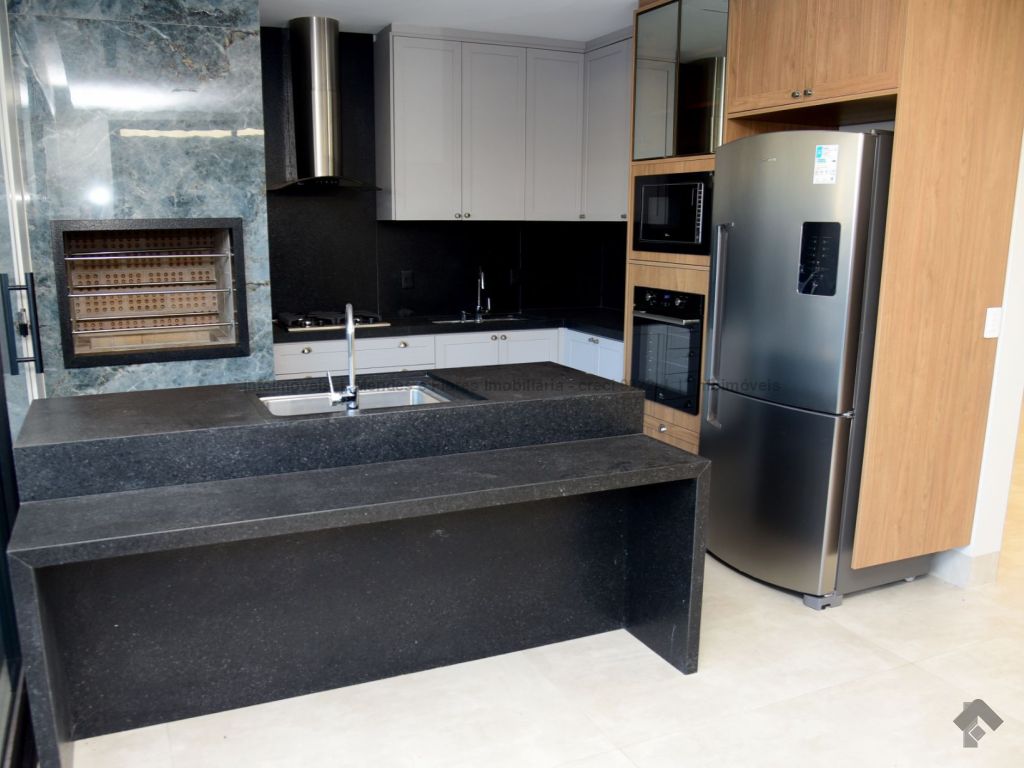 Sobrado novo, acabamento fino, escadas em mármore Michelangelo, torneiras com água quente e fria. Possui sala de jantar, sala de estar, sala de TV, lavabo, cozinha integrada com ilha, churrasqueira, cooktop e armários planejados, 04 suítes, 01 WC social, escritório, área gourmet com piscina aquecida e com tubulação preparada para receber energia solar, 01 WC externo, área de serviço, despensa, WC de serviço, 02 vagas de garagem cobertas.
