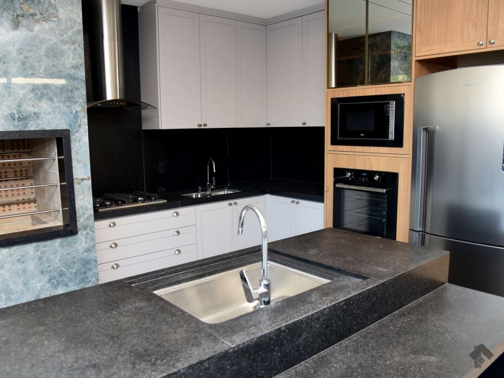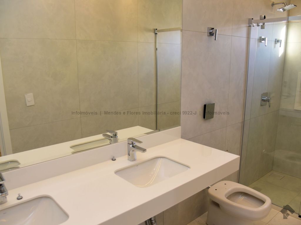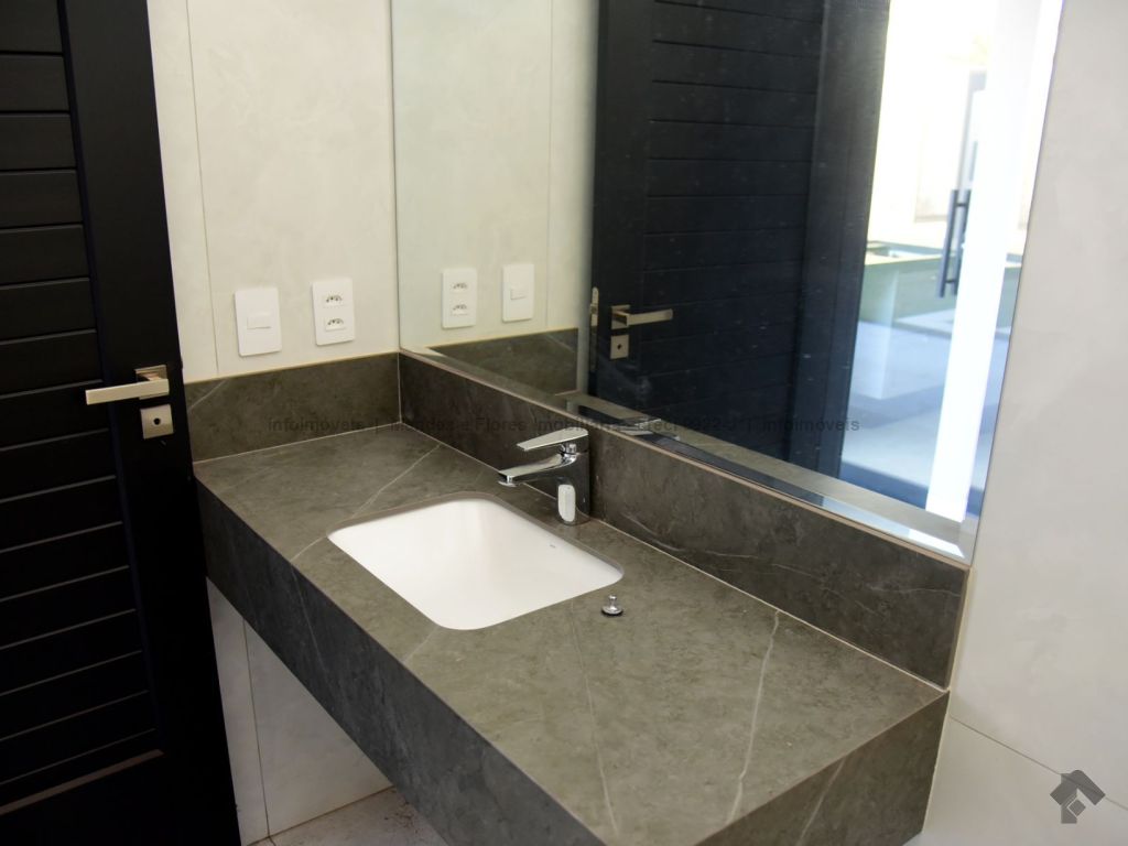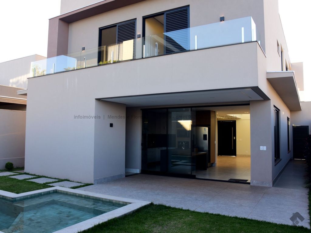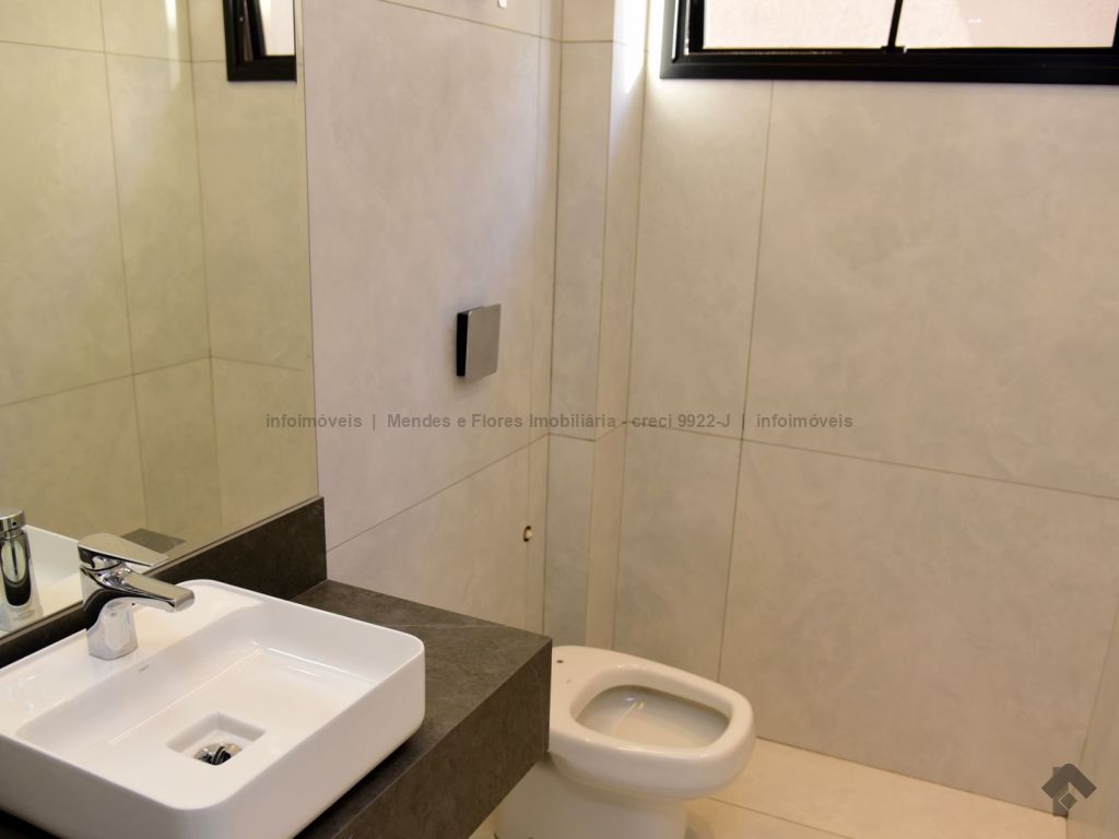 Sobrado novo, acabamento fino, escadas em mármore Michelangelo, torneiras com água quente e fria. Possui sala de jantar, sala de estar, sala de TV, lavabo, cozinha integrada com ilha, churrasqueira, cooktop e armários planejados, 04 suítes, 01 WC social, escritório, área gourmet com piscina aquecida e com tubulação preparada para receber energia solar, 01 WC externo, área de serviço, despensa, WC de serviço, 02 vagas de garagem cobertas.