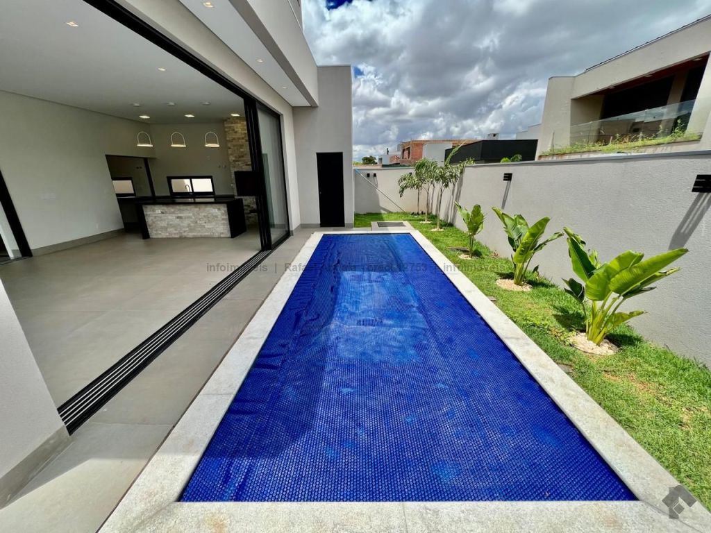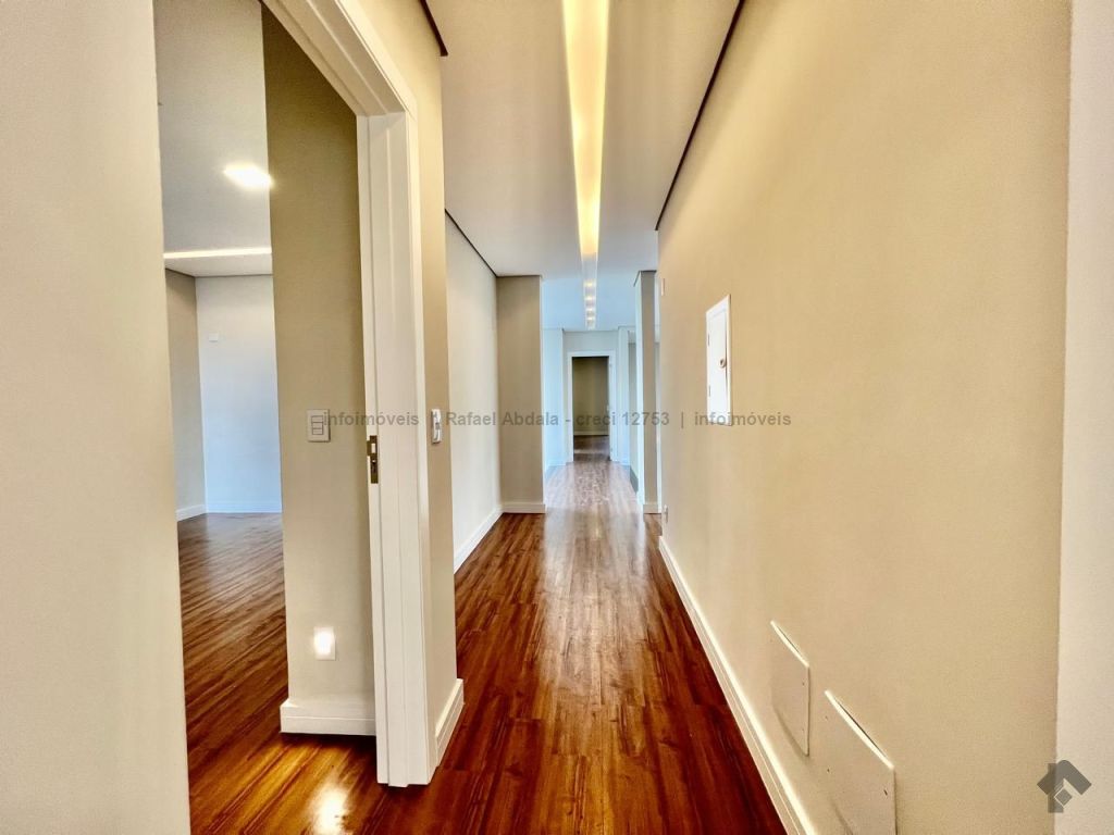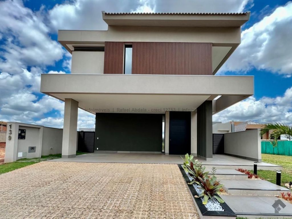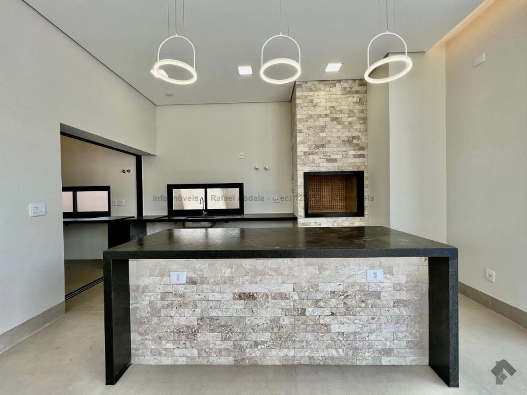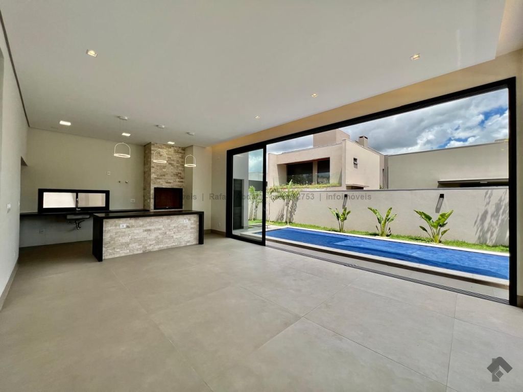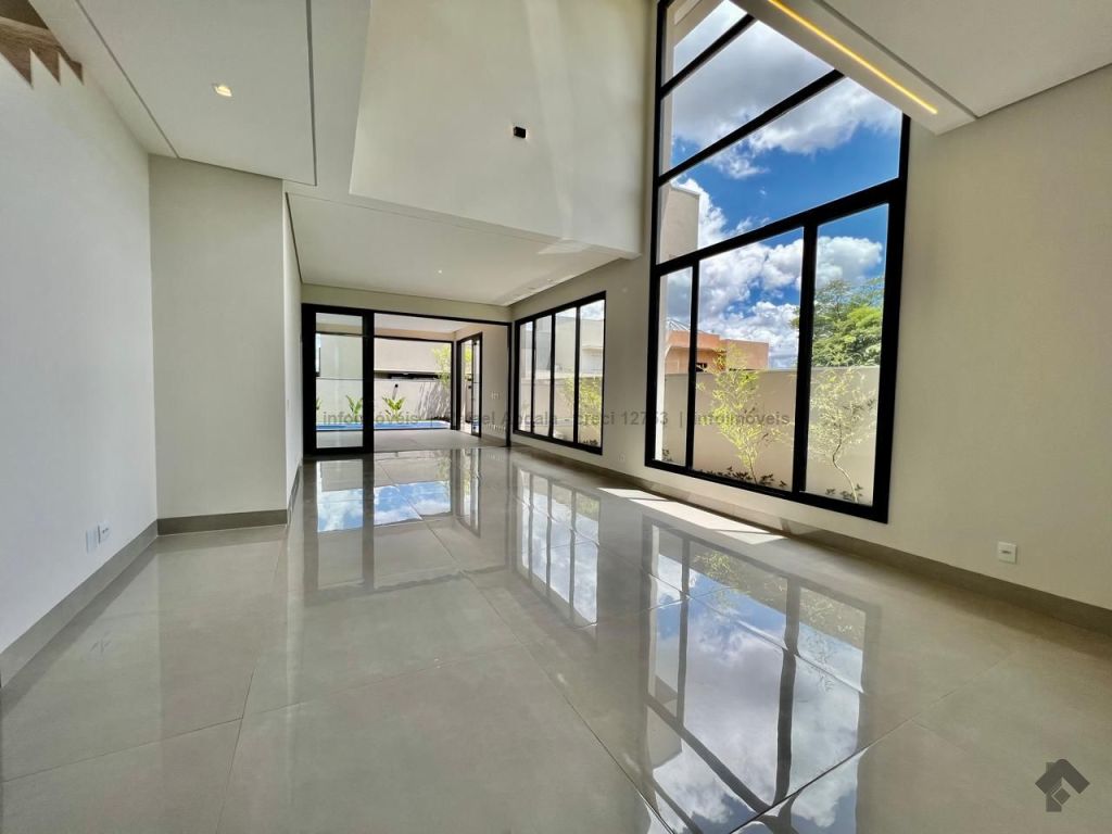 Garagem coberta para 2 carros e descoberta para mais 2 carros, hall de entrada, lavabo, sala para 2 ambientes com pé direito duplo, escada em mármore travertino com guarda-corpo em vidro, cozinha separada, ampla área gourmet, lavabo externo, lavanderia, despensa, depósito, piscina aquecida com hidro. Todas as suítes com persianas automatizadas. Boiler de aquecimento de água com 600 litros. Piso Portinari 1,20 x 1,20 m. Preparação na área gourmet para ar condicionado K7.