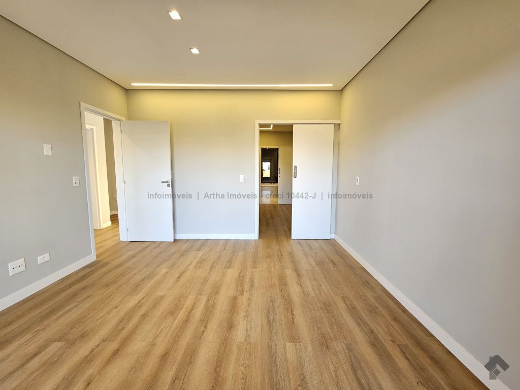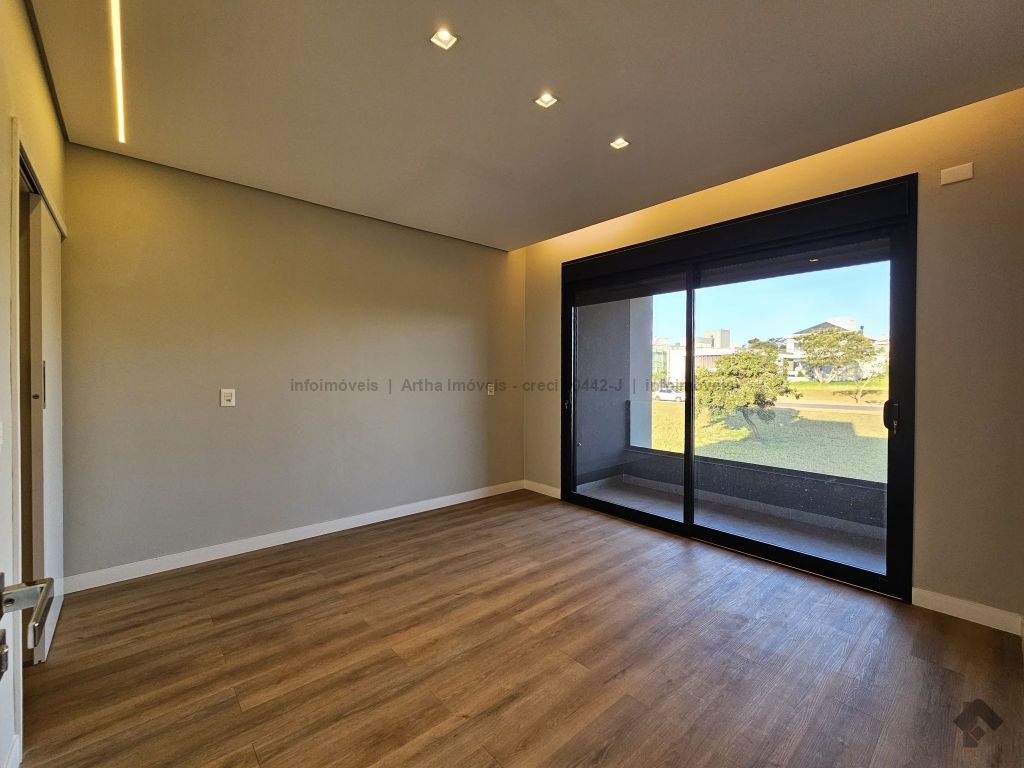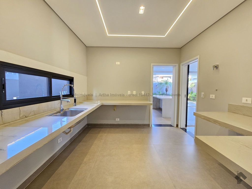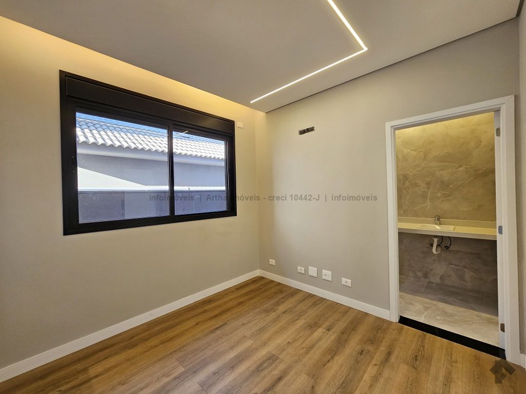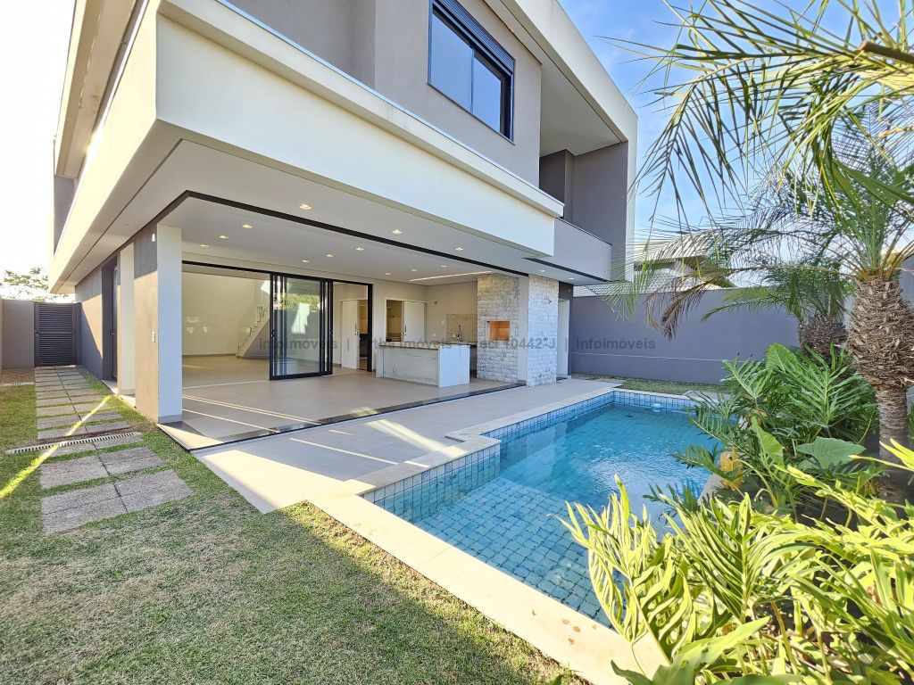 Sobrado no condomínio Alphaville III, localiza-se em área centralizada dentro do condomínio. Piso térreo: sala em dois ambientes com pé direito alto, lavabo, suíte ou sala de TV ou escritório com banheiro, cozinha gourmet, piscina (será entregue aquecida), W.C. no lazer, lavanderia, depósito pequeno, garagem coberta para 2 carros. No piso superior possui: minicopa, espaço para roupeiro, 2 suítes, 1 suíte master com sacada, amplo closet, banheiro muito espaçoso com 2 chuveiros, 2 pias, hidromassagem e jardim de inverno. Diferenciais: aquecimento solar da água, preparação para instalação de energia fotovoltaica, porta de entrada de tamanho especial e pivotante, fechadura digital, persianas automatizadas, muita iluminação natural, paisagismo, projeto de iluminação, preparação para instalação de ar condicionado.