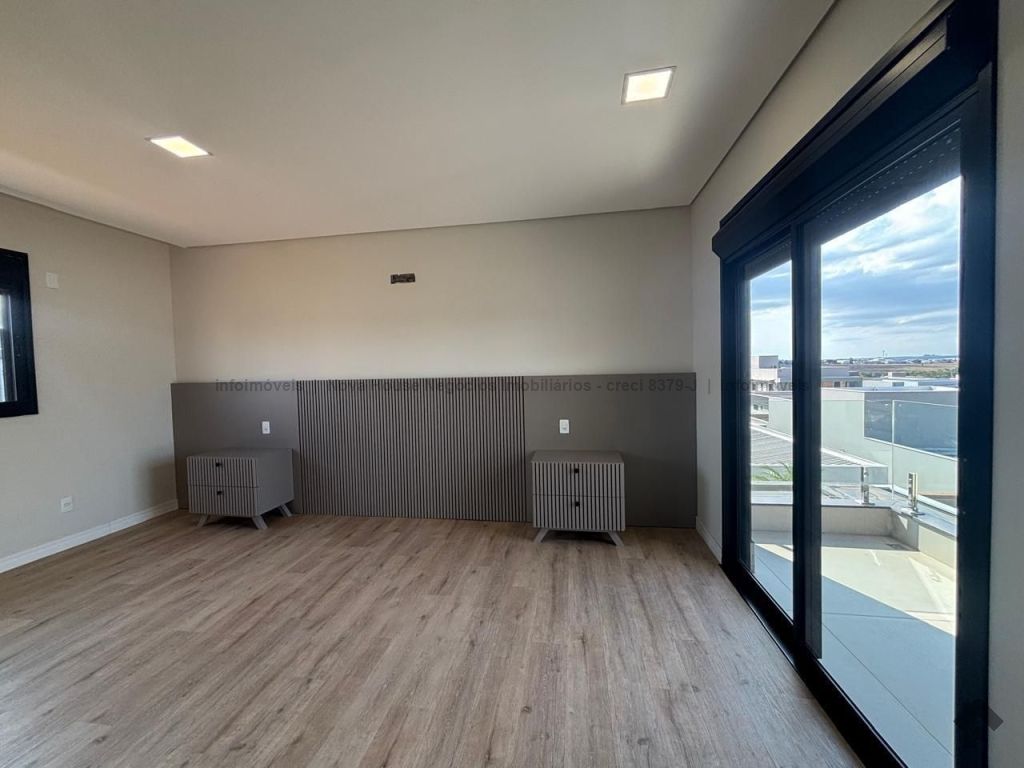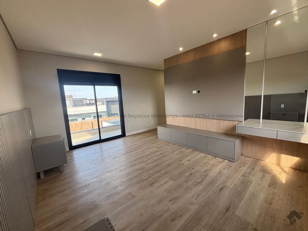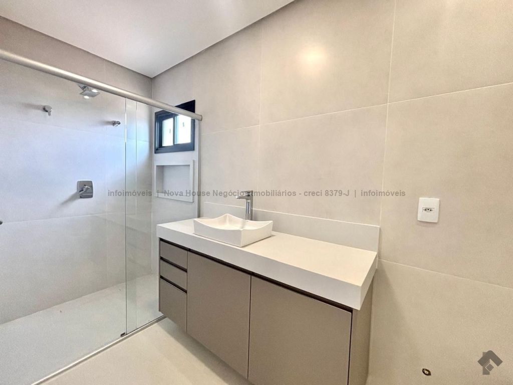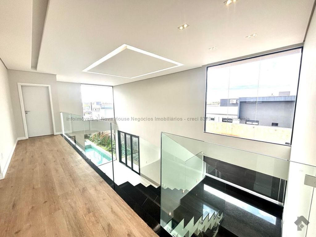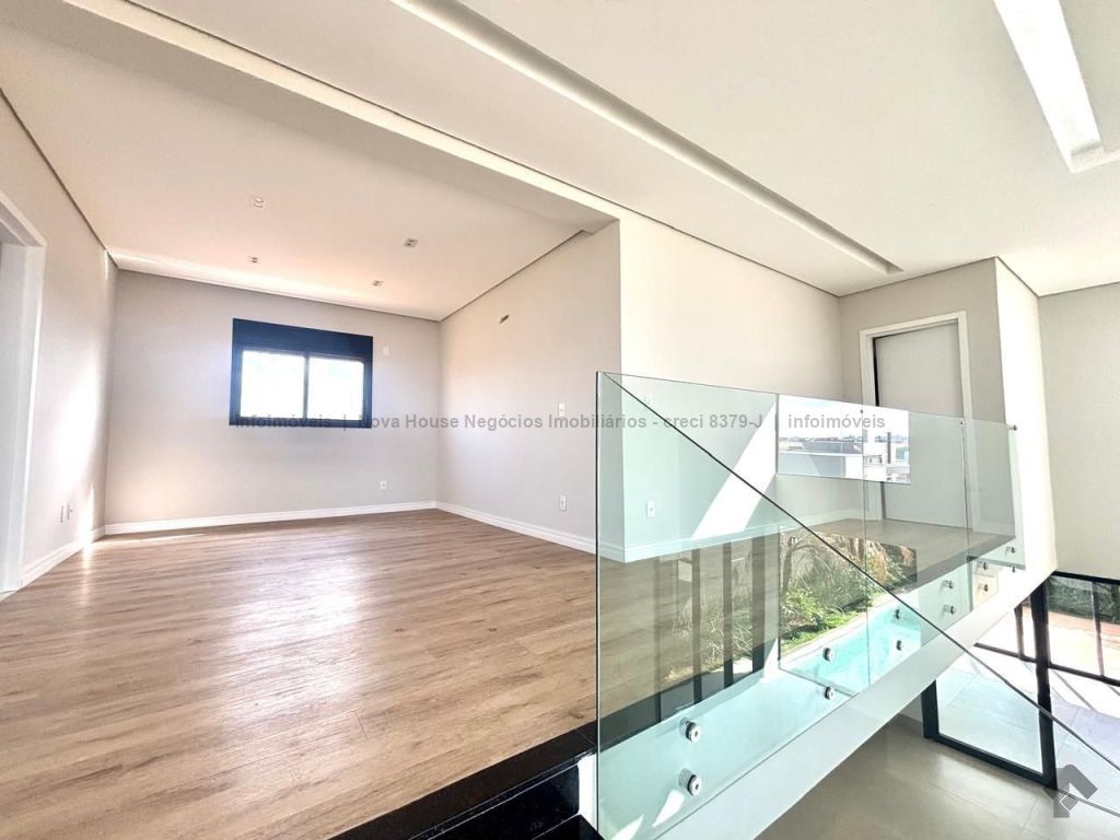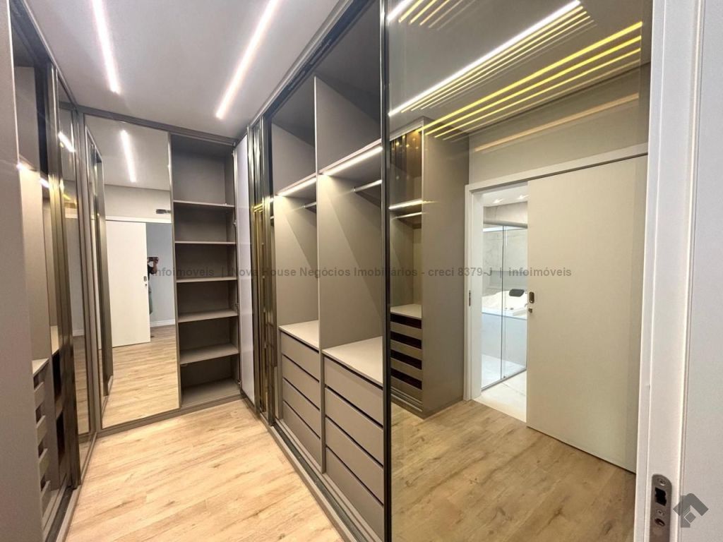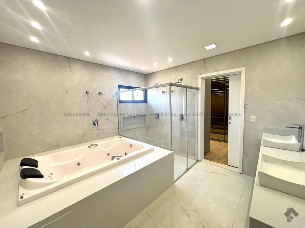 Espetacular sobrado na seguinte composição, piso superior: uma suíte máster com closet com armários, sacada e banheira, duas suítes, armário no corredor e sala de estar. Piso térreo: uma suíte, lavabo, sala com pé direito duplo, espaço gourmet todo planejado, cozinha com armários, lavanderia planejada, depósito, banheiro da piscina e piscina com aquecedor solar e cascata. Energia solar.