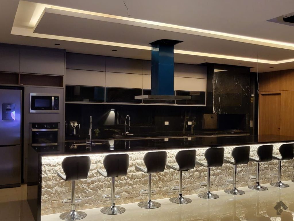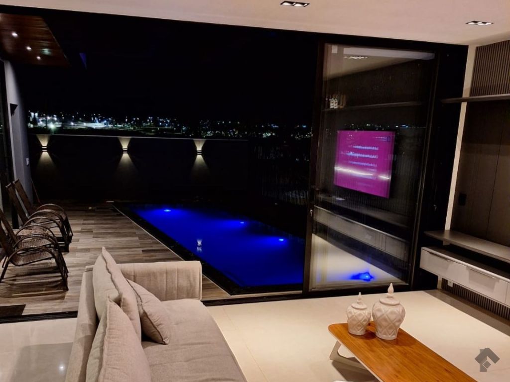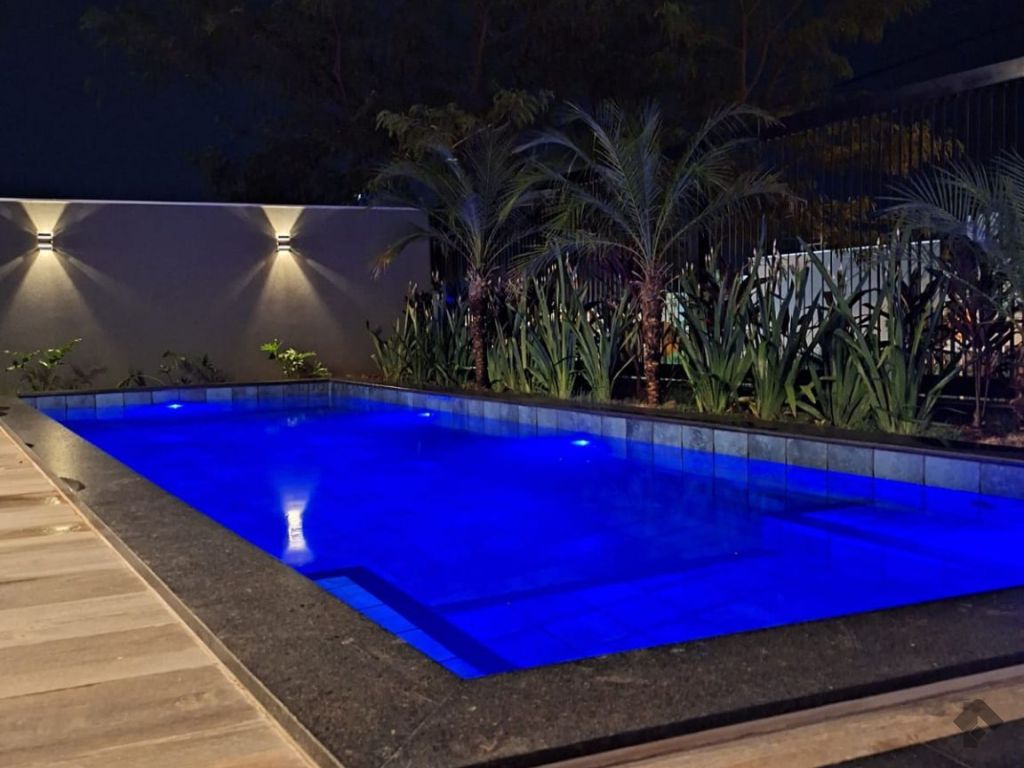 Água, asfalto, calçada, esgoto, rede elétrica. Sala de jantar, sala de TV, 4 suítes com armários e sacada, 4 vagas de garagem, churrasqueira, cozinha planejada, despensa, banheira com hidromassagem na suíte master, hidromassagem na piscina, lavabo, lavanderia, piscina aquecida. Tem elevador. Garagem para até 4 carros grandes, sendo 2 cobertos. Piscina aquecida com hidromassagem e cascata. Móveis planejados, todos os ambientes com ar-condicionado. Imóvel com produção de energia fotovoltaica, produzindo em média 1.100 kWh.