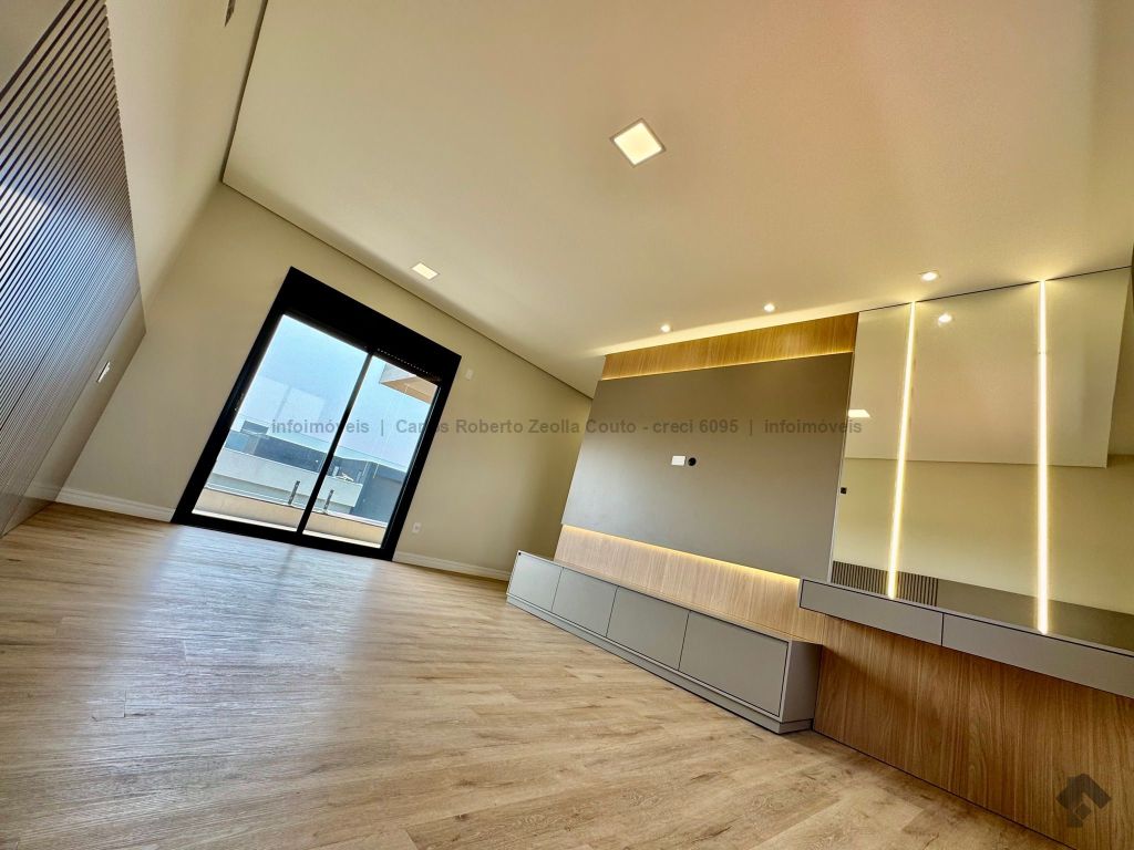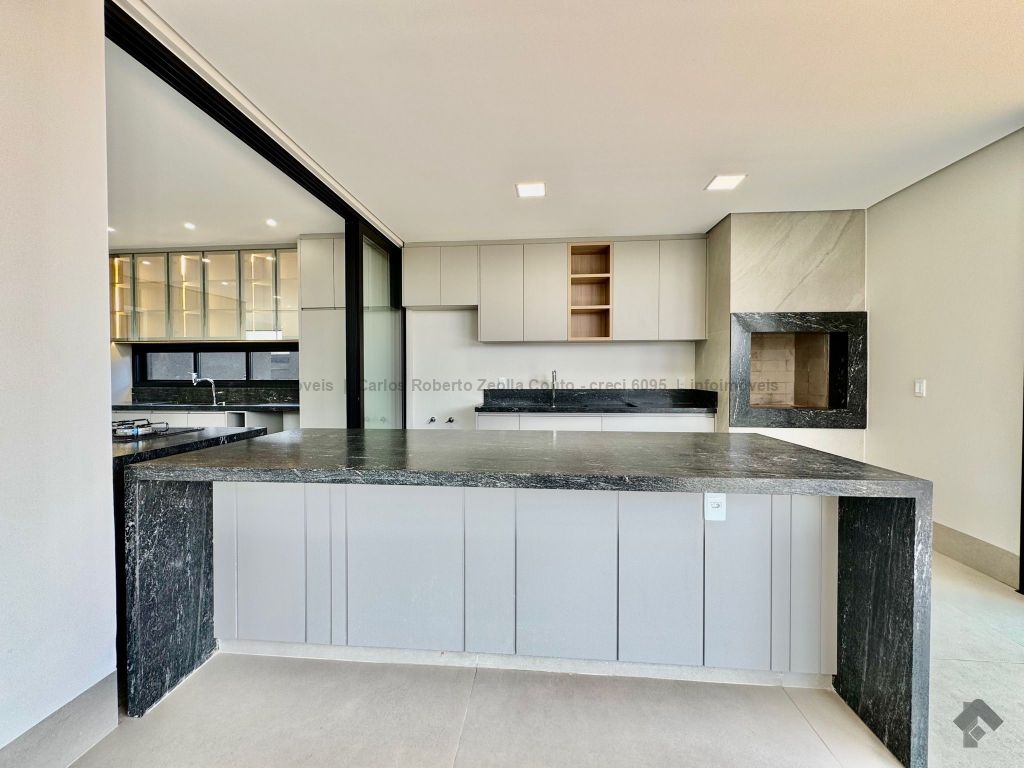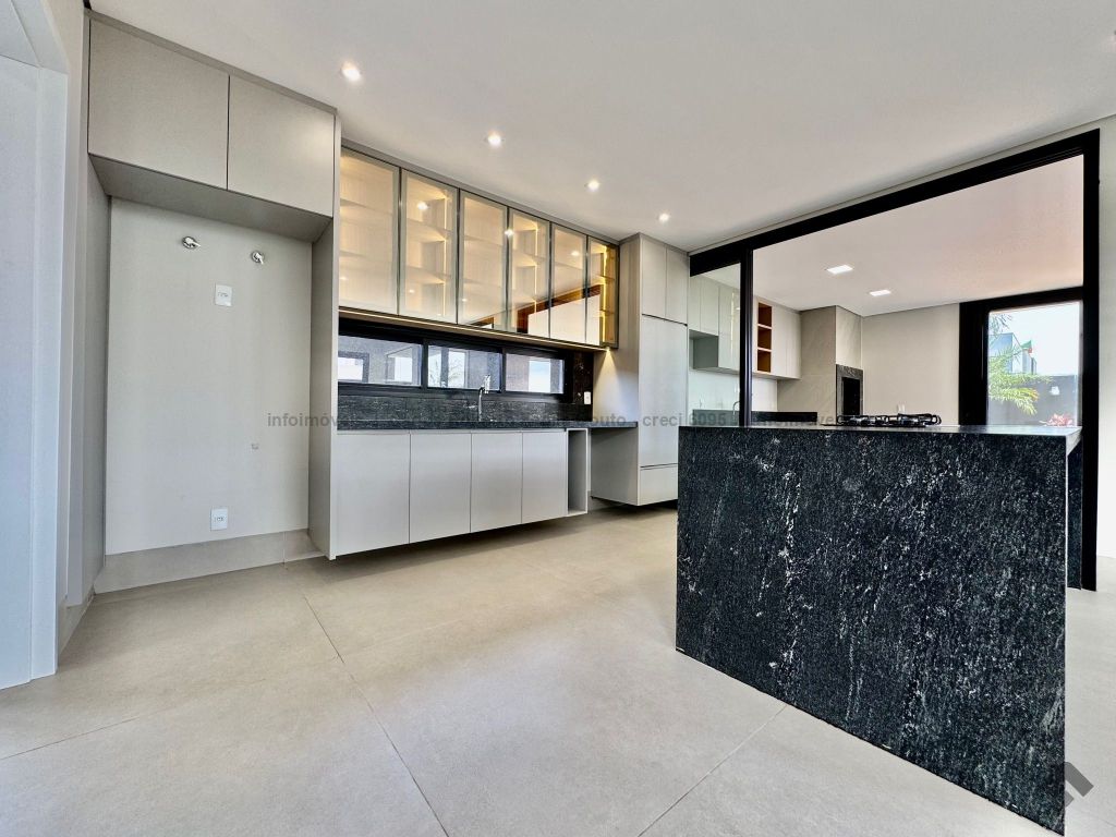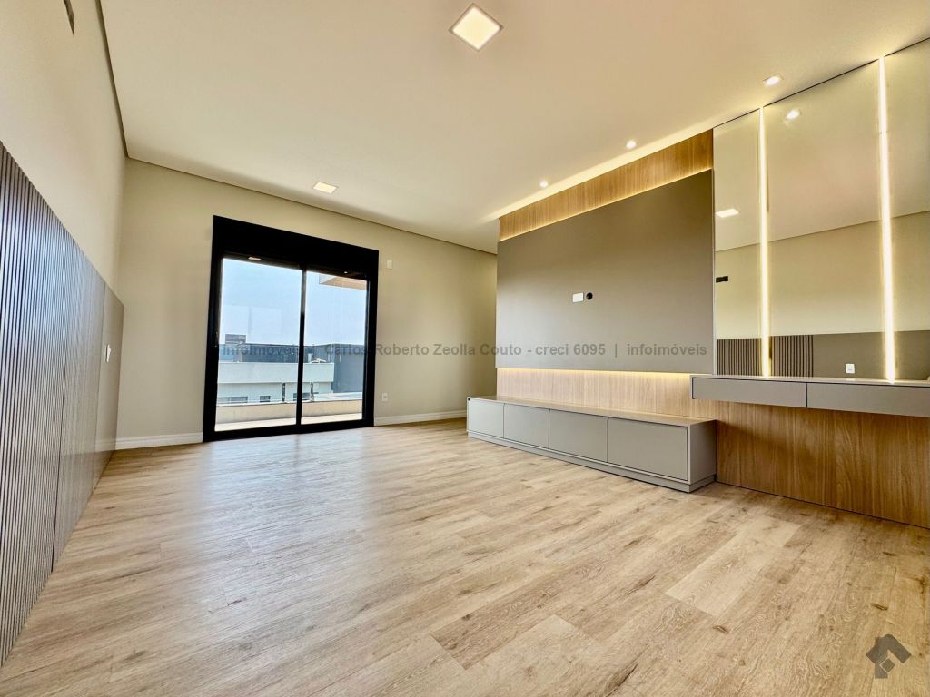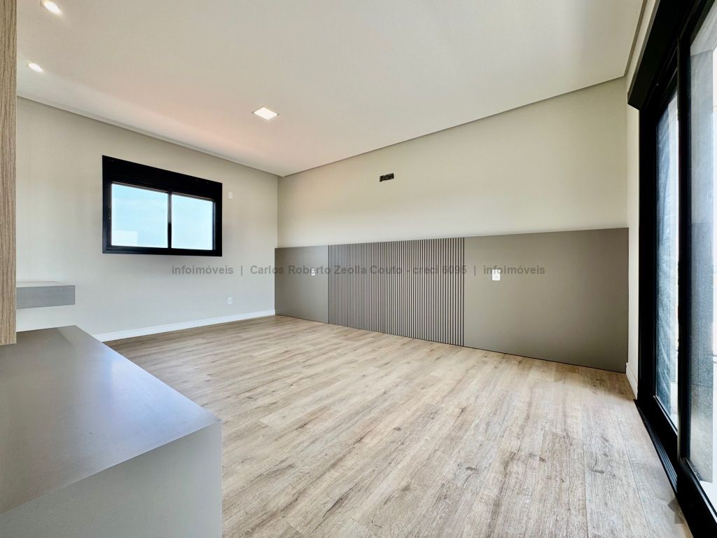 1 suíte master com closet e banheira, 3 suítes no 2º andar, 1 suíte no térreo, lavabo, sala com pé direito duplo, espaço gourmet, cozinha, lavanderia, depósito, banheiro da piscina, energia solar fotovoltaica e piscina com aquecimento solar.