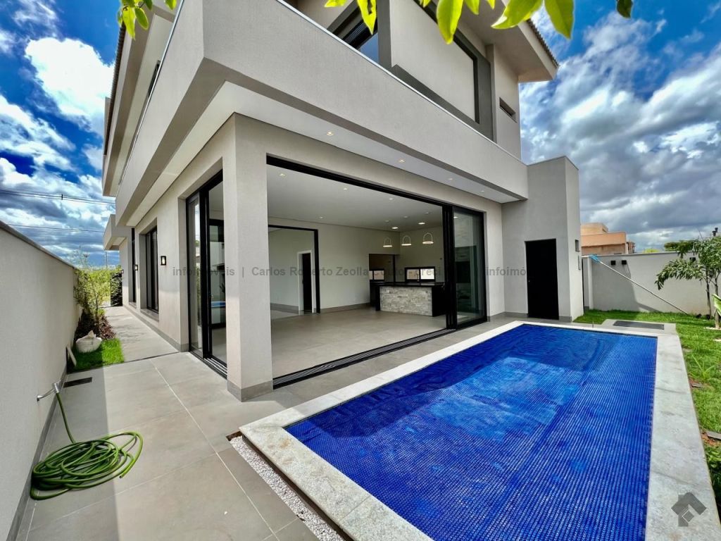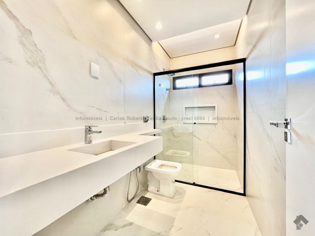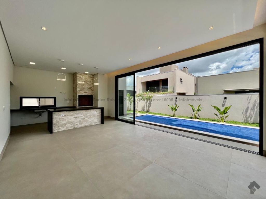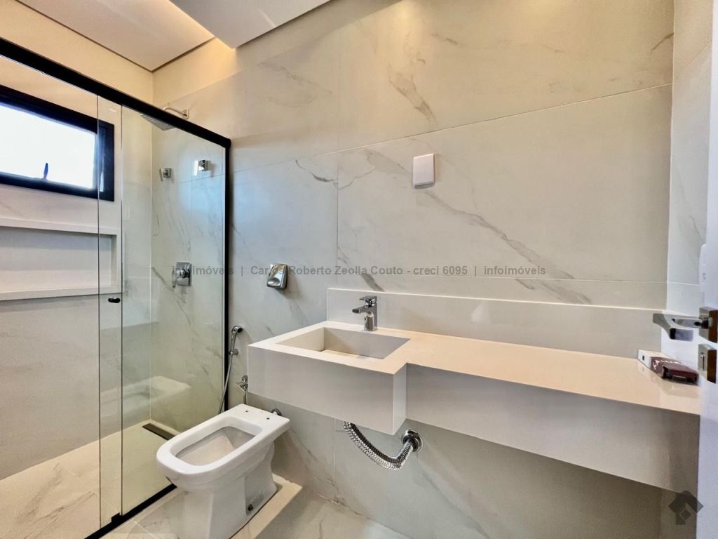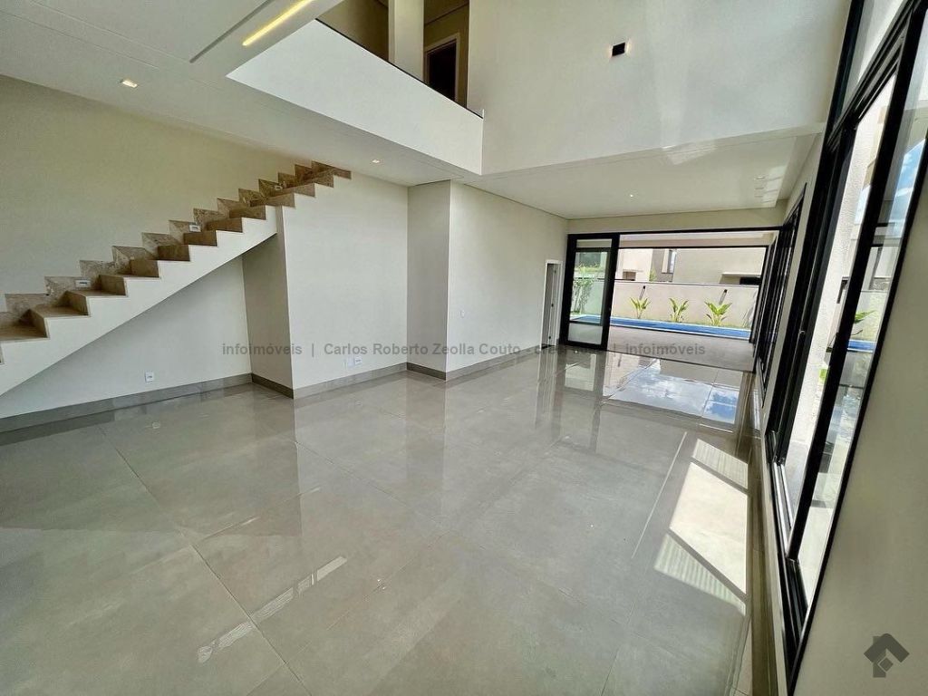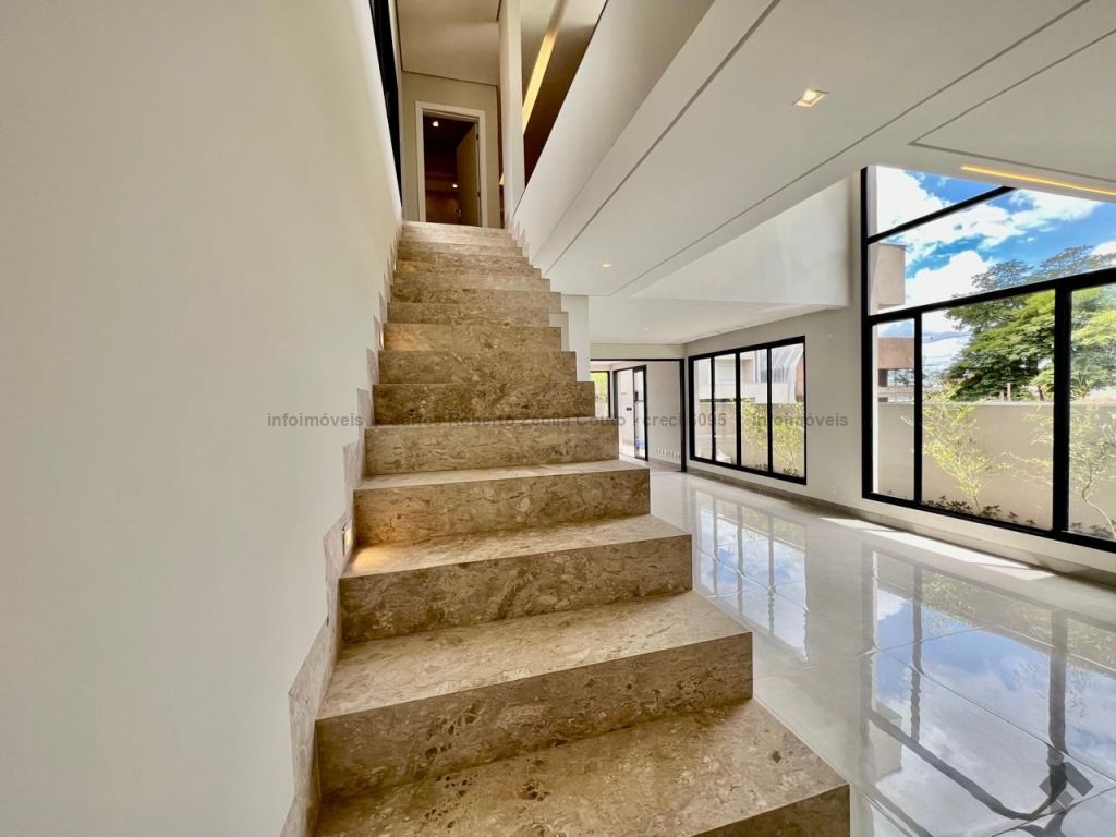 Pavimento térreo: garagem coberta para 2 carros e descoberta para mais 2 carros, hall de entrada, lavabo, sala para 2 ambientes com pé direito duplo, escada em mármore travertino com guarda-corpo em vidro, cozinha separada, ampla área gourmet, lavabo externo, lavanderia, despensa, depósito, piscina aquecida com hidro. Pavimento superior: 3 suítes, 1 suíte master com amplo closet.