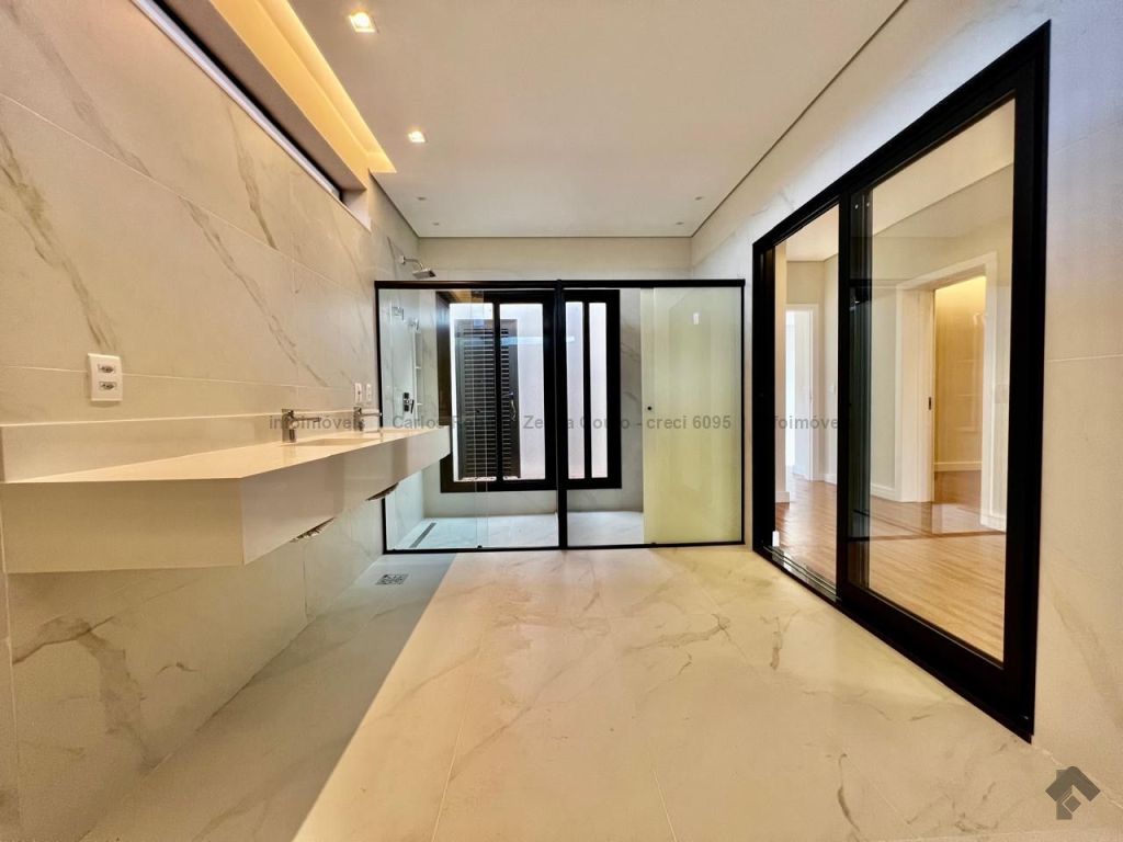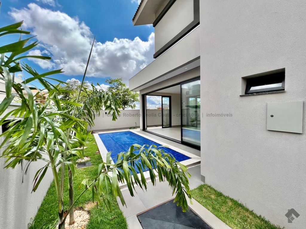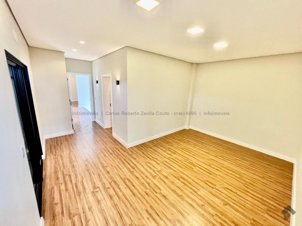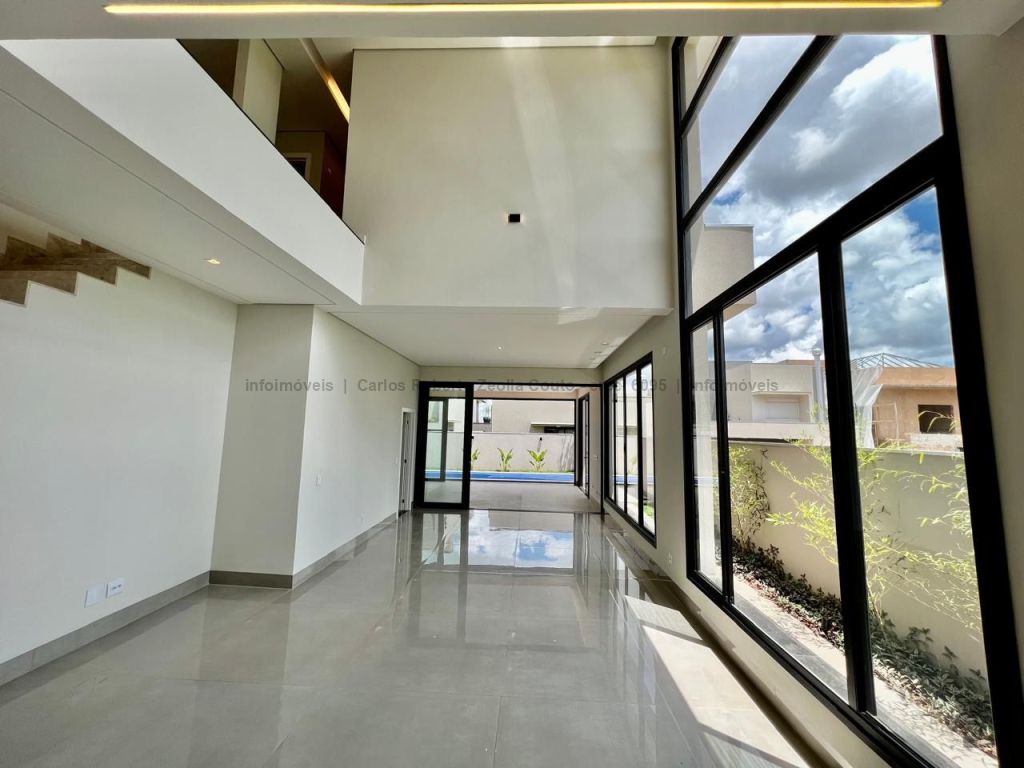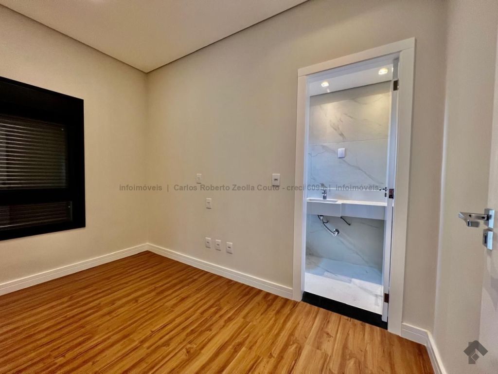 Pavimento térreo: garagem coberta para 2 carros e descoberta para mais 2 carros, hall de entrada, lavabo, sala para 2 ambientes com pé direito duplo, escada em mármore travertino com guarda-corpo em vidro, cozinha separada, ampla área gourmet, lavabo externo, lavanderia, despensa, depósito, piscina aquecida com hidro. Pavimento superior: 3 suítes, 1 suíte master com amplo closet.