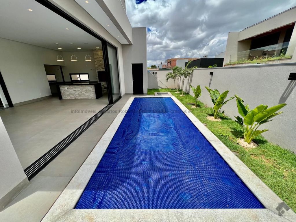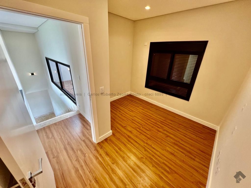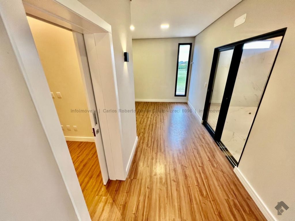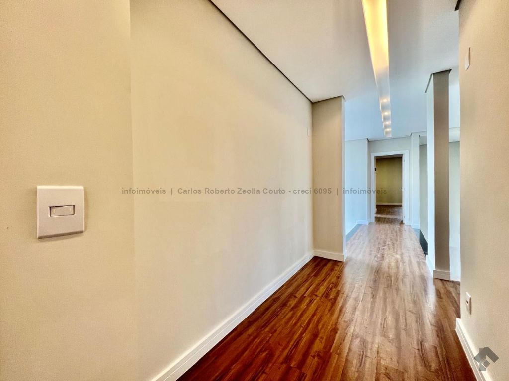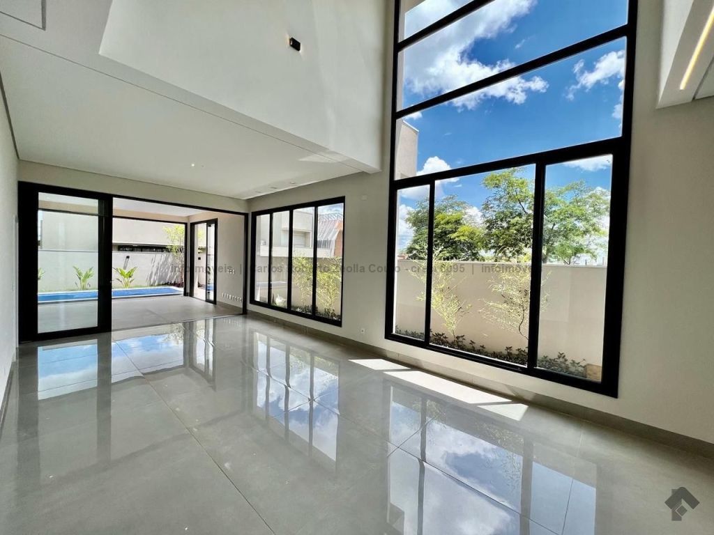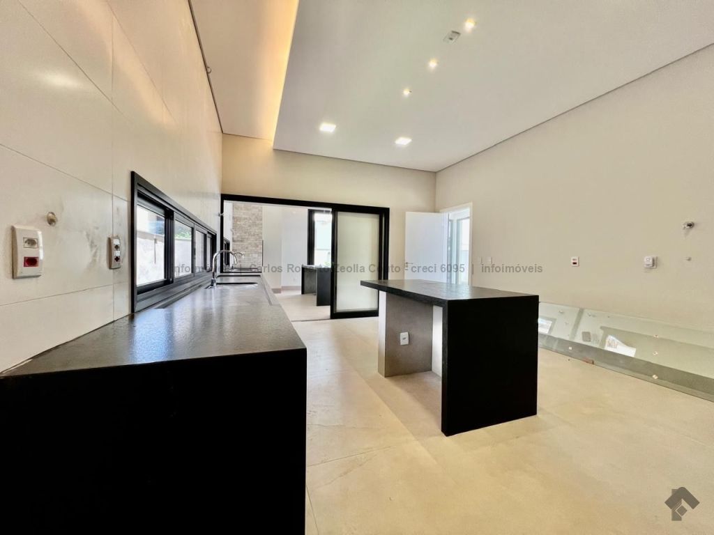 Pavimento térreo: garagem coberta para 2 carros e descoberta para mais 2 carros, hall de entrada, lavabo, sala para 2 ambientes com pé direito duplo, escada em mármore travertino com guarda-corpo em vidro, cozinha separada, ampla área gourmet, lavabo externo, lavanderia, despensa, depósito, piscina aquecida com hidro. Pavimento superior: 3 suítes, 1 suíte master com amplo closet.