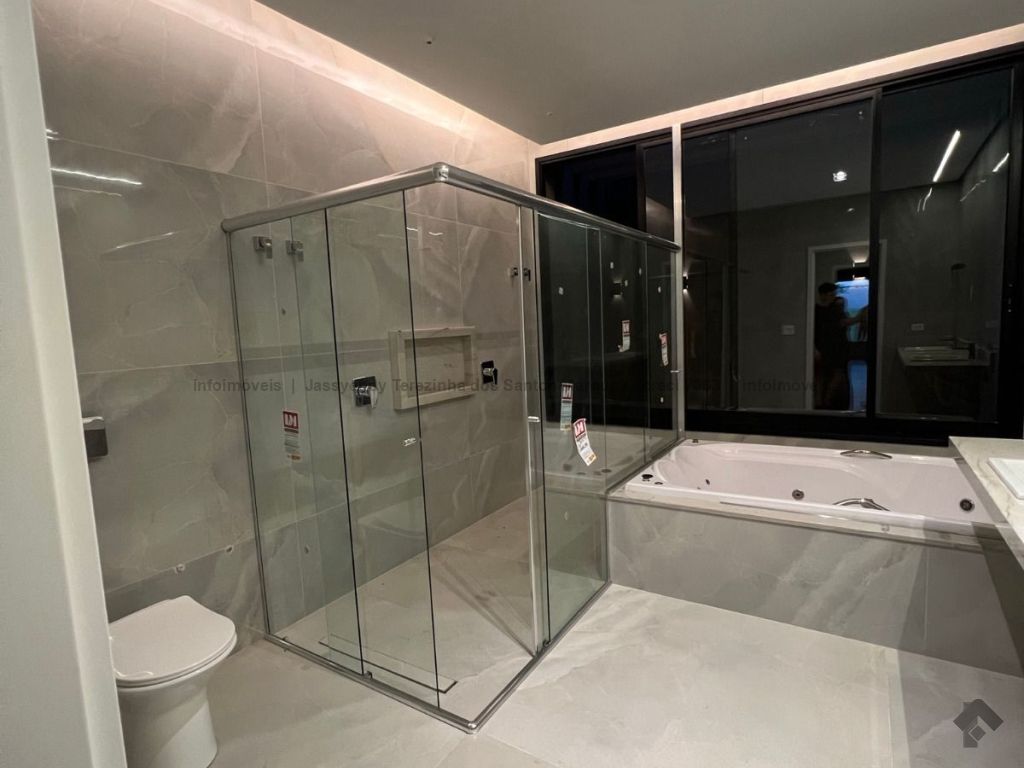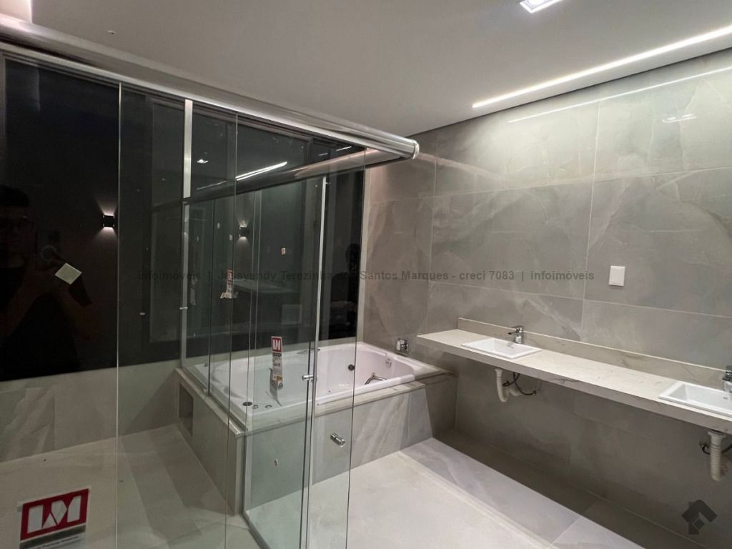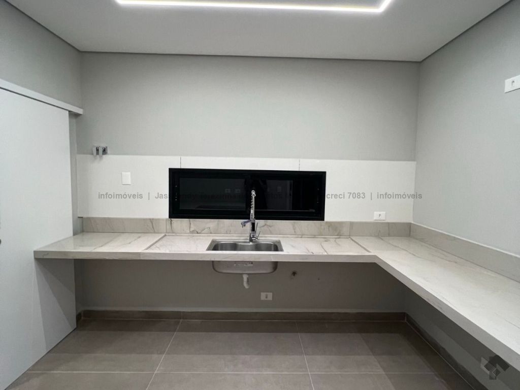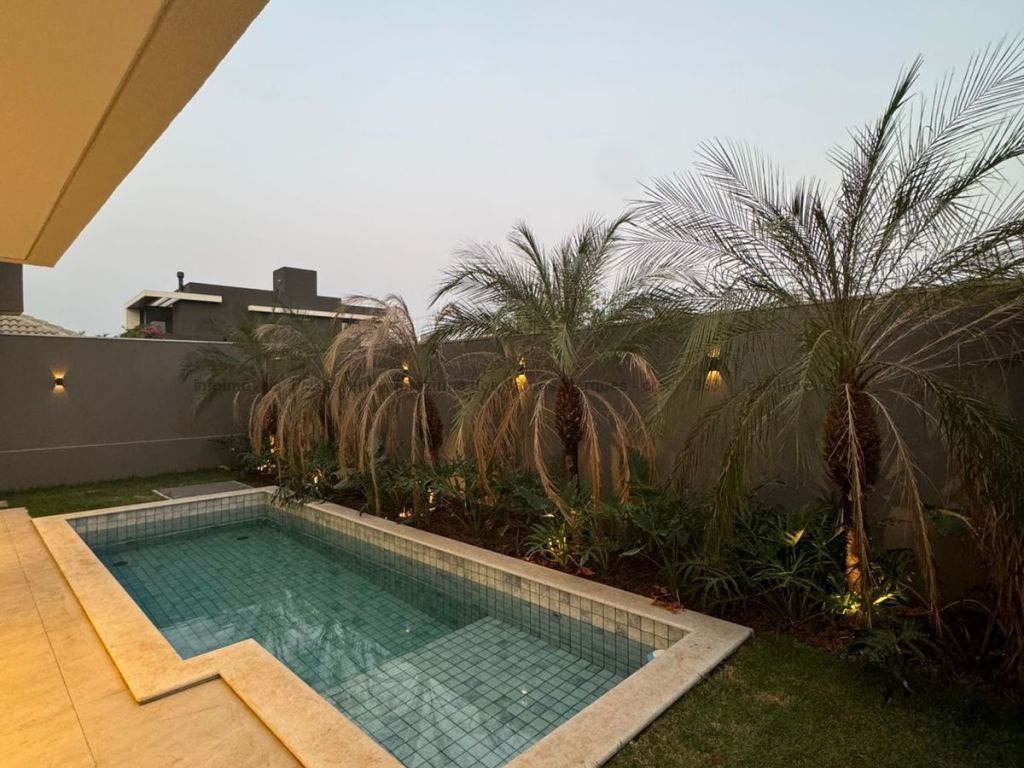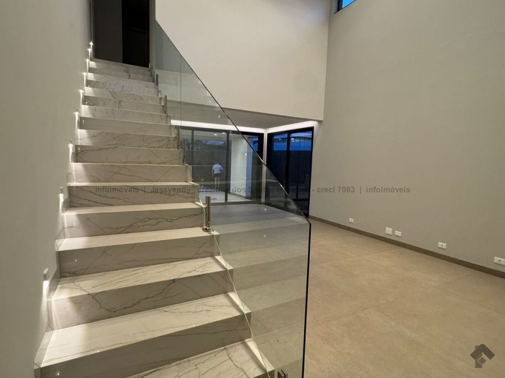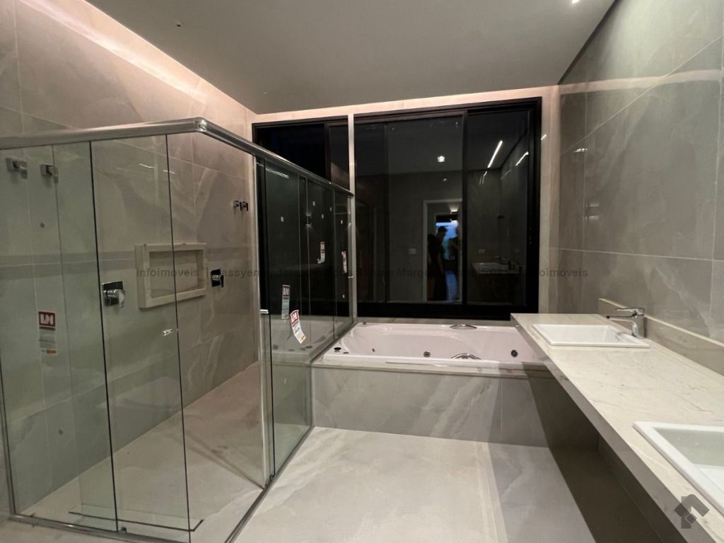 Sobrado assinado por Dálber Agüero e construído pela V-ENG Construtora, com 274 m² de área construída em terreno de 362 m². Térreo: living integrado, jantar, cozinha planejada, lavabo, quarto com suíte, área de serviço, depósito, espaço gourmet e banheiro. Superior: copa, roupeiro, duas suítes e uma suíte master com banheira, jardim privativo e sacada. Acabamentos em pedras nobres, esquadrias automatizadas, portas Pormade e metais Docol. Analisa permuta em terreno, veículo ou imóvel.
