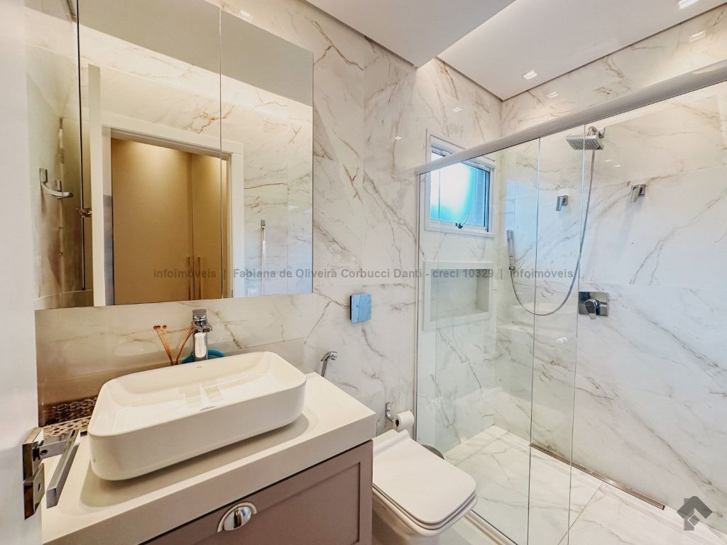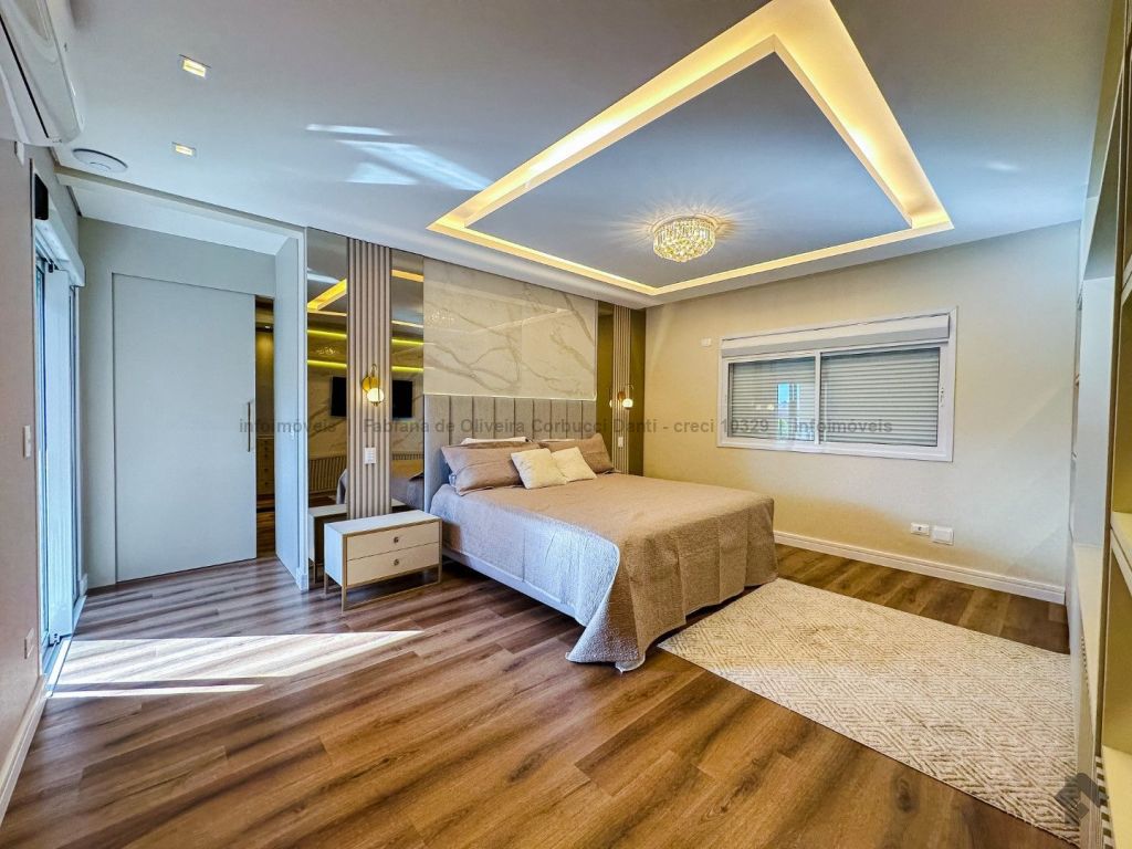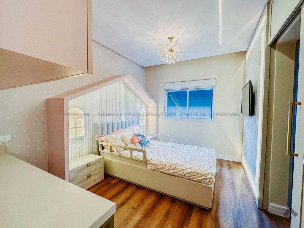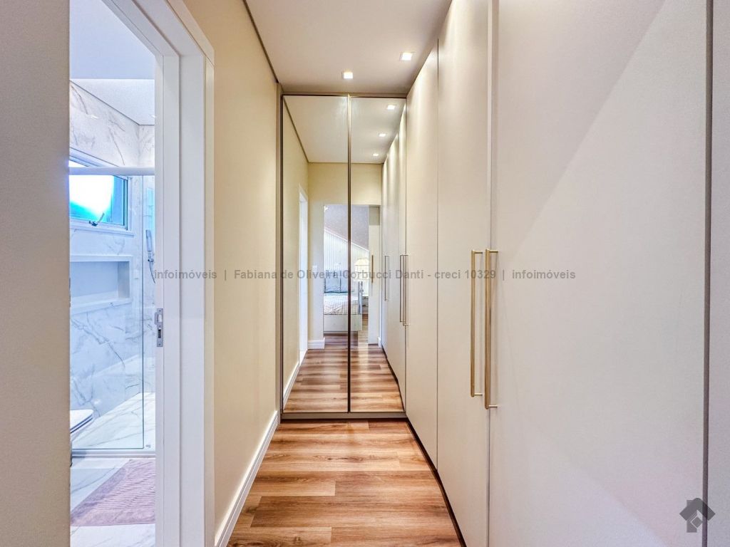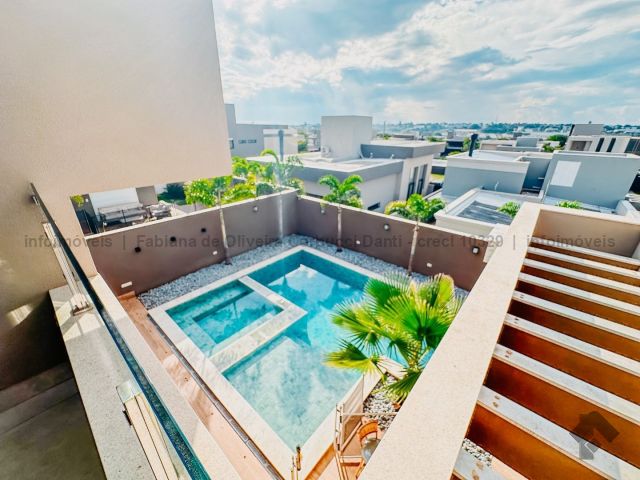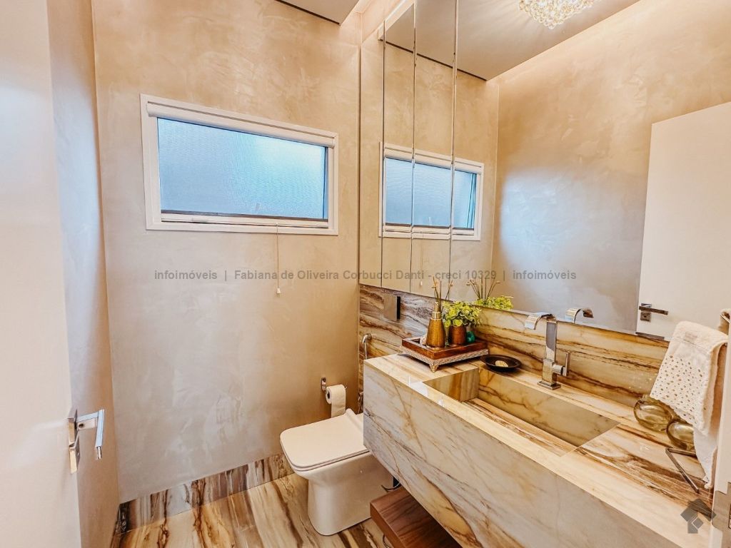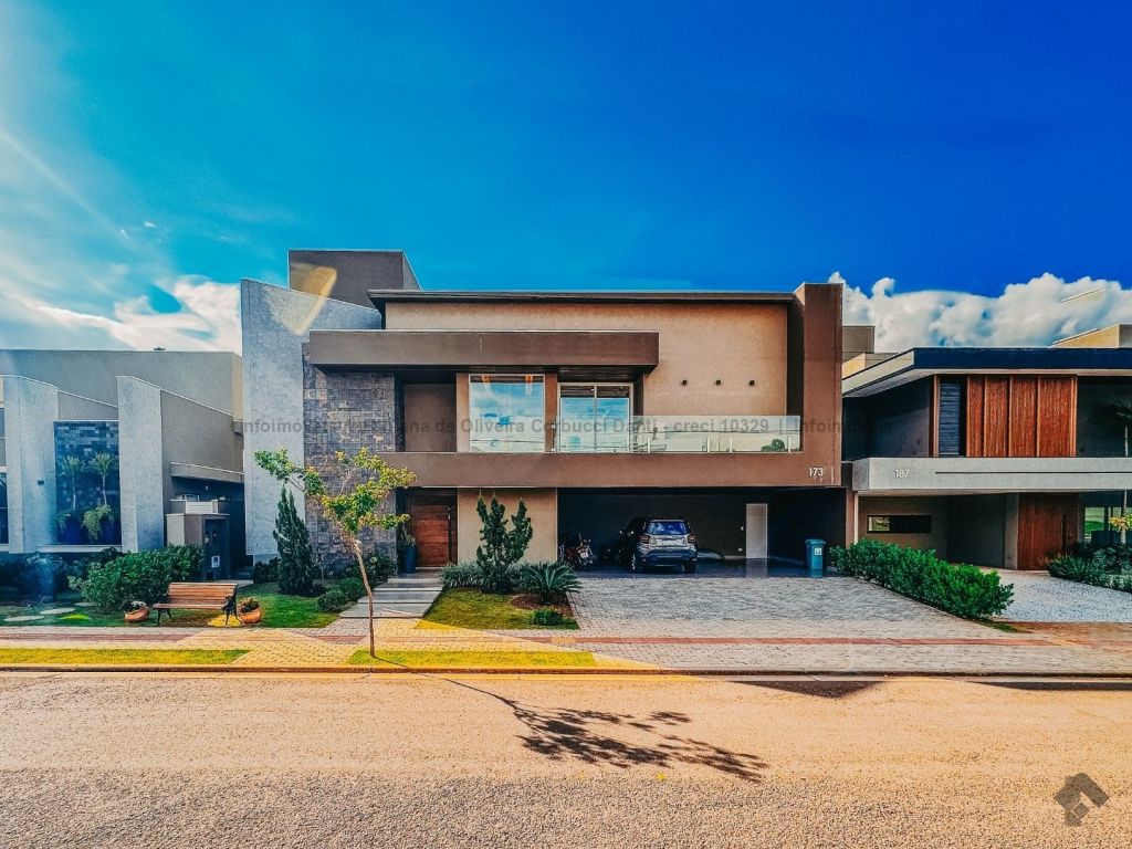 Construída para própria moradia, são 5 suítes, home, brinquedoteca, cozinha com armários embutidos, lavanderia com armários embutidos, despensa com armários embutidos, varanda gourmet completa com armários embutidos, depósitos, piscina com prainha e spa (aquecida, cascata, iluminação, ozônio), WC da piscina. Casa com muitos detalhes: todas as torneiras e chuveiros com água aquecida através de aquecimento solar, produção própria de energia fotovoltaica, sistema de irrigação automático, boiler para 600 litros, lareira e um terreno acima da média do condomínio.
