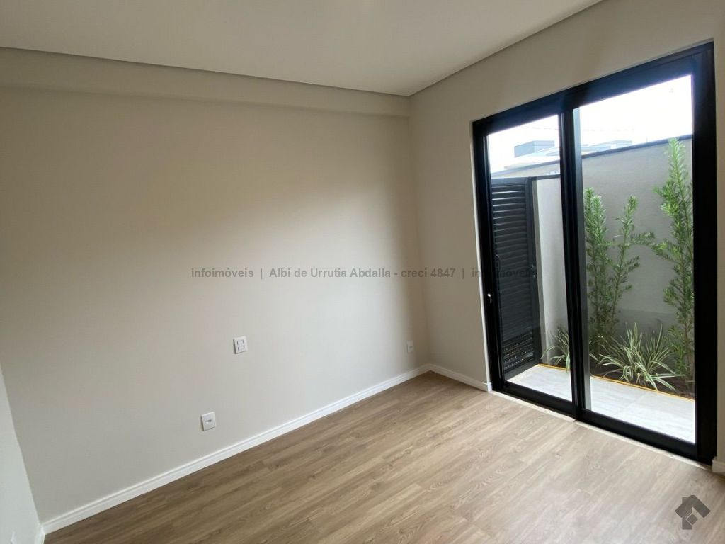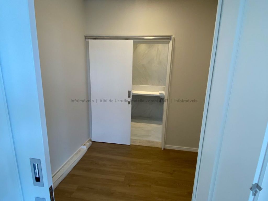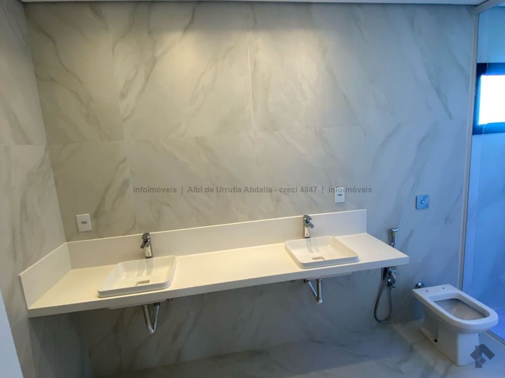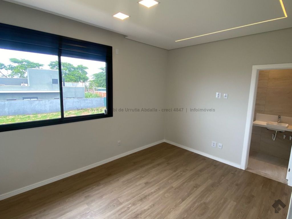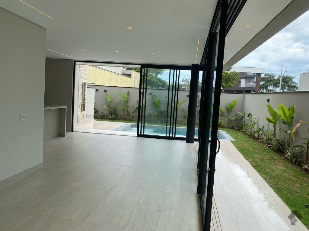 Sobrado de alto padrão com 5 suítes e 6 vagas de garagem. Arquitetura contemporânea. Pavimento térreo: sala de estar e jantar integradas, suíte (reversível para home office), cozinha integrada com a sala e espaço gourmet, despensa, depósito de gás, piscina aquecida com prainha e hidromassagem (sala de máquinas elevada com espaço para depósito), garagem para 6 veículos. Pavimento superior: suíte máster 1 (closet e banheiro com duchas e cubas duplas), suíte máster 2 (closet camarim e persiana), suíte 4 (persianas automatizadas).