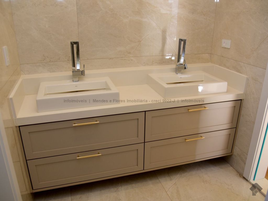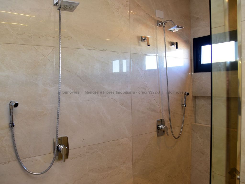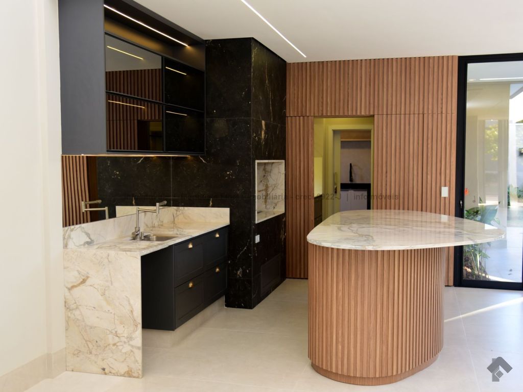 Excelente sobrado no condomínio Alphaville IV, com projeto desenvolvido por designer de interiores e arquiteta, com muitos detalhes em marcenaria em todo o imóvel. Possui 2 apartamentos, 1 suíte com closet, living, sala de jantar, cozinha planejada, área gourmet, lavanderia coberta com planejados, garagem para 2 vagas. Preparada para automação residencial, trocador de calor para piscina, aquecimento solar, energia fotovoltaica. Bancada da área gourmet em Michelangelo, bancada da cozinha em nanoglass, quartos em quartzo branco. Piscina com 21 m².