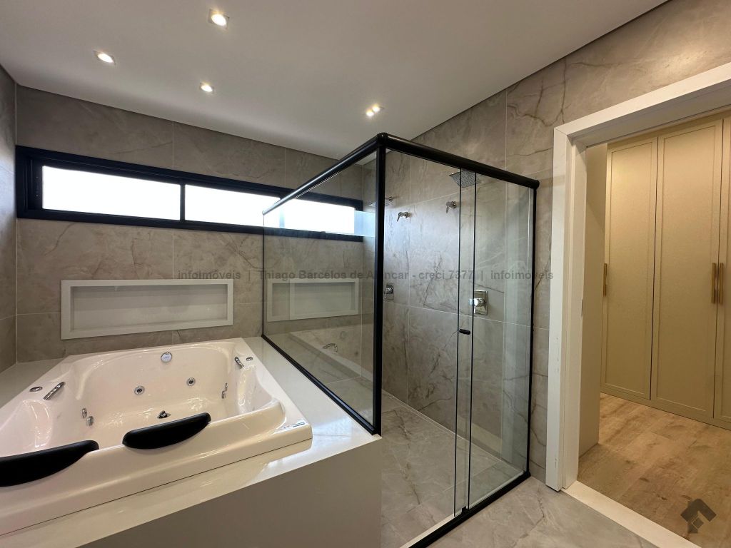 Casa espetacular no Alphaville IV, com preparo para elevador e acabamento de alto padrão. No piso térreo, conta com uma suíte versátil (ideal para escritório), lavabo, sala com pé-direito duplo, cozinha, lavanderia, depósito e um espaço gourmet integrado à piscina com aquecimento solar. No segundo pavimento, são 3 suítes amplas e uma suíte master com closet e banheira. A casa ainda dispõe de energia solar, móveis planejados em diversos ambientes e preparação para instalação de elevador, garantindo praticidade e sofisticação. Um imóvel perfeito para quem busca conforto, modernidade e exclusividade.