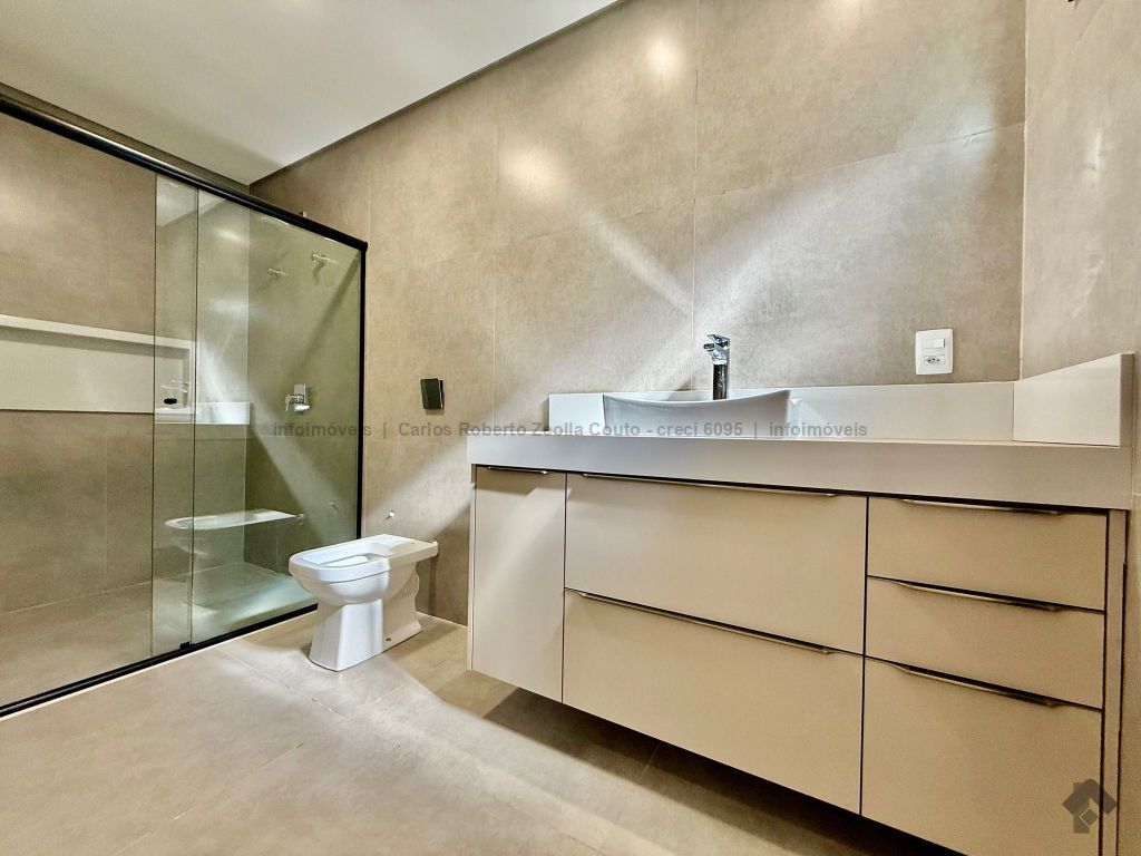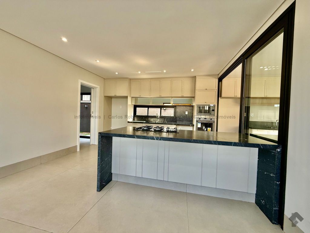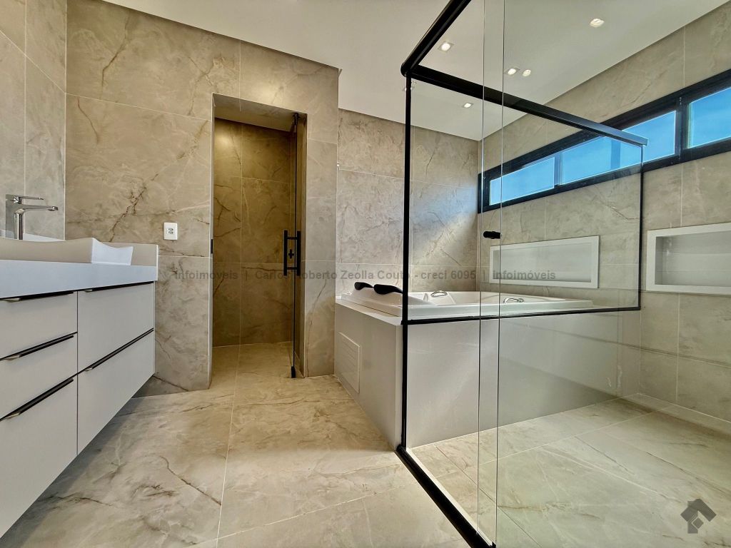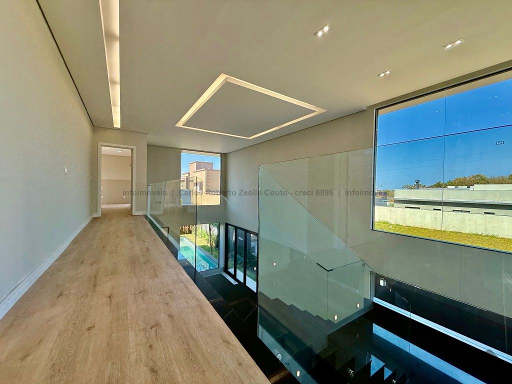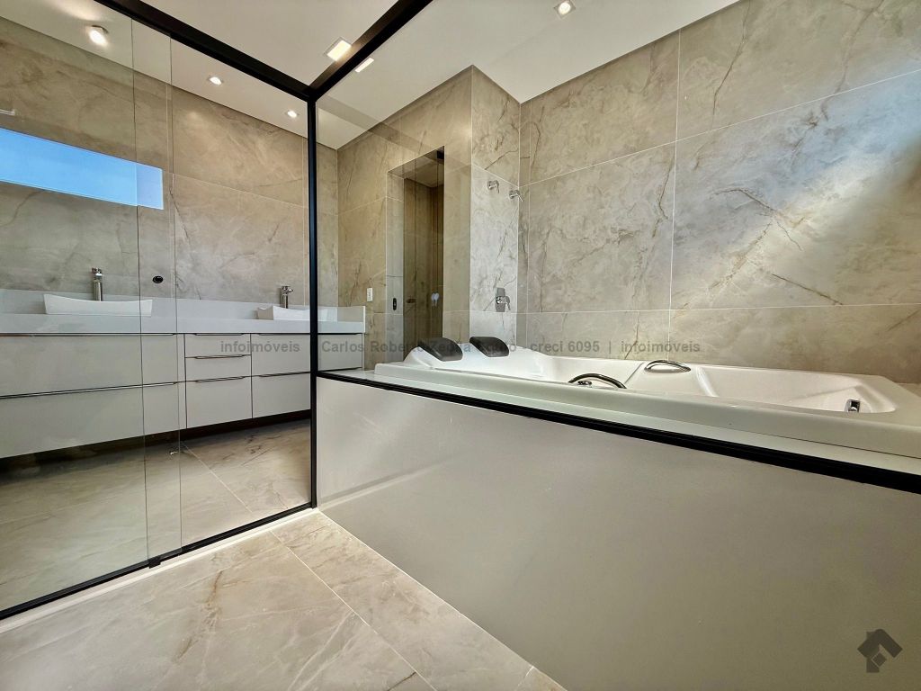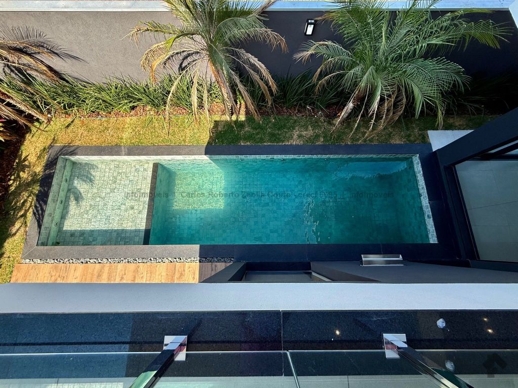1 suíte master com closet e banheira, 3 suítes no 2º andar, 1 suíte no térreo, lavabo, sala com pé direito duplo, espaço gourmet, cozinha, lavanderia, depósito, banheiro da piscina, piscina com aquecedor solar, energia solar, elevador (preparo para instalação). A casa possui móveis planejados.