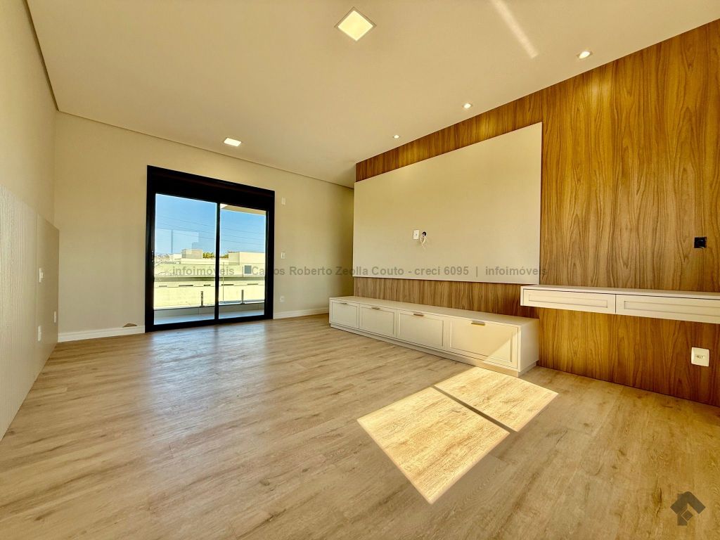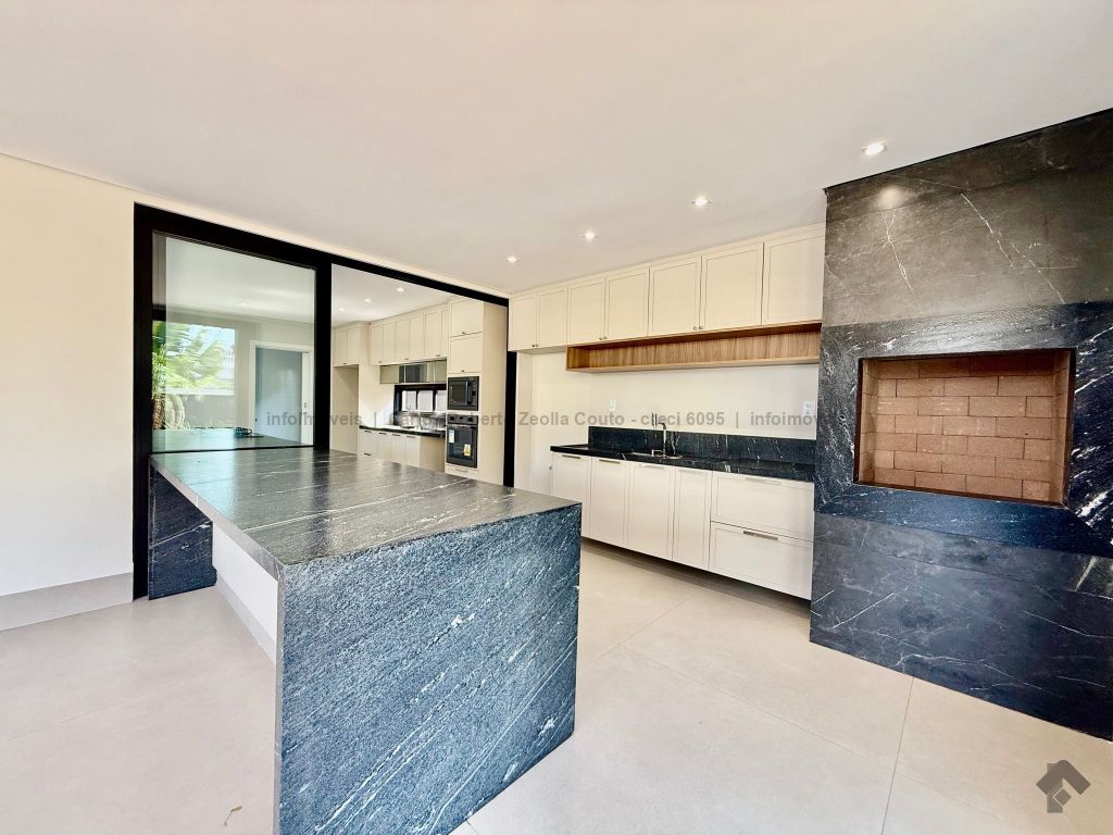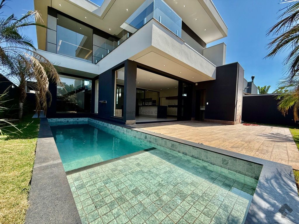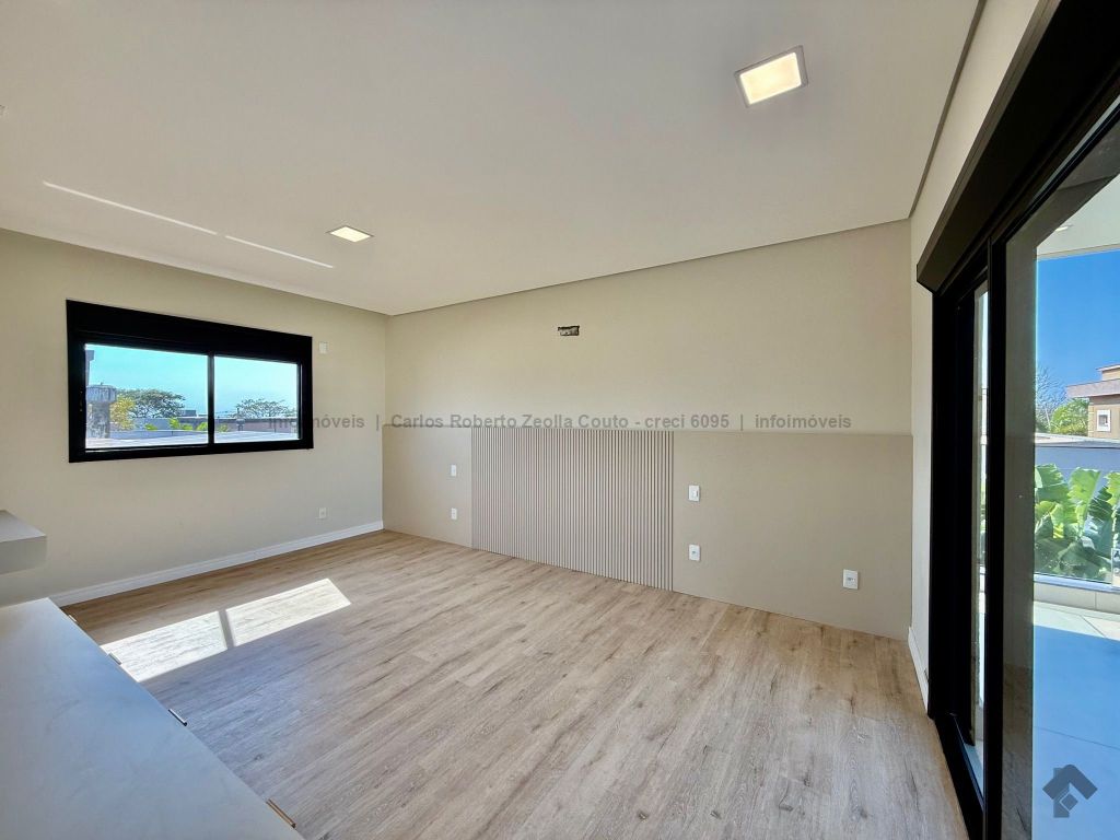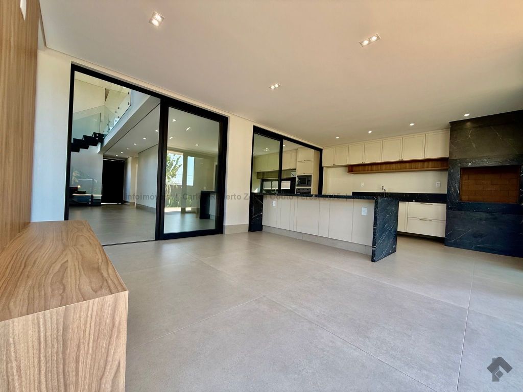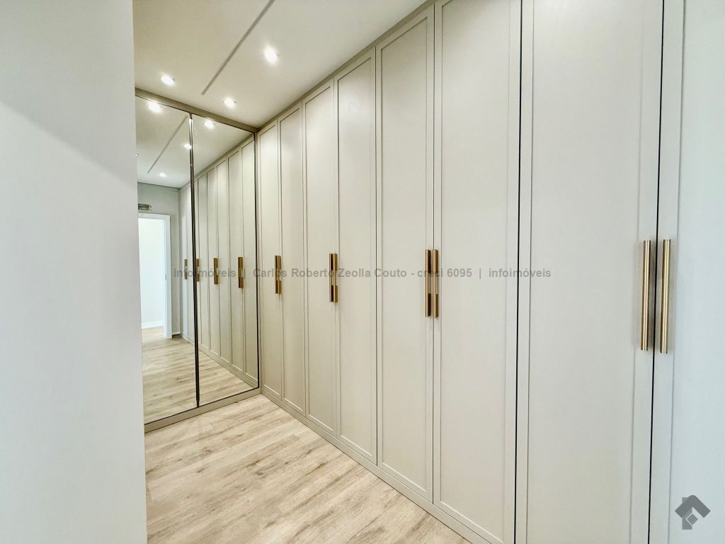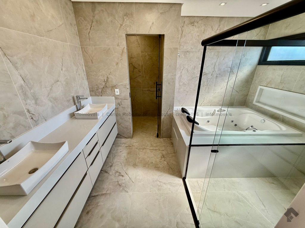 1 suíte master com closet e banheira, 3 suítes no 2º andar, 1 suíte no térreo, lavabo, sala com pé direito duplo, espaço gourmet, cozinha, lavanderia, depósito, banheiro da piscina, piscina com aquecedor solar, energia solar, elevador (preparo para instalação). A casa possui móveis planejados.